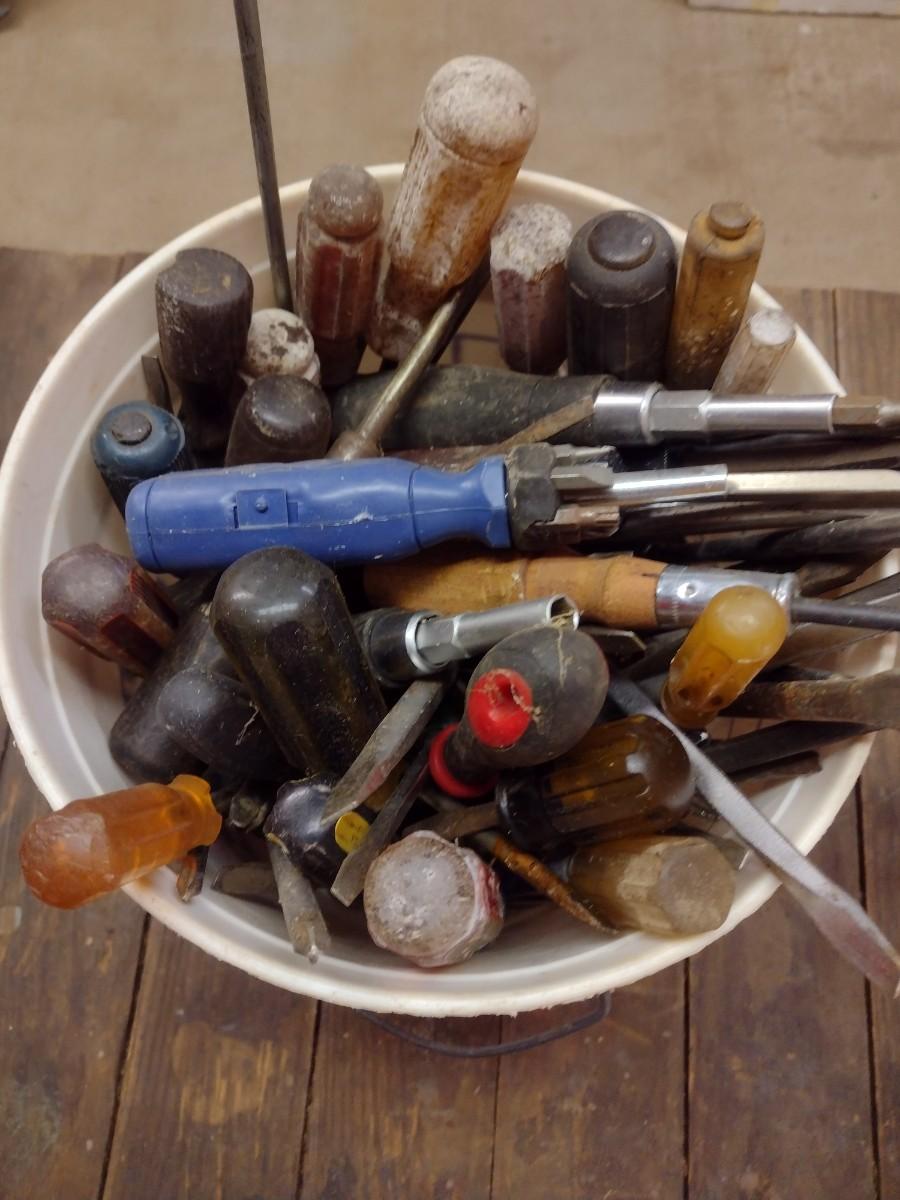 Large Collection of Screwdrivers Various Head Shapes and Lengths