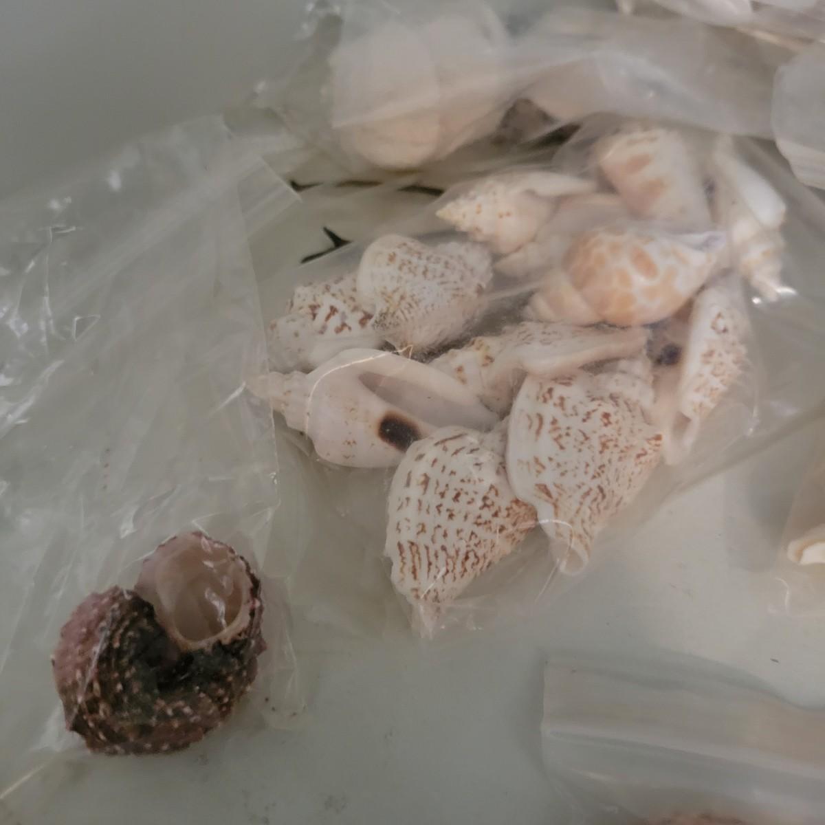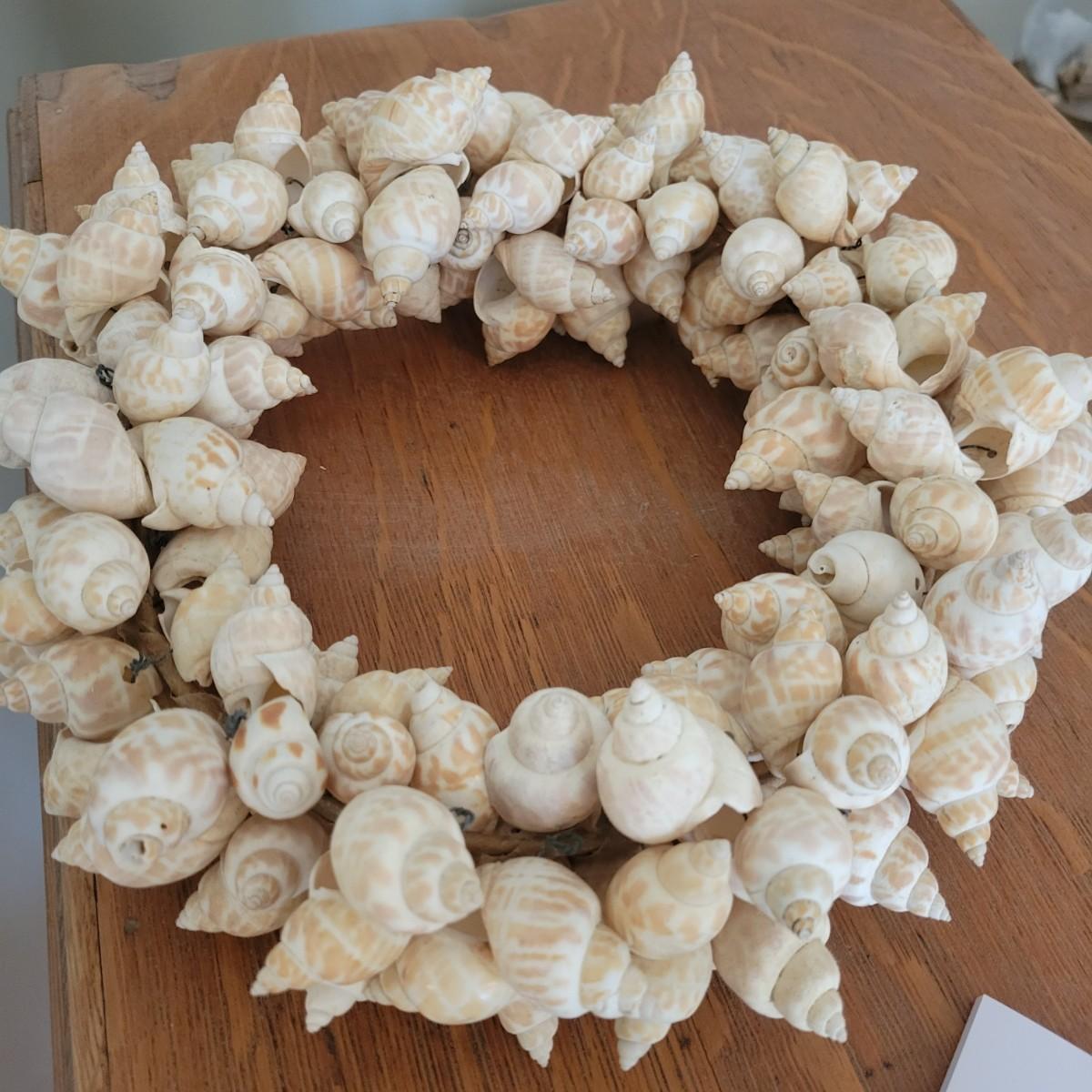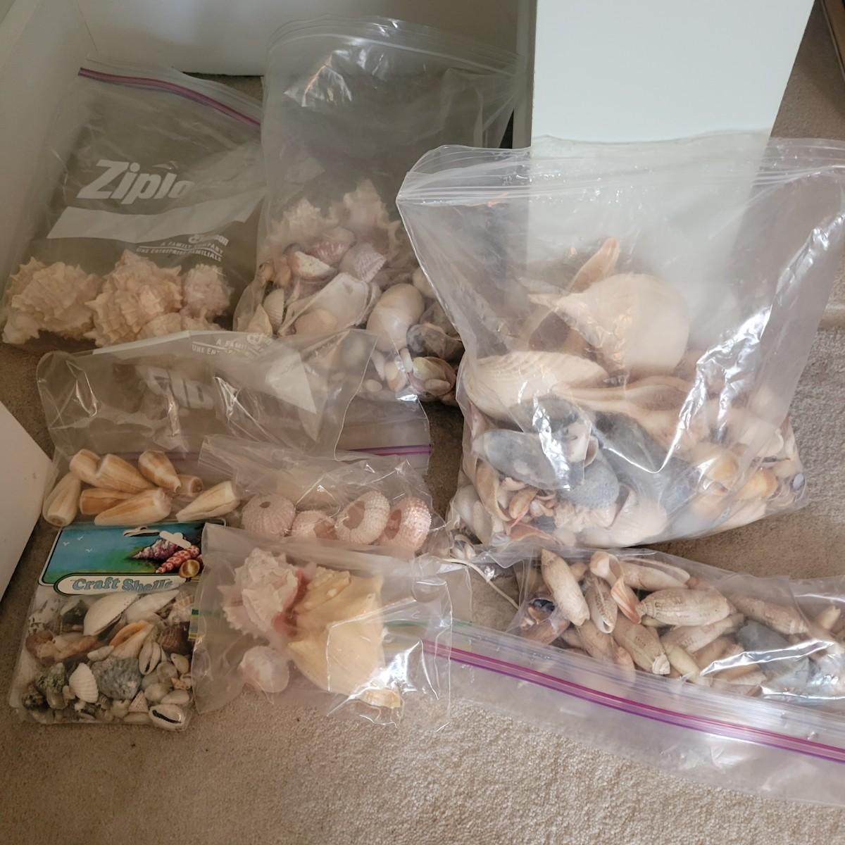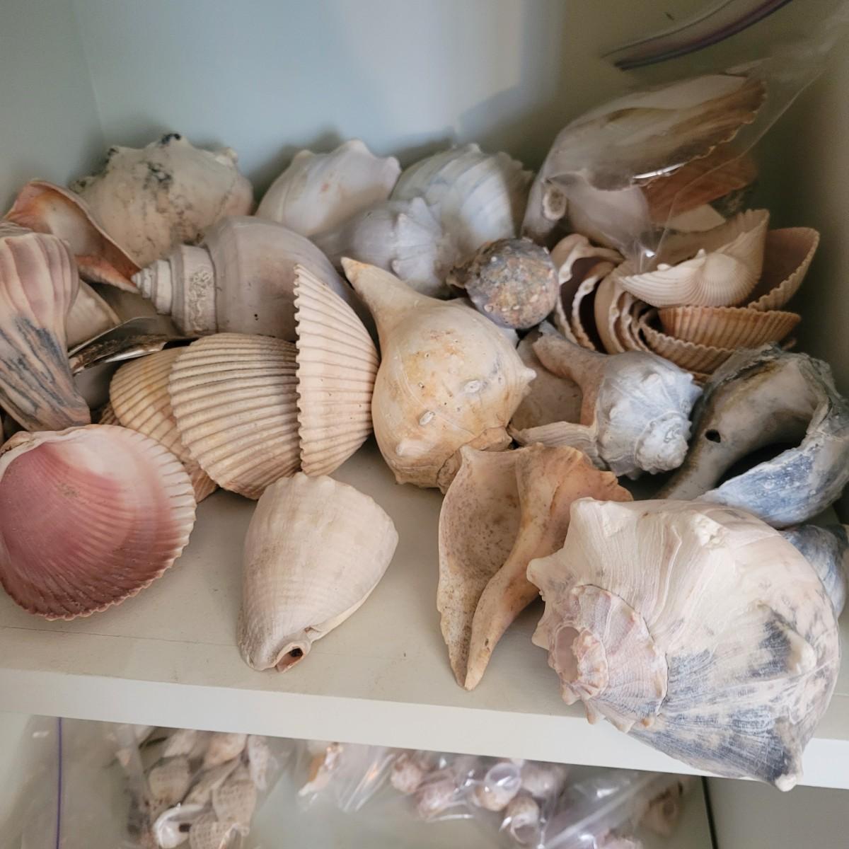A large collection of sea shells and other sea creatures in good condition. Shells range from conchs to bi valves and almost everything in between. Also includes sand dollars, sea biscuits, sea horses, star fish and so much more. Lot also includes a wreath made of seashells that measures approximately 12" x 4" Local pickup only