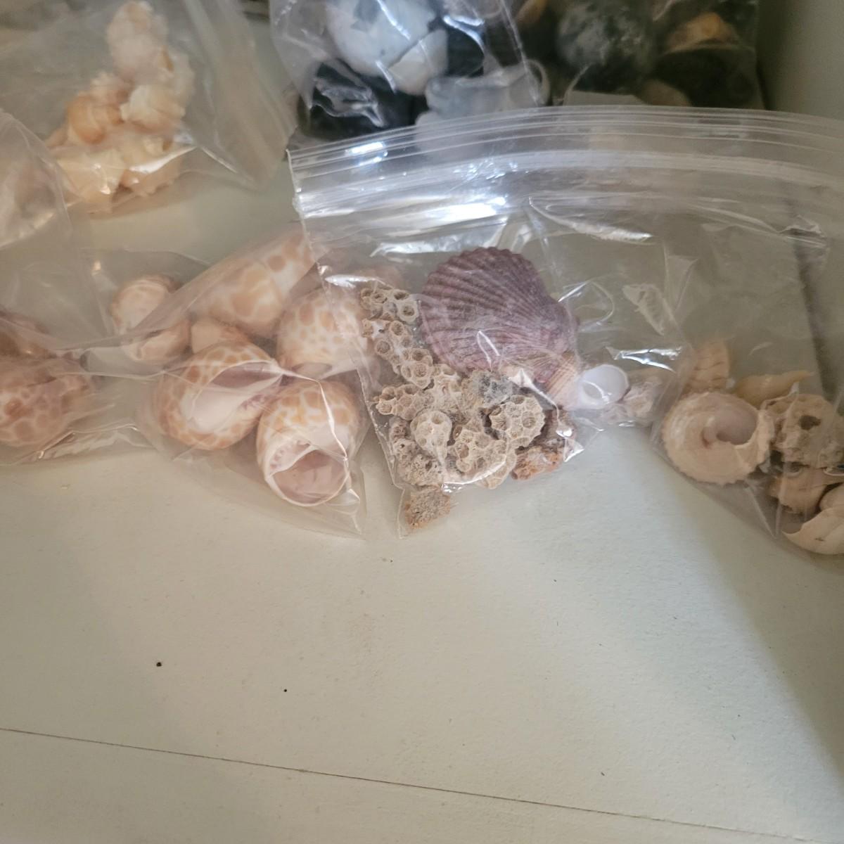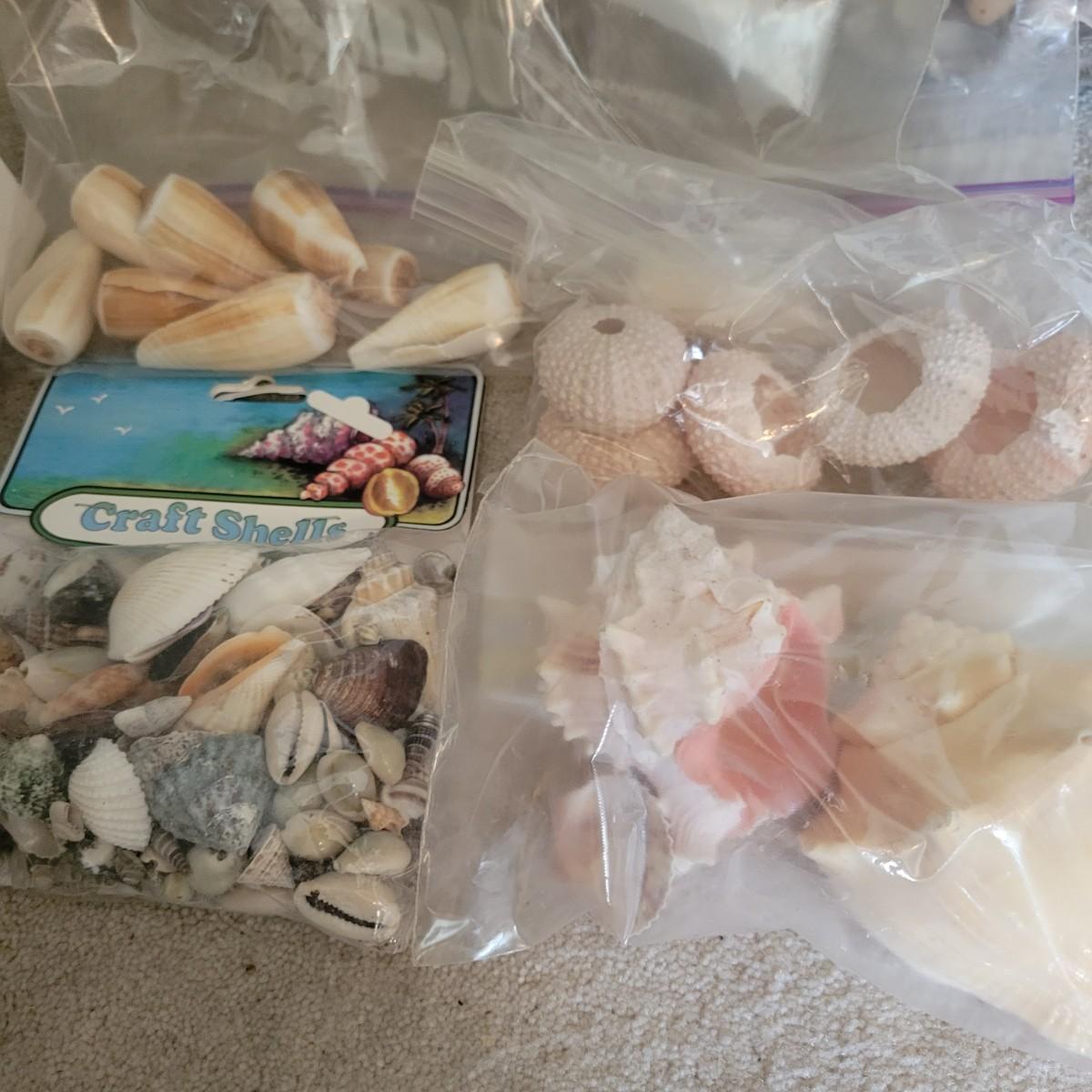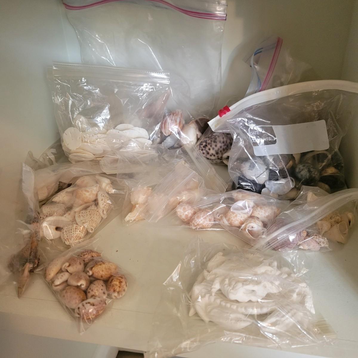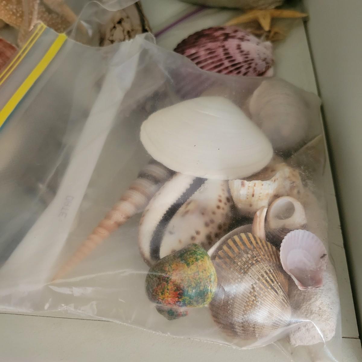 A large collection of sea shells and other sea creatures in good condition. Shells range from conchs to bi valves and almost everything in between. Also includes sand dollars, sea biscuits, sea horses, star fish and so much more. Lot also includes a wreath made of seashells that measures approximately 12" x 4" Local pickup only
