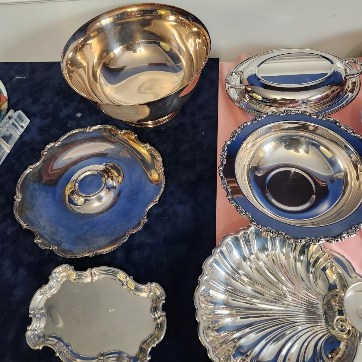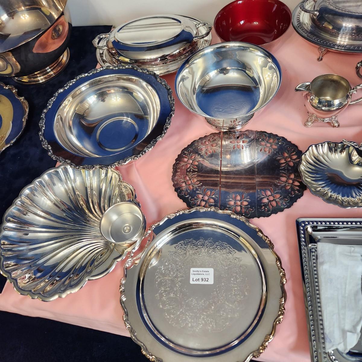 Large Collection of Silver Plate Bowls Trays Creamer Sugar Bowl