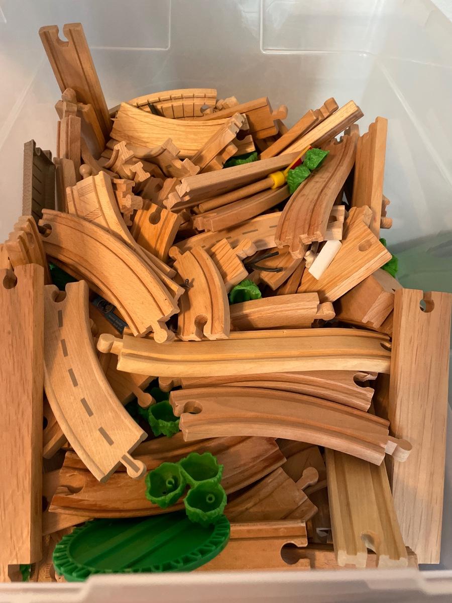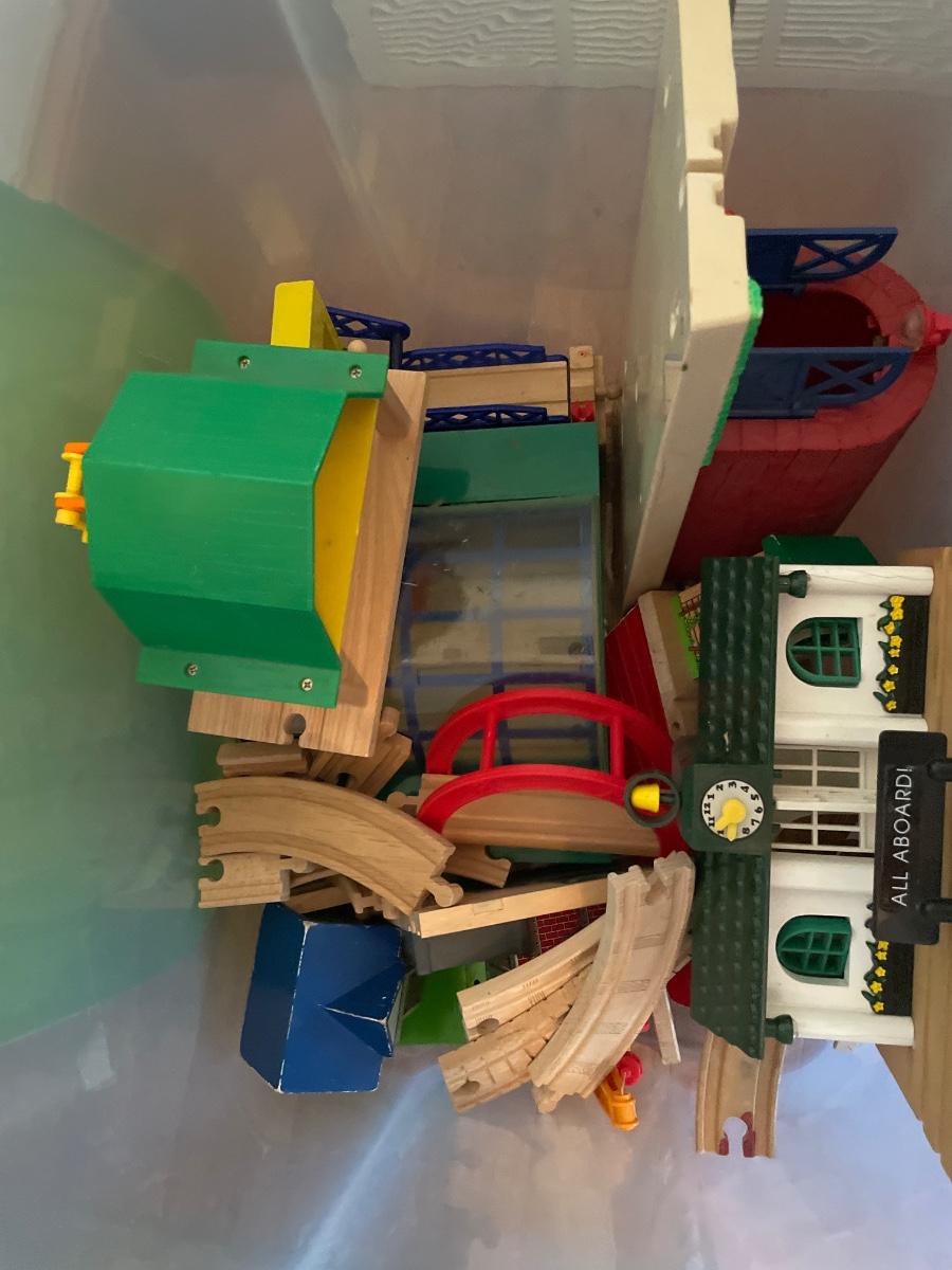 2 totes full of Thomas the Train cars, track and station