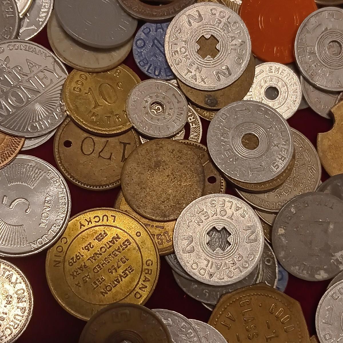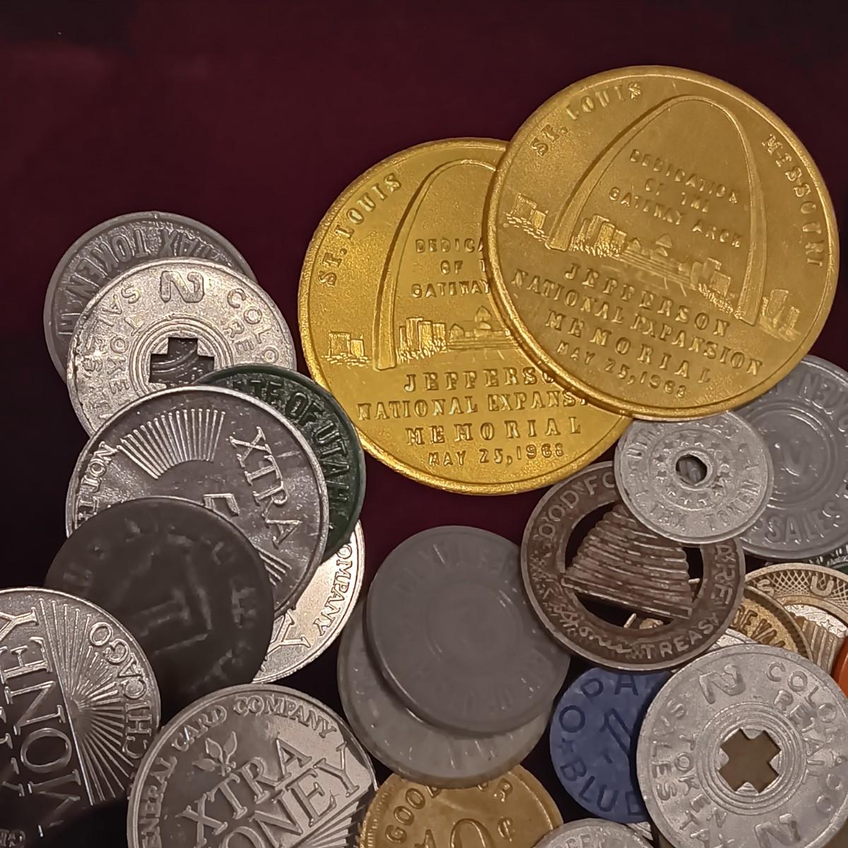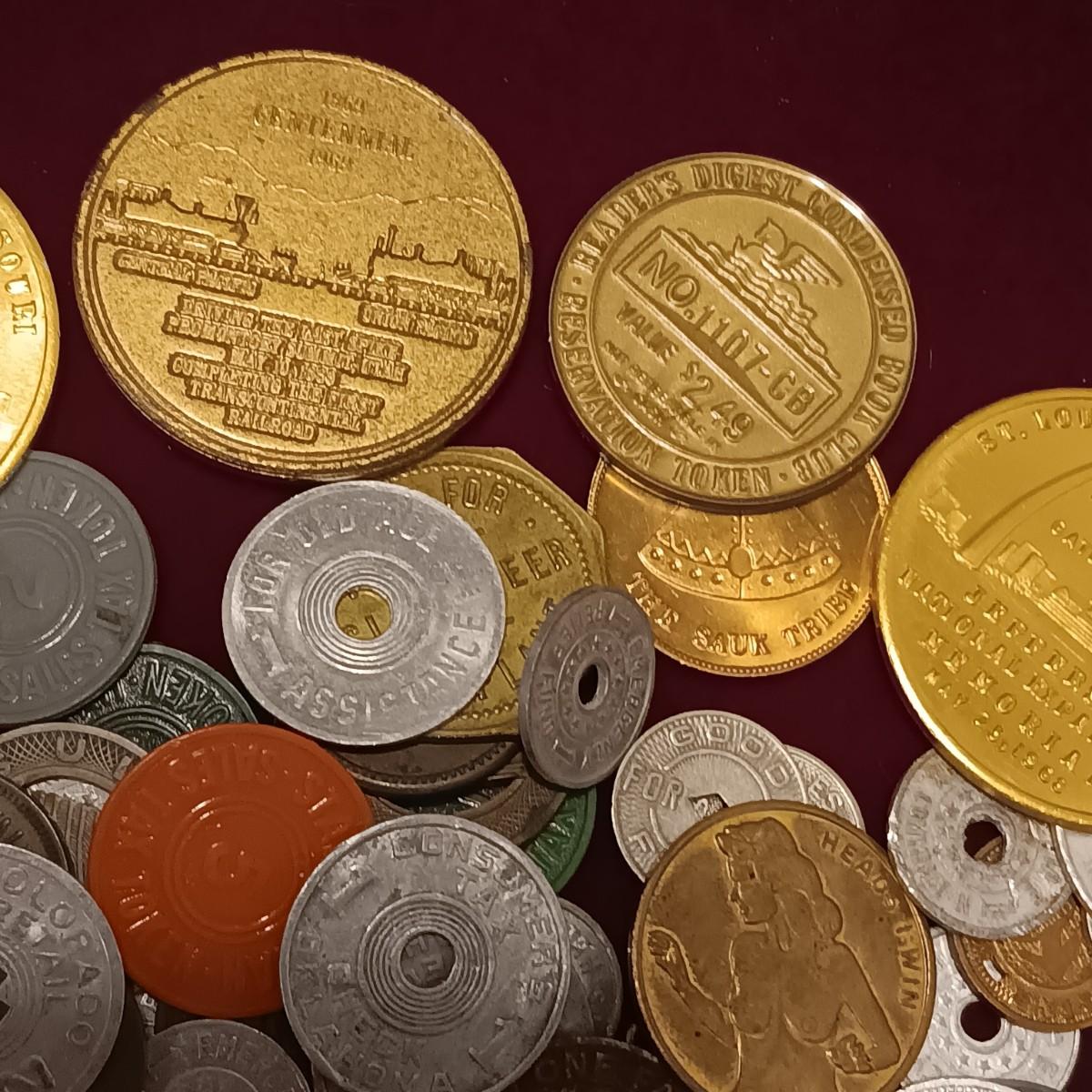 LARGE COLLECTION OF VINTAGE AND ANTIQUE TOKENS