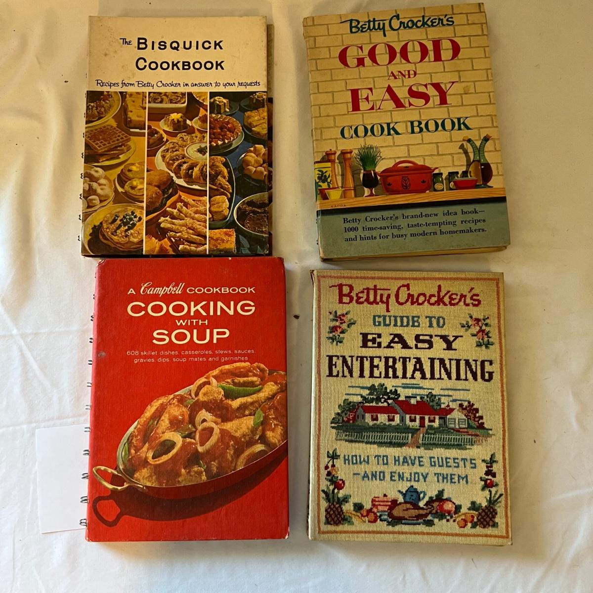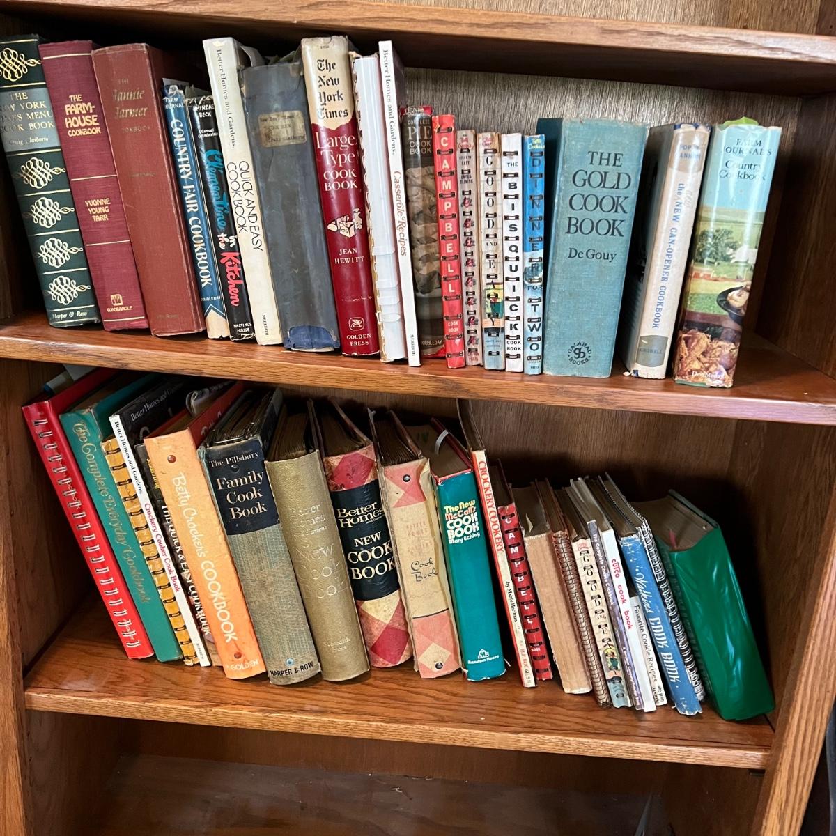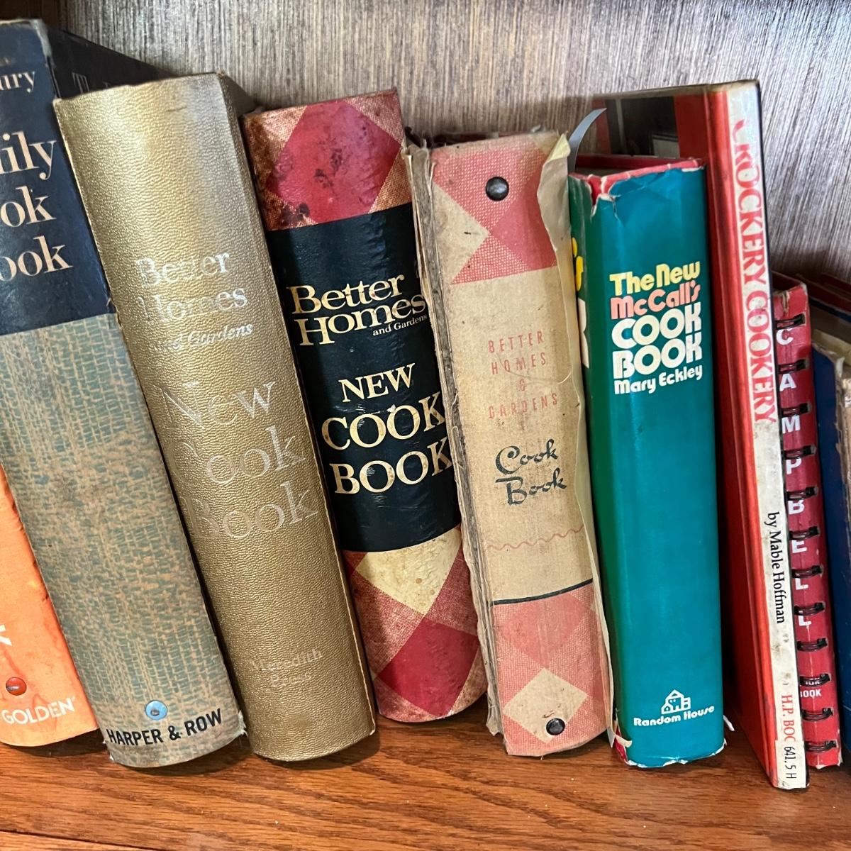 More than 40 vintage cookbooks. A large selection of traditional cooking books plus some fun finds and down-right gems from the mid-century era. See images for details, wear due to age and use is showing on some books.