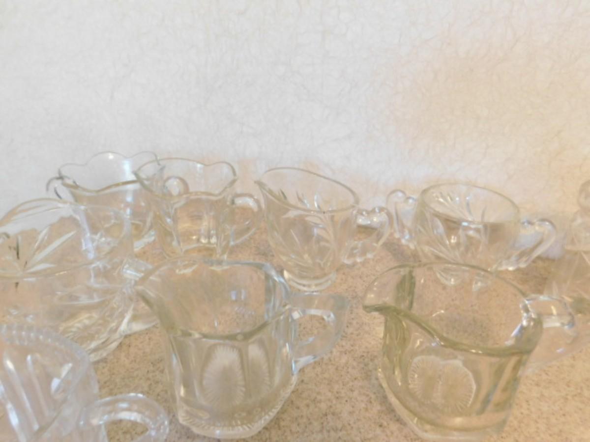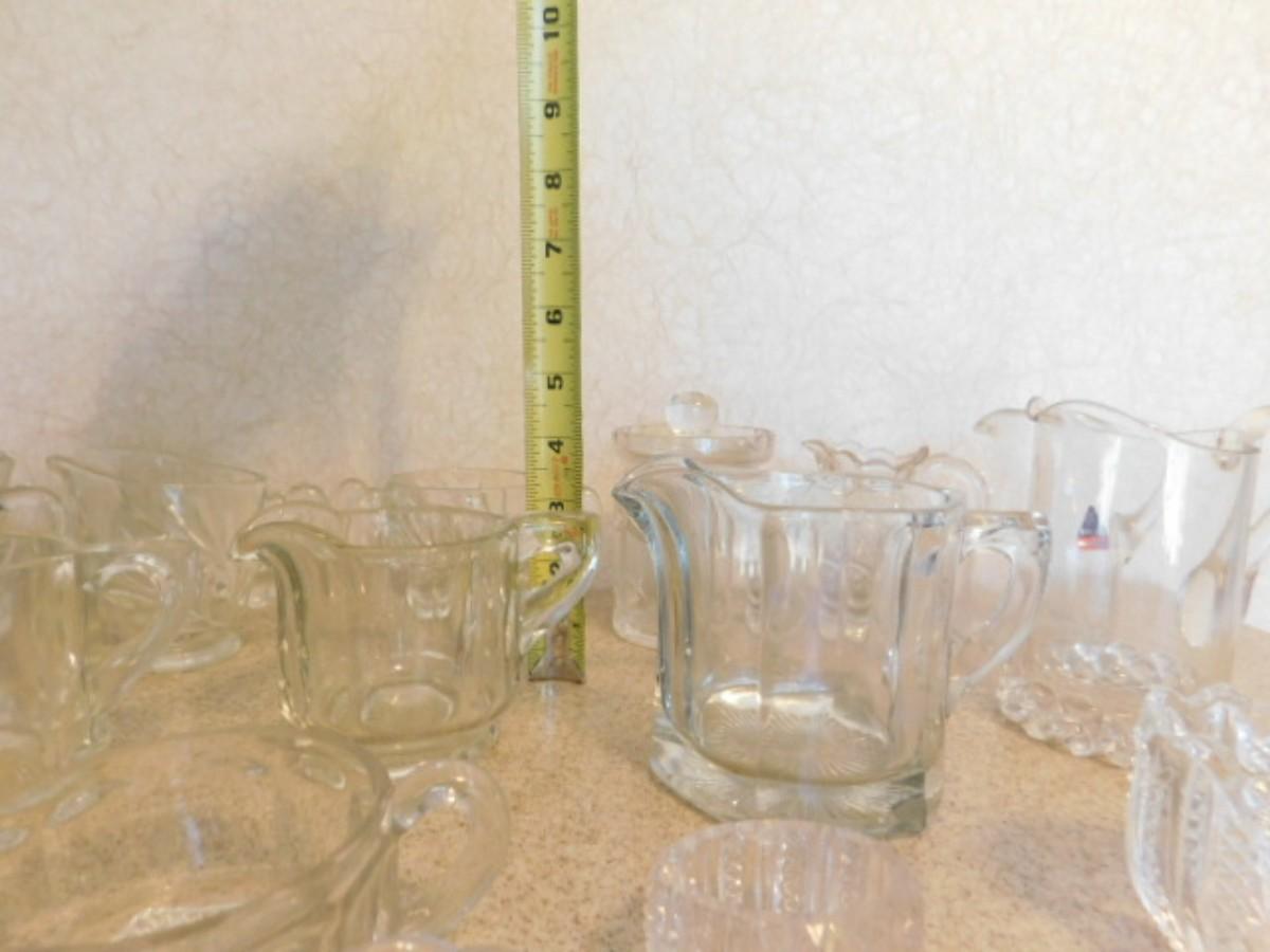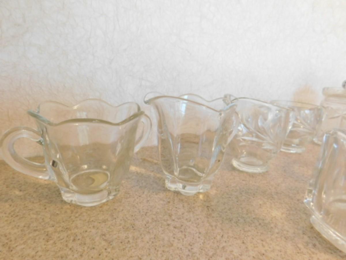 Large Collection of Vintage Glassware Table Service Pieces includes Creamers, Salt Servers, and More