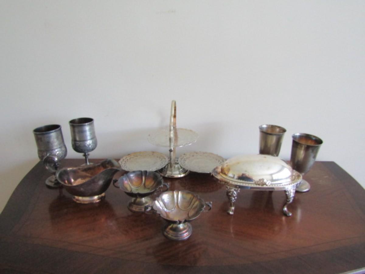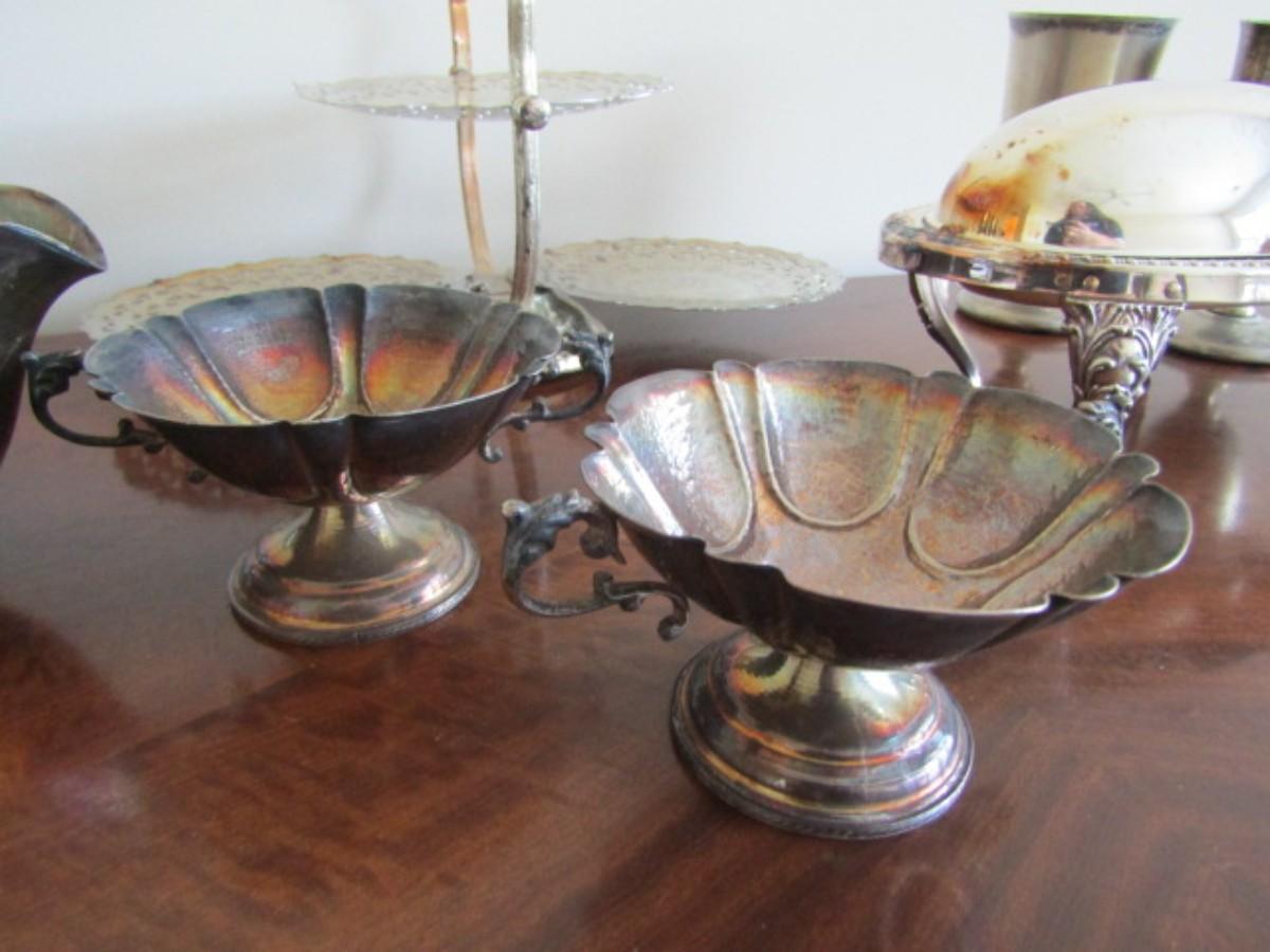 Large Collection of Vintage Silver-Plate Serving Pieces (See all Pictures) (#12)
