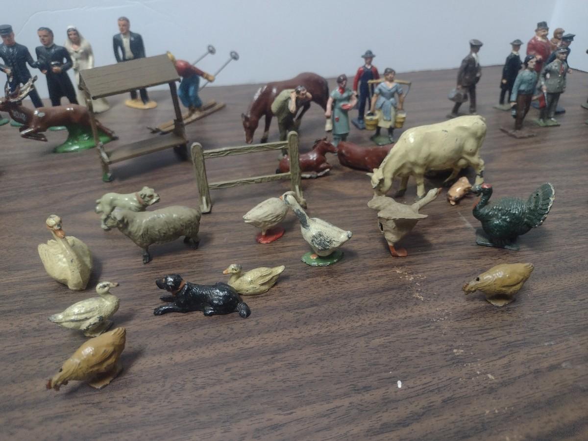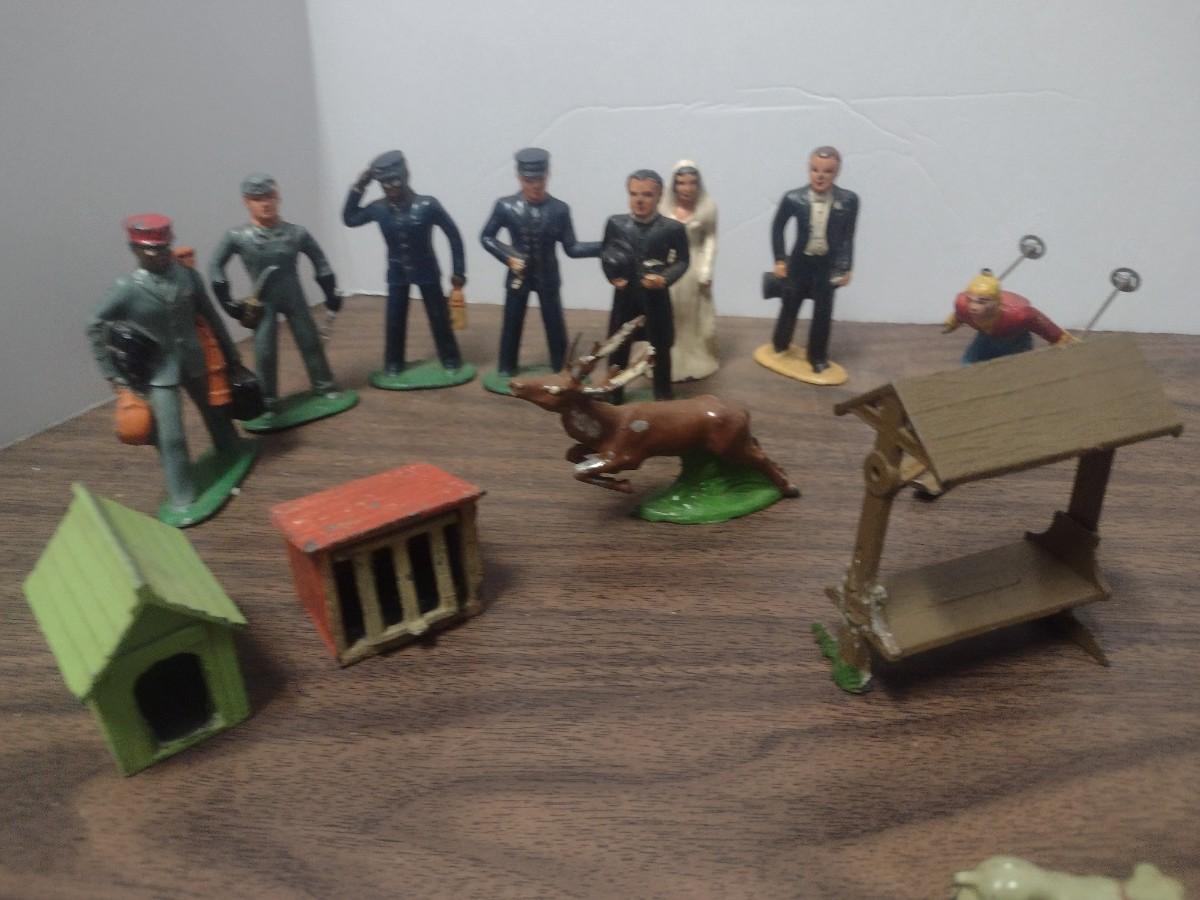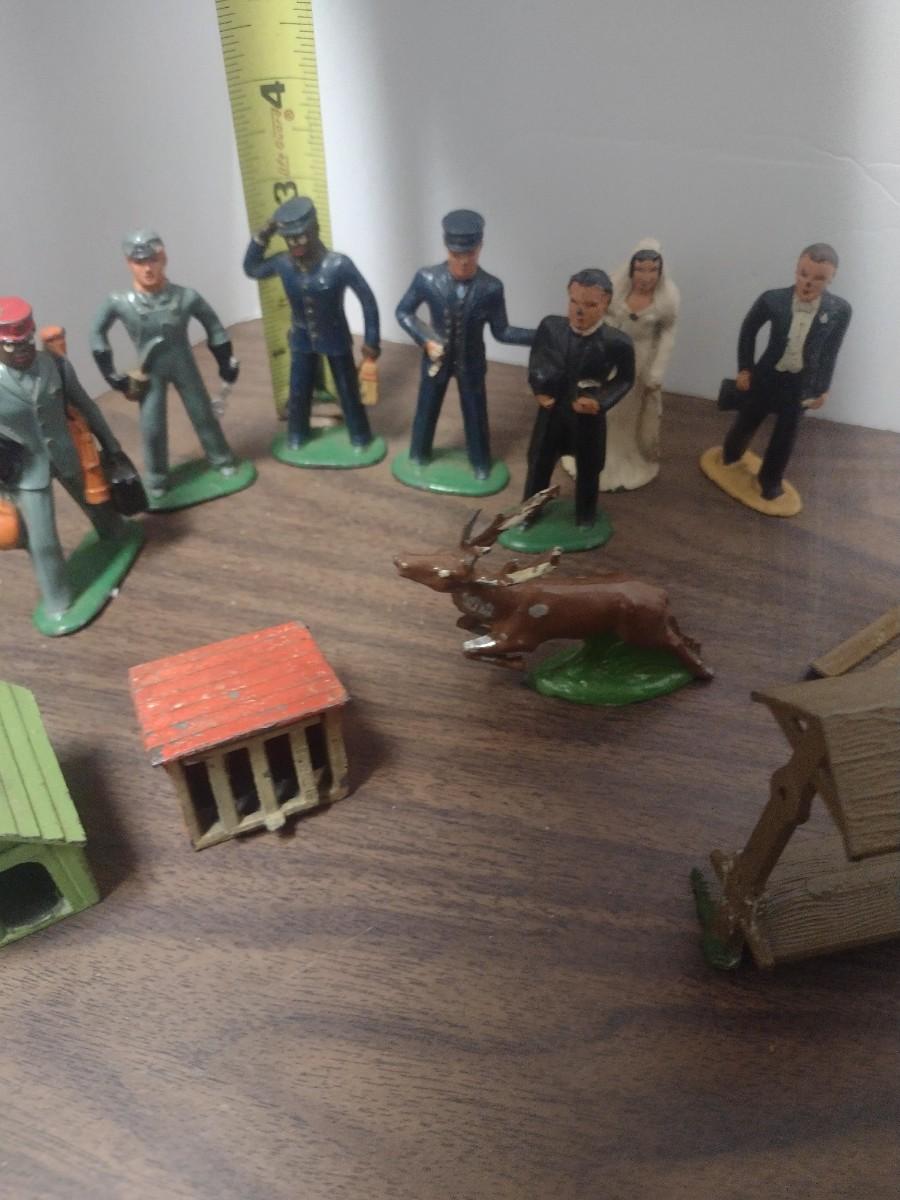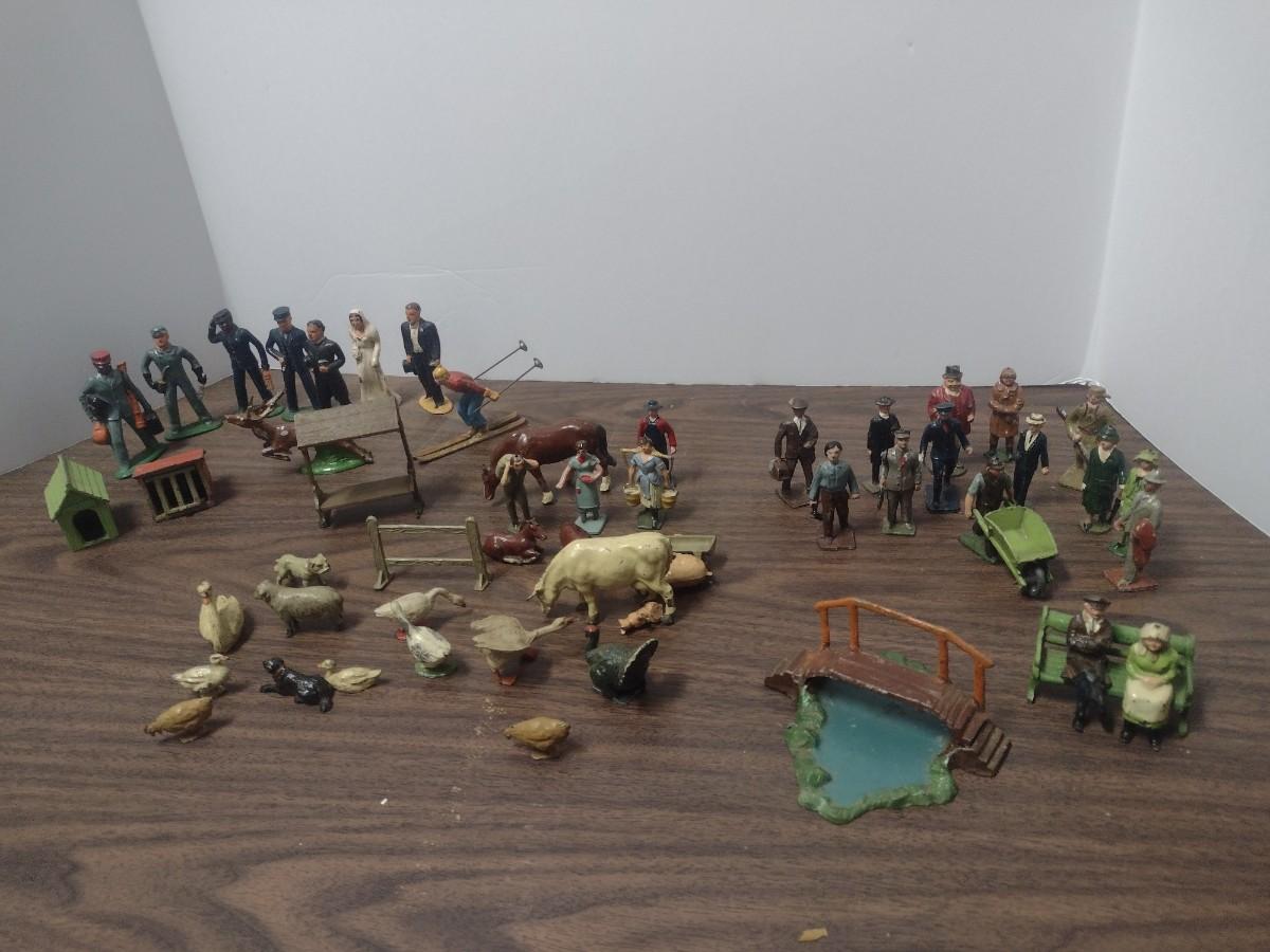 Large Collection of Vintage Small Scale Model Lead Figures, Animals, and Structures Made in USA, England and France