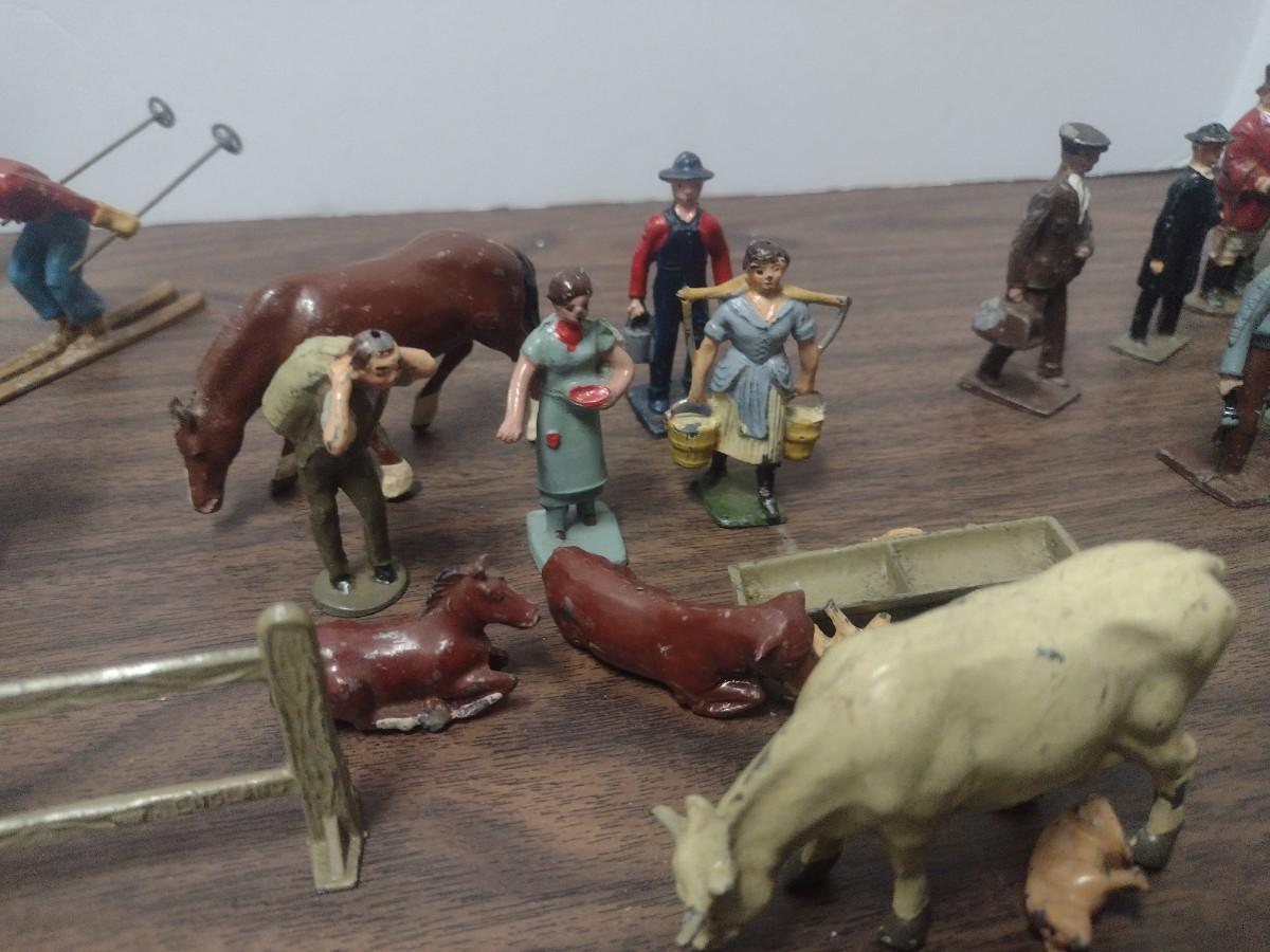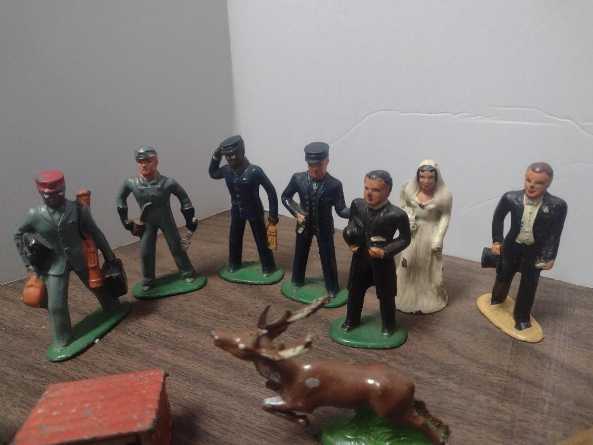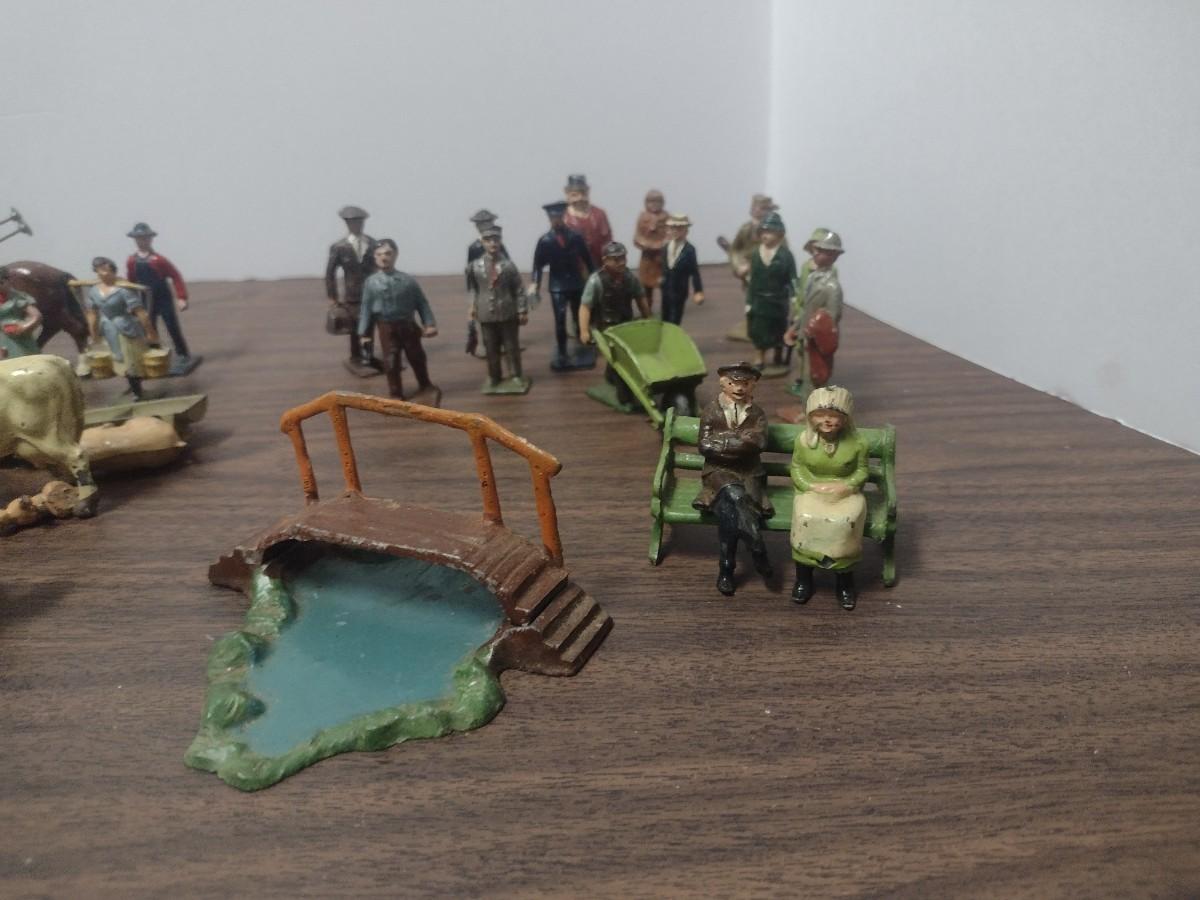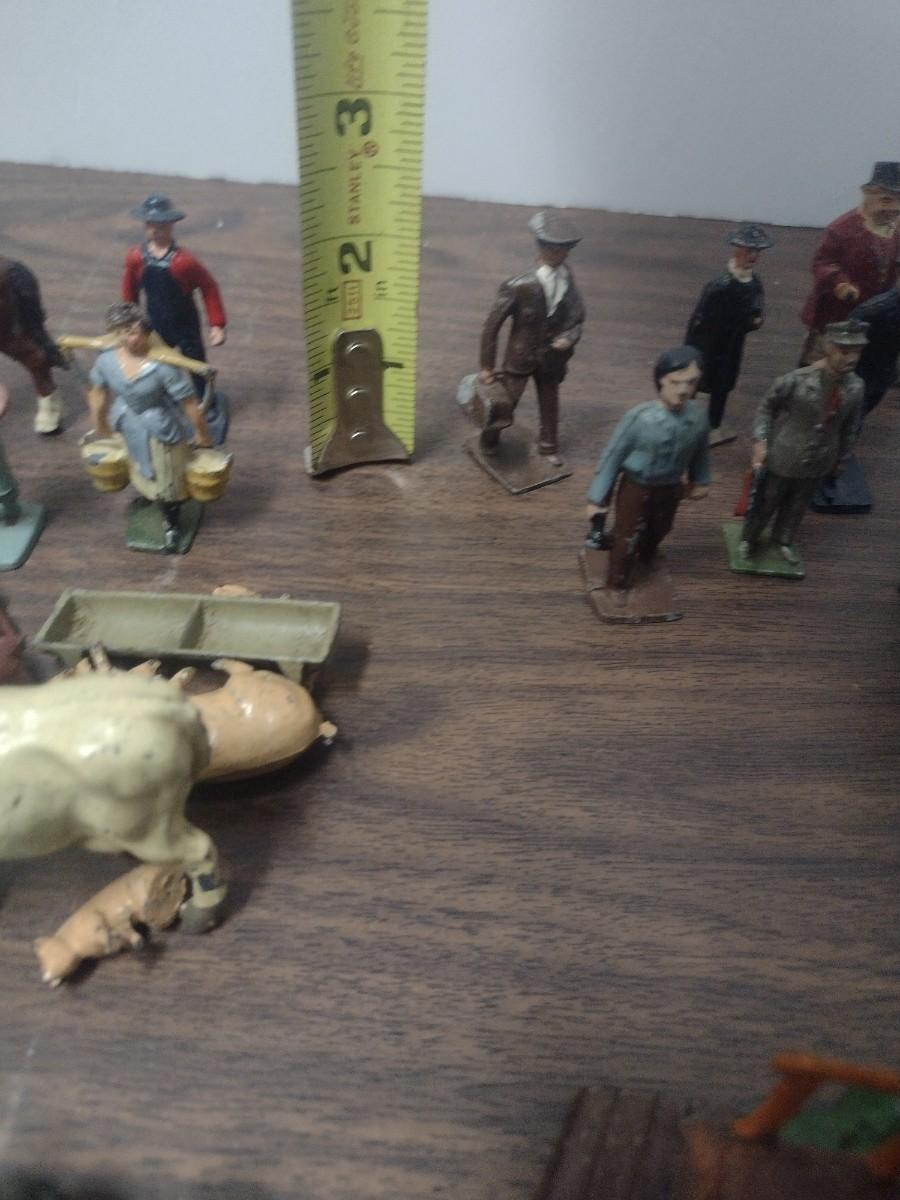 Large Collection of Vintage Small Scale Model Lead Figures, Animals, and Structures Made in USA, England and France