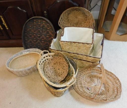 Large Collection of Weave Baskets Various Sizes and Shapes