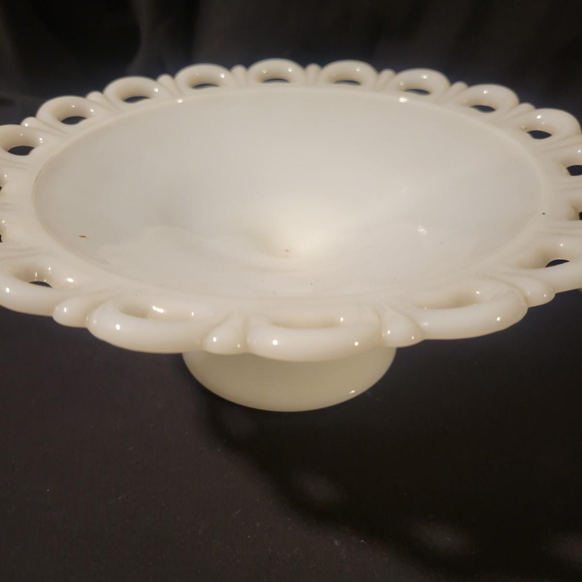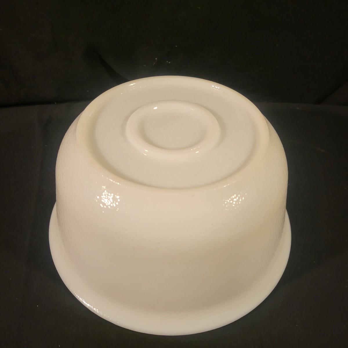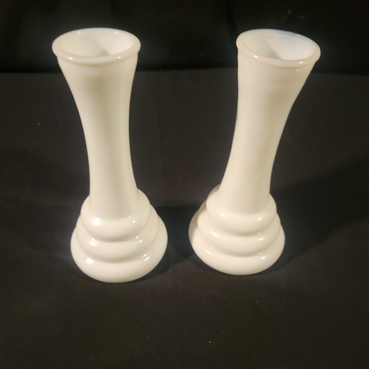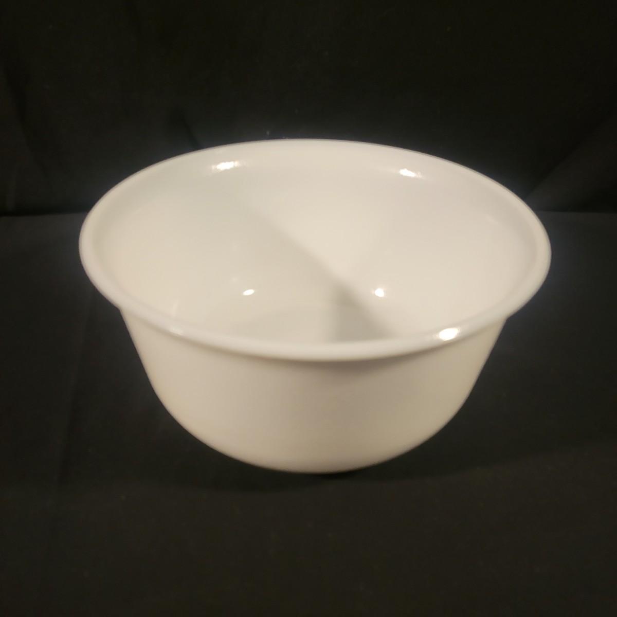 A collection of white glass pieces ranging from bowls, vases, serving dishes and more. 11 pieces in total in good to excellent condition. No pieces have any cracks or chips, but one plate has a a sticker affixed to it and the screw top containers have some staining on their plastic lids. Largest piece is the bowl and measures approximately 9.5" x 5" Shipping available