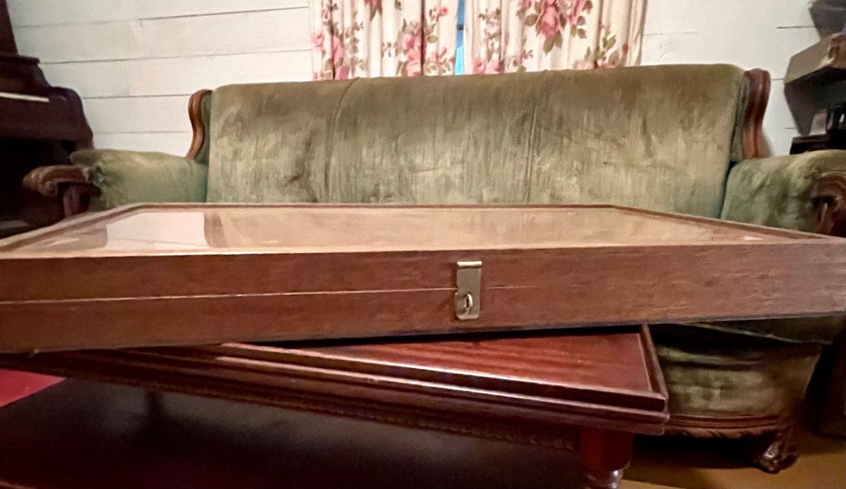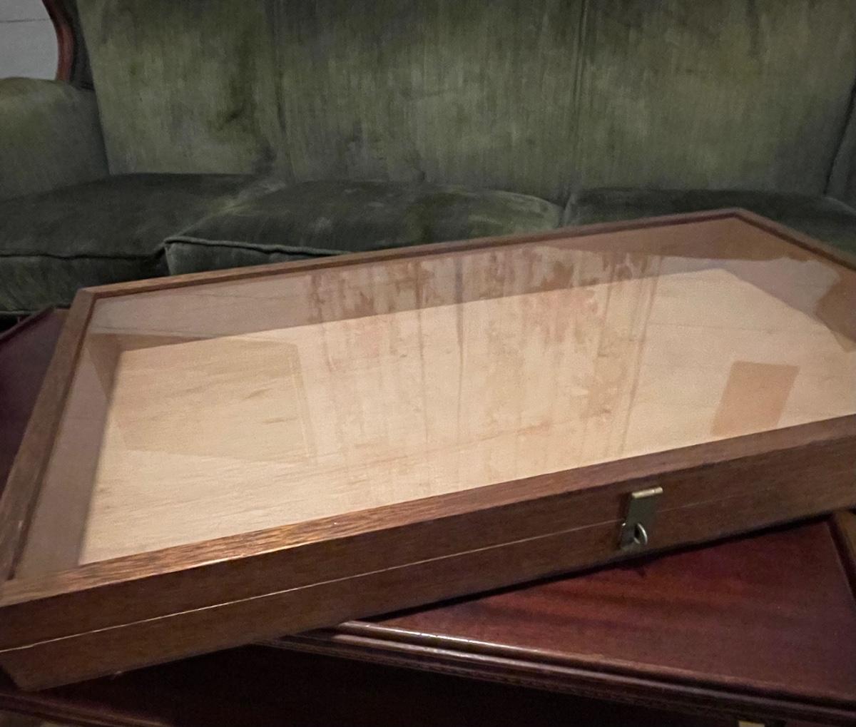This is in great condition. Just some sticker residue. Nice glass, hinges are tight. This would be great for coins, war relics, arrowheads, ephemera, photo collage, etc. great gift idea for a collector! Grab this for someone who metal detects so they can display their treasures!