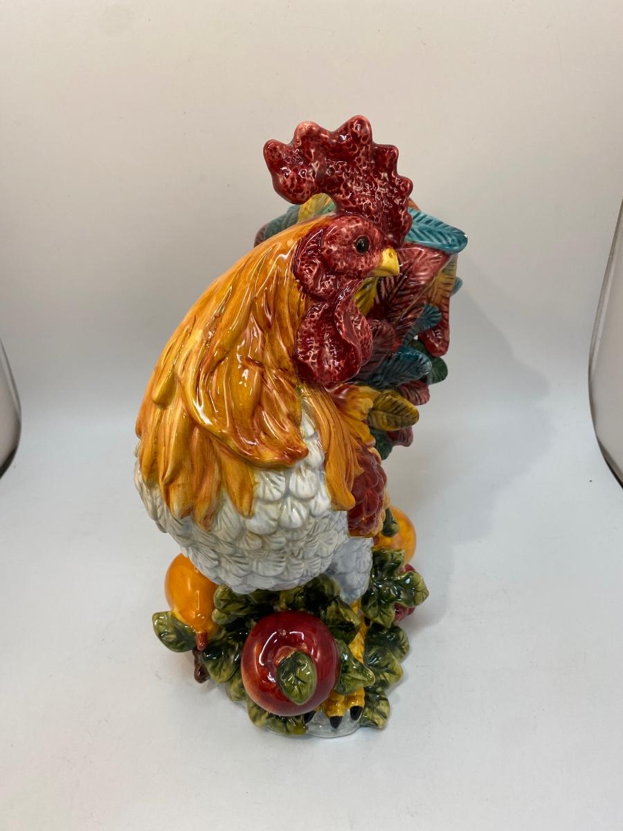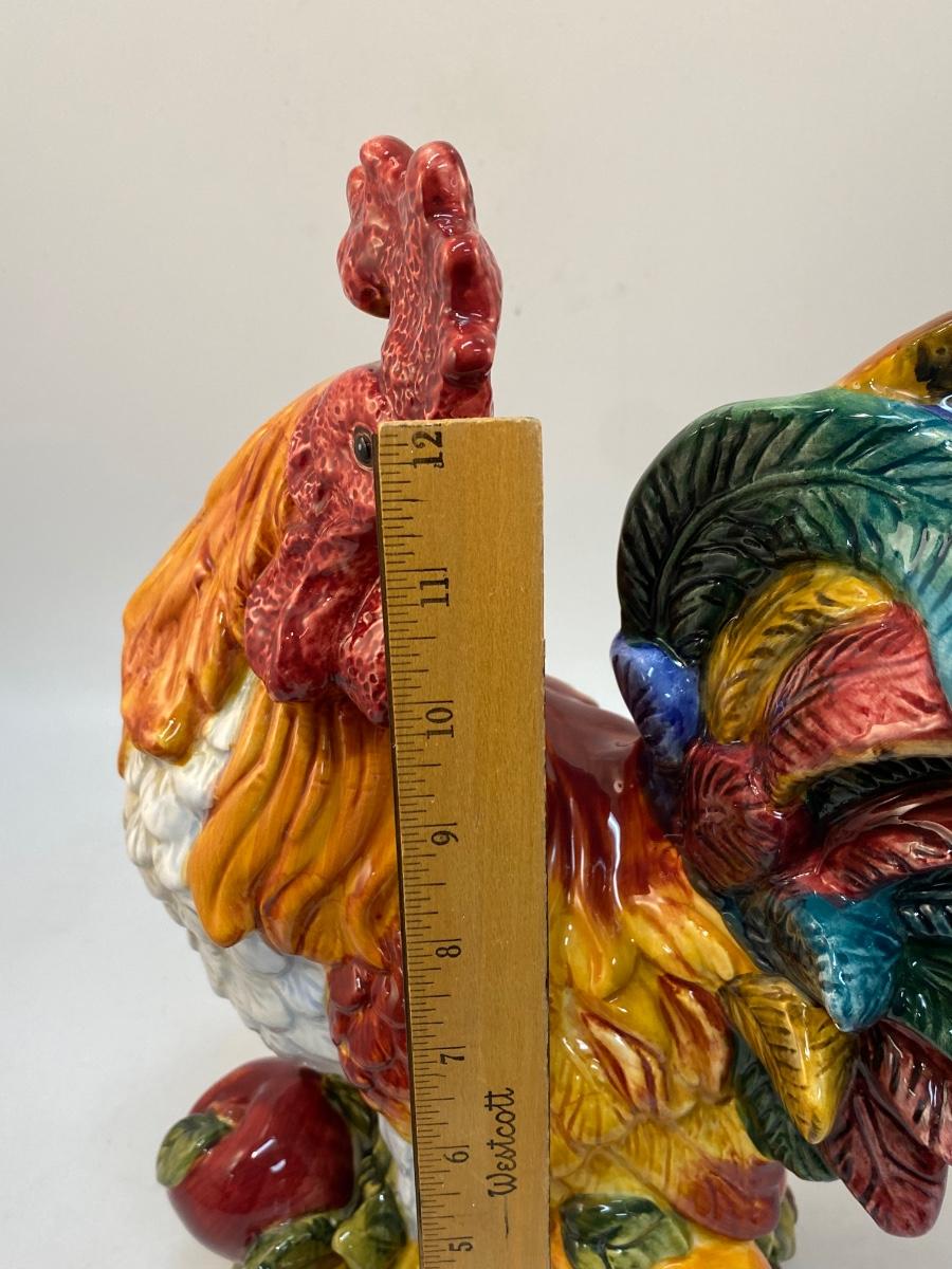 Large Colorful Ceramic Rooster Chicken Figurine Statuette