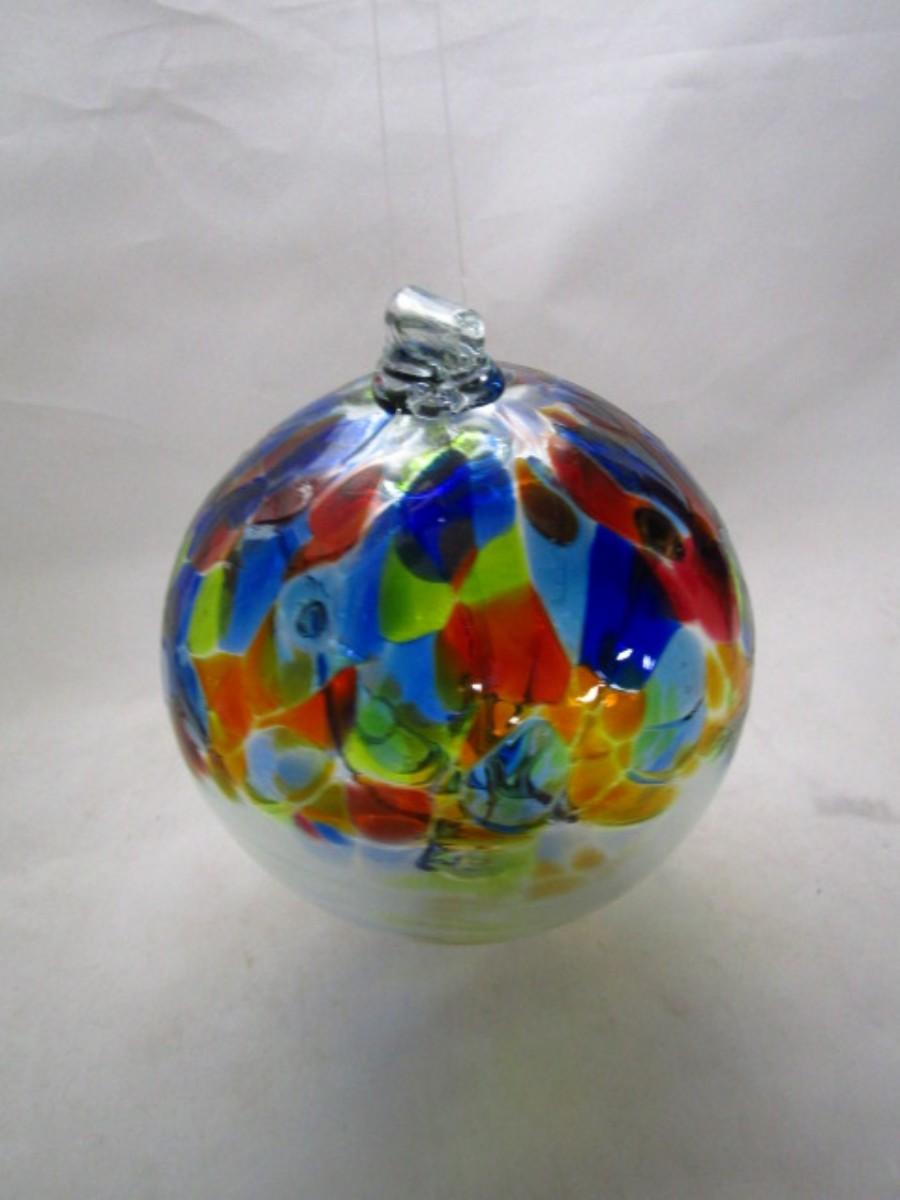 Colorful Hand Blown Glass Ornament- Approx 6" in Diameter