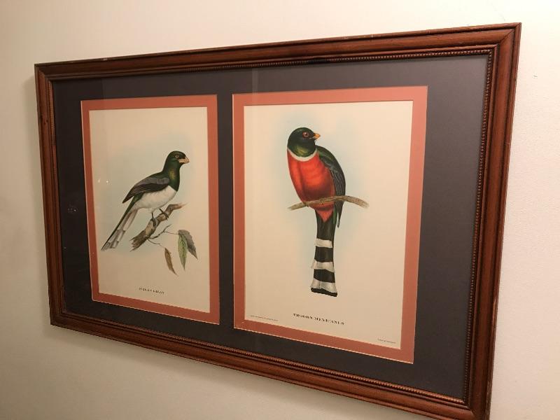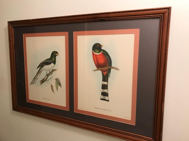 Beautiful print of the the Trogan Gigas & Trogon Mexicanus bird. Framed together. Measures about 23"x36"