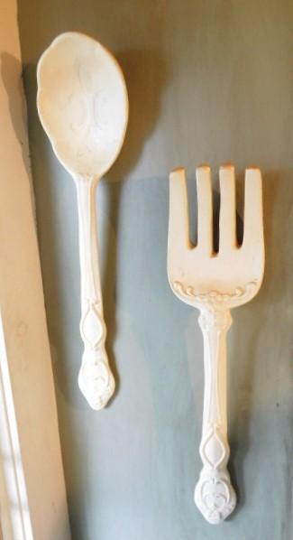 Large Composite Fork and Spoon Wall Decor 36" needs to be cleaned