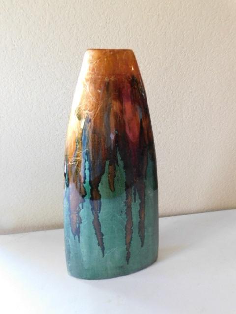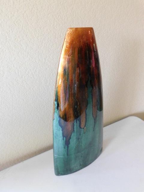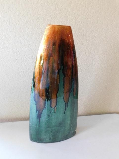 Large Contemporary Design Drip Glaze Metal Vase 10"x22"