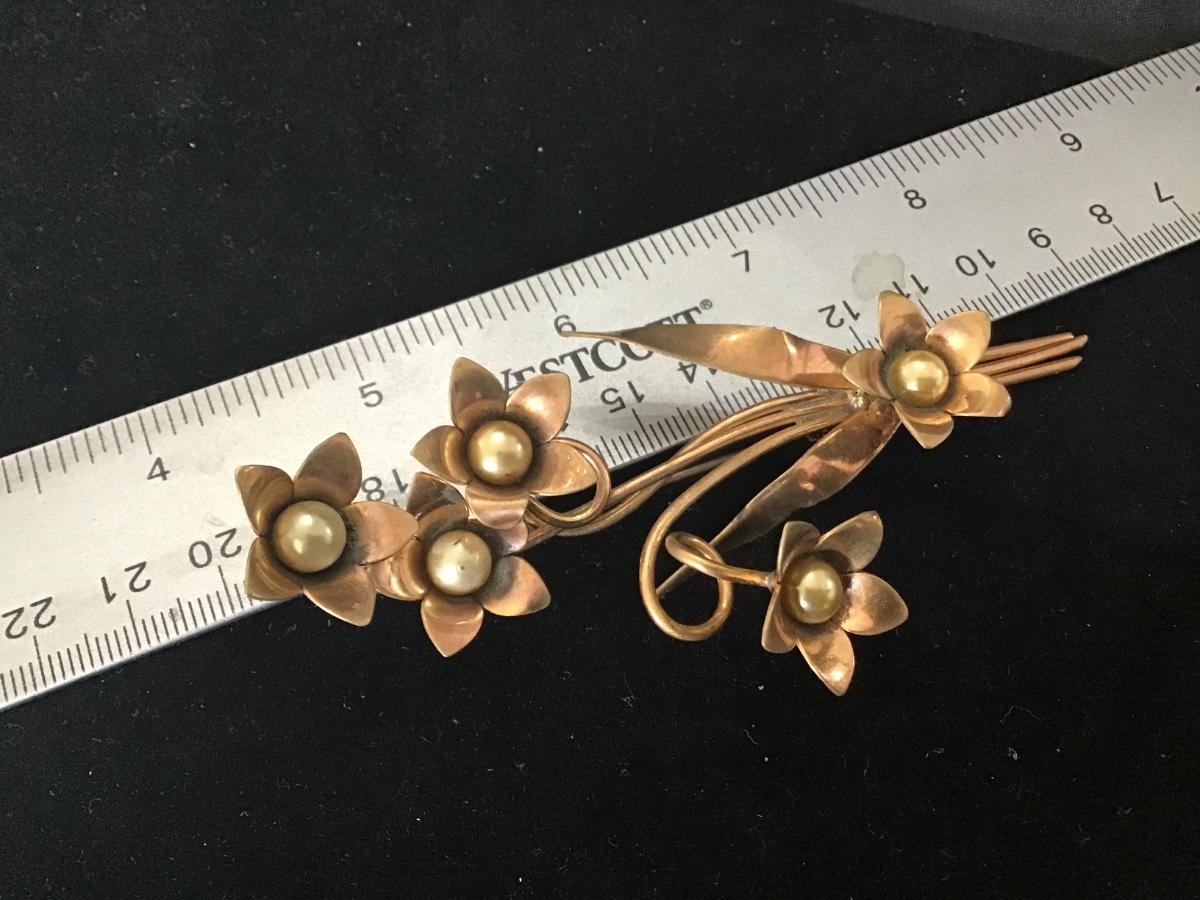 Large Copper Bronze Vintage Brooch