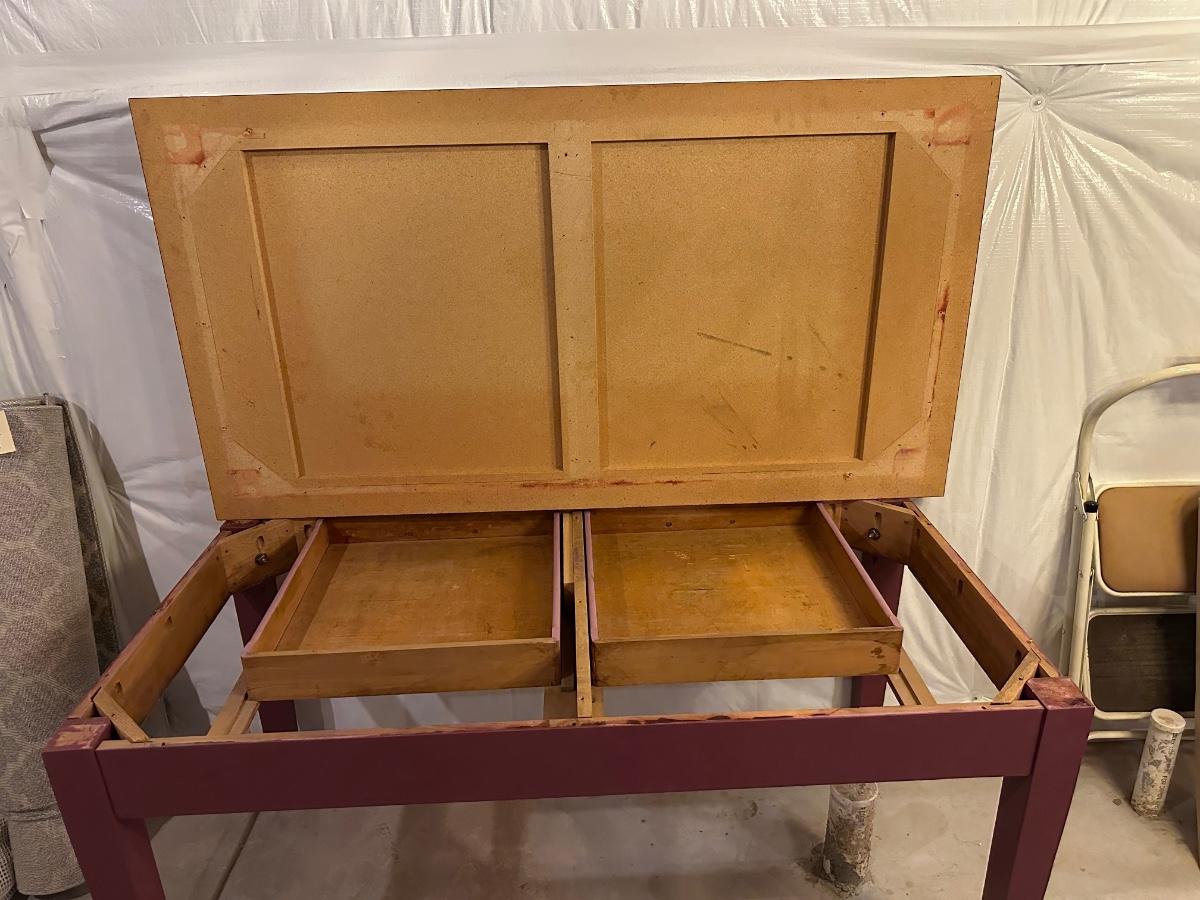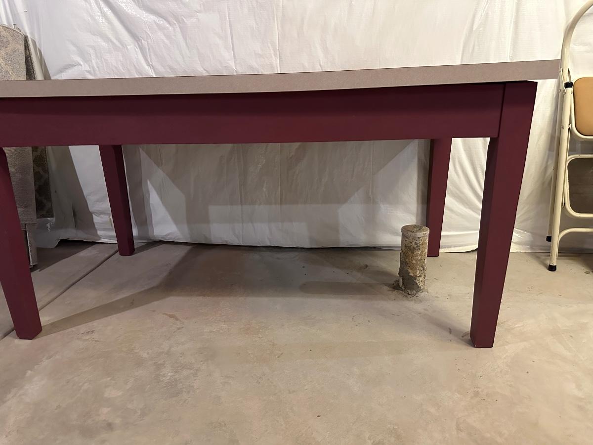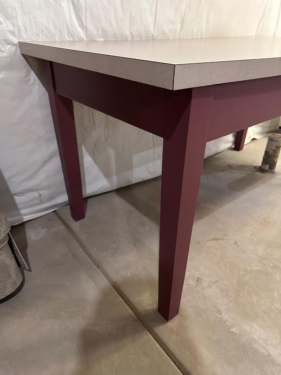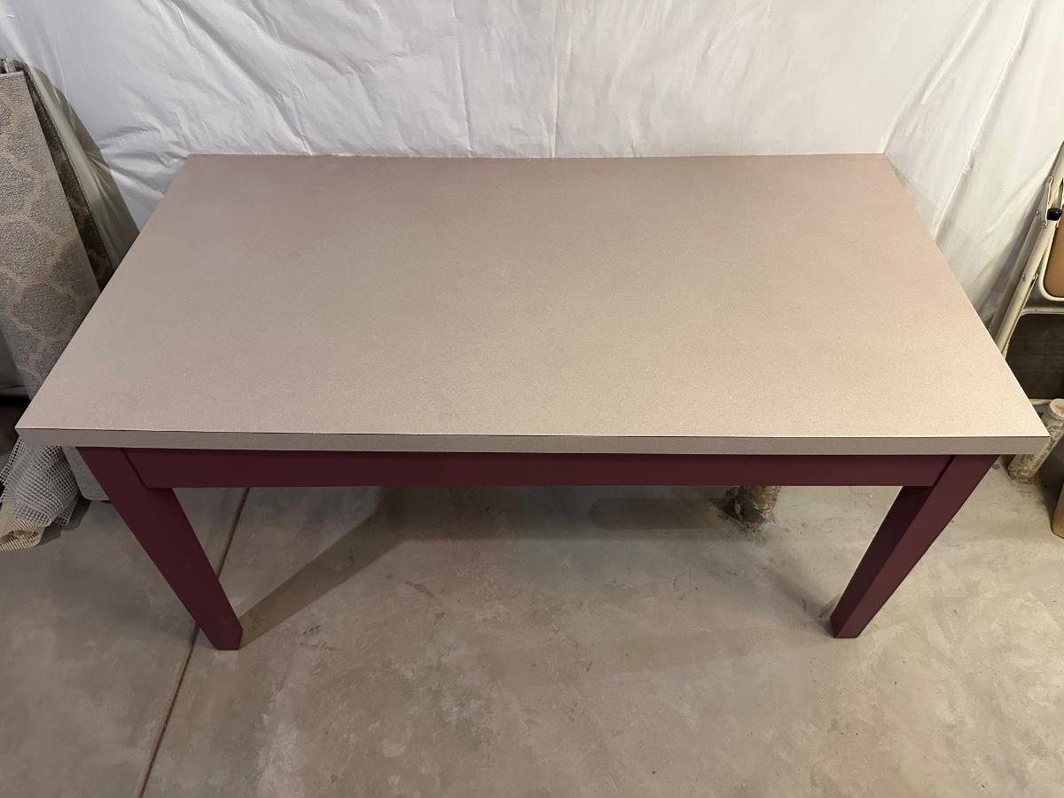 Measures 30-1/2”H x 60-1/8”L x 32-1/8”W, table top is not screwed on.