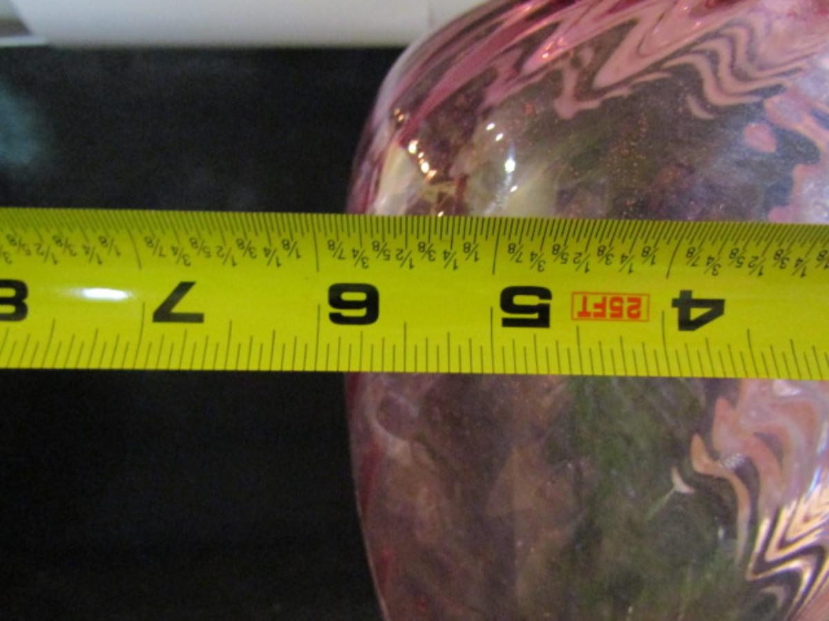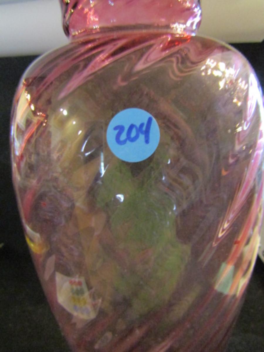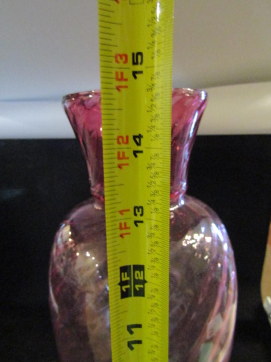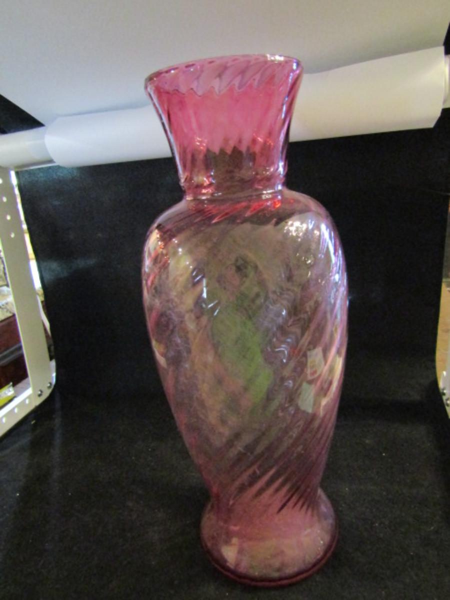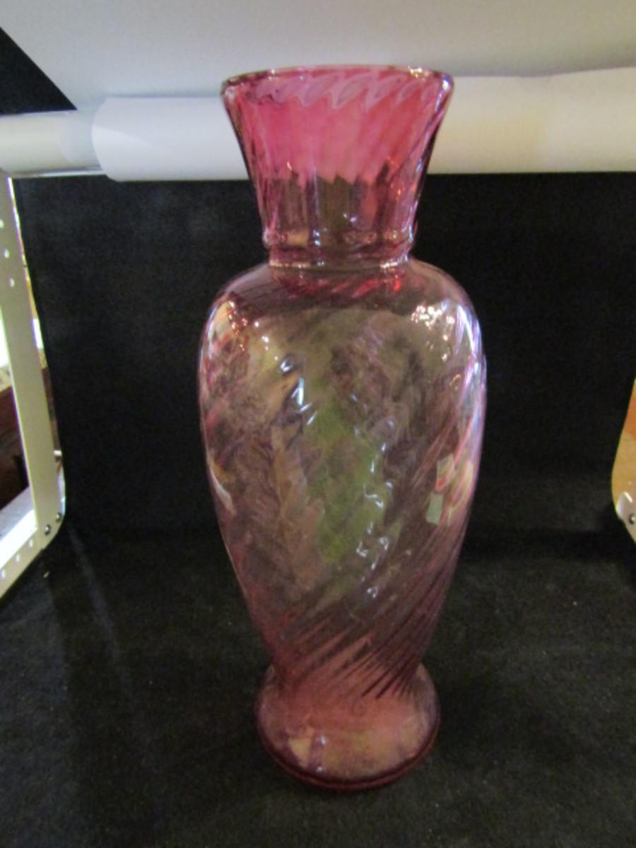 Large Cranberry Glass Vase with Swirl Design (#204)