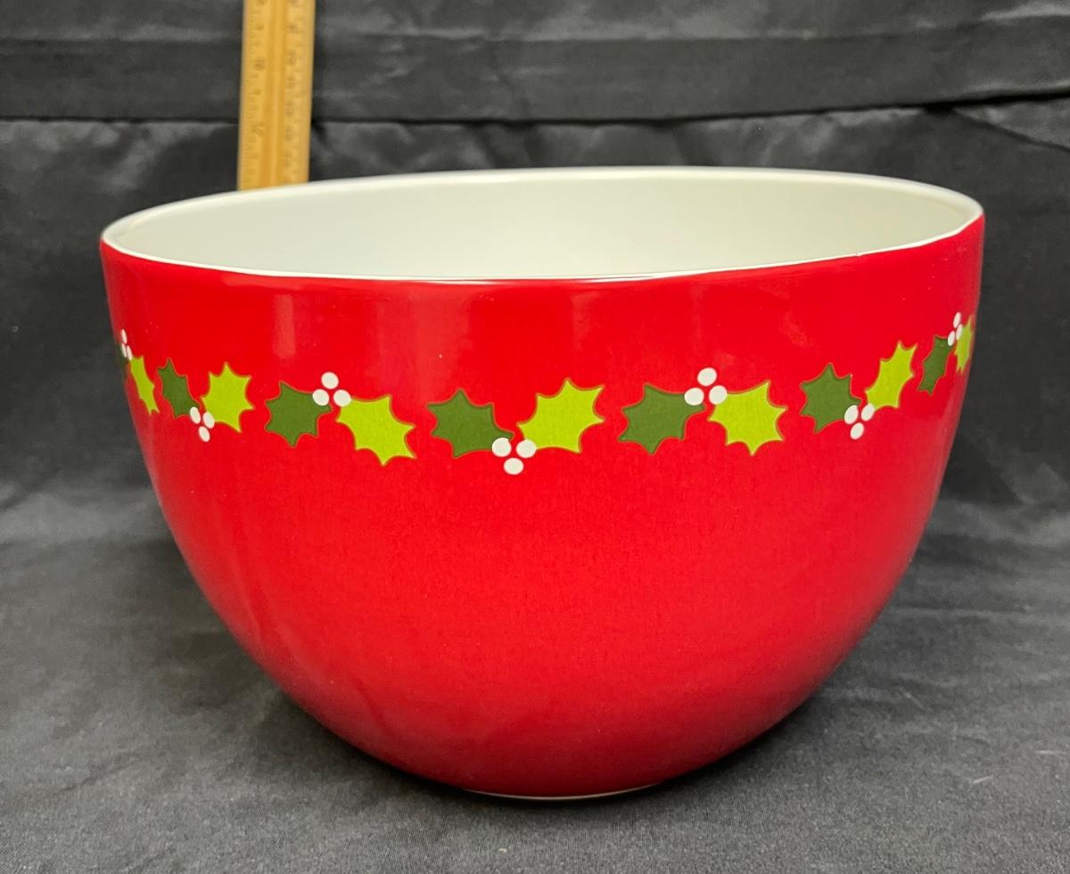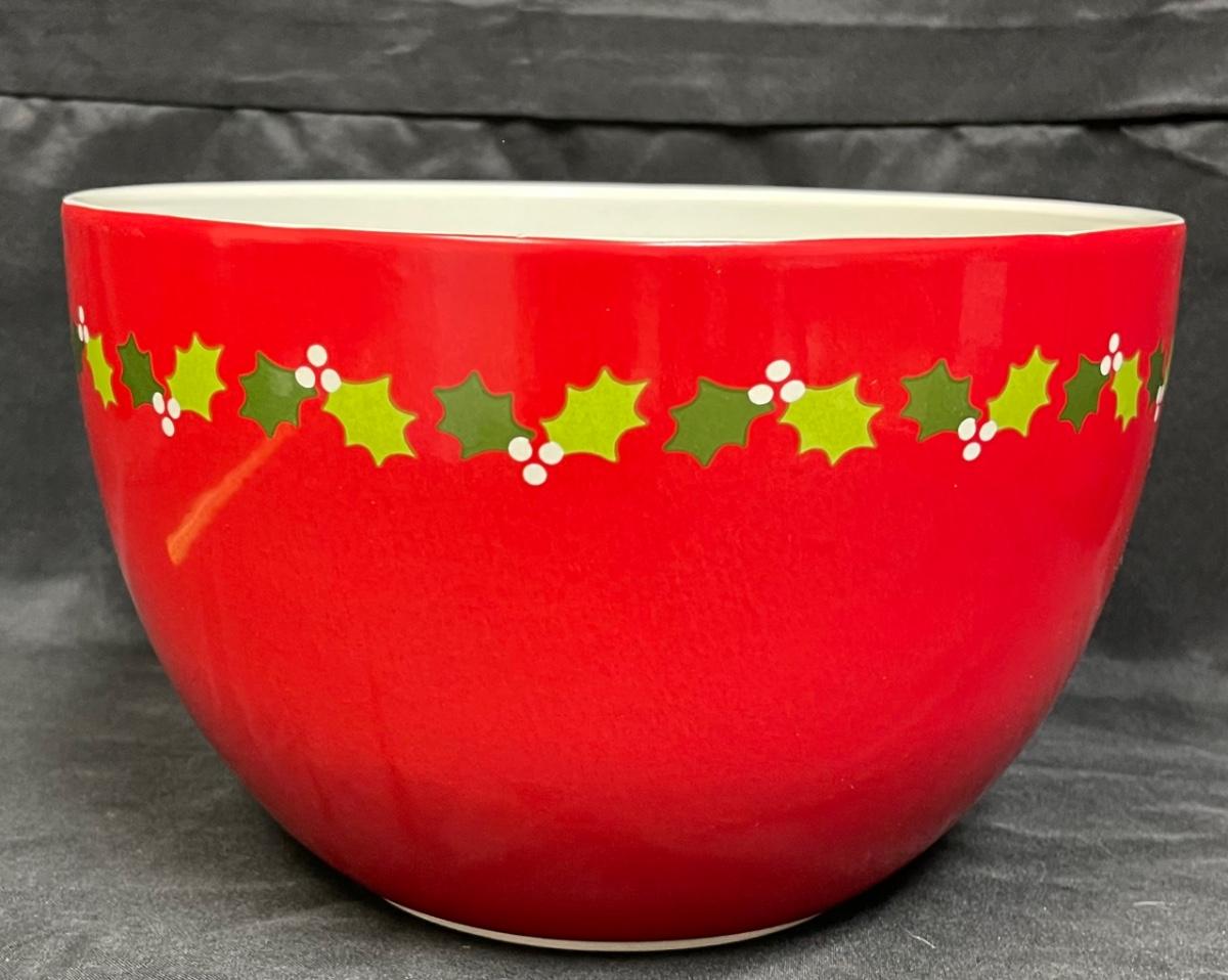 Crate and Barrel Large Red with Holly Pattern Mixing Bowl