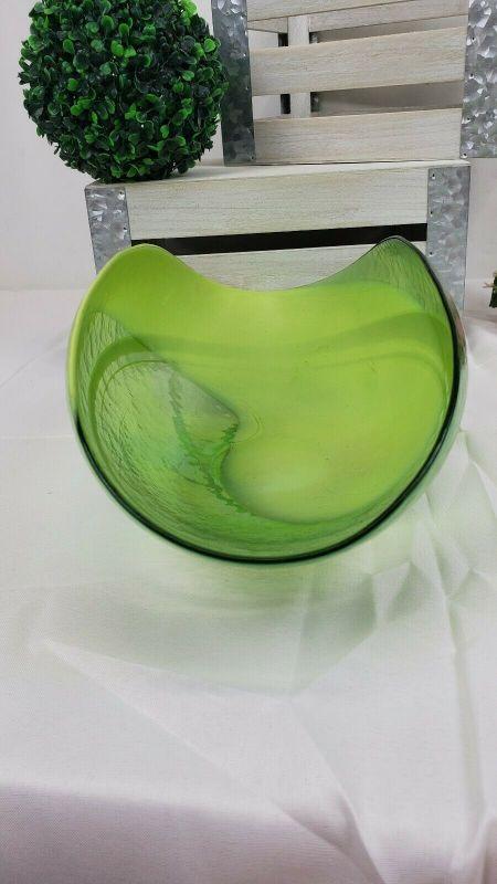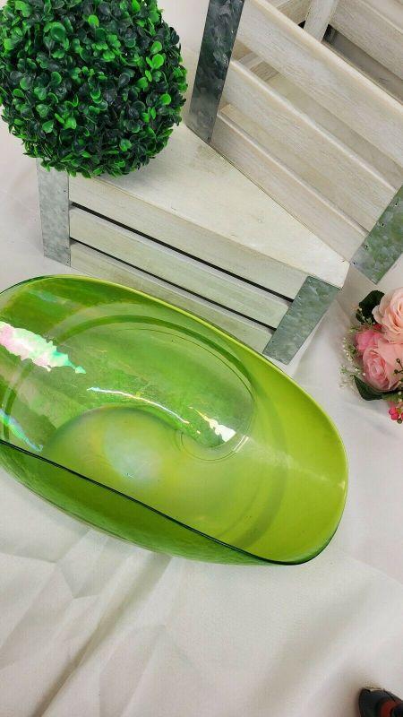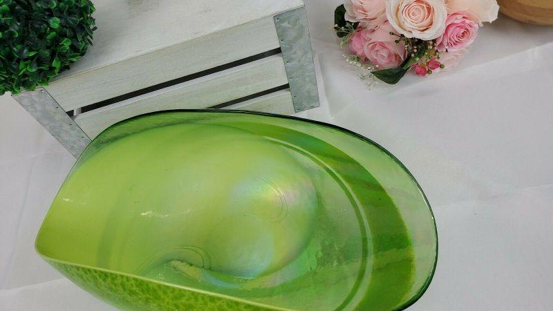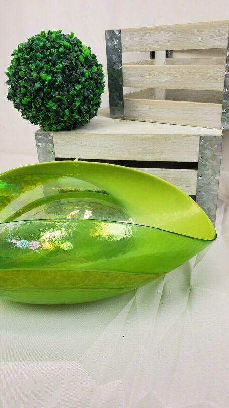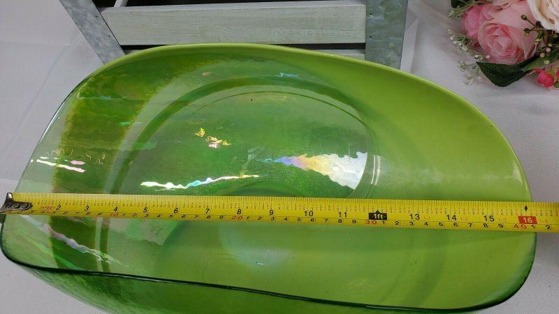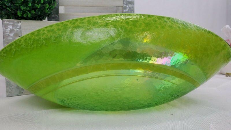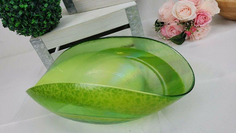 LARGE Crate & Barrel Agave Bowl, Green Iridescent Glass, Made in Italy