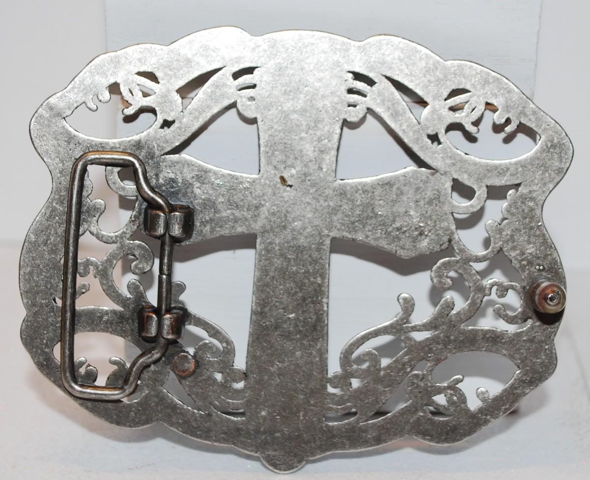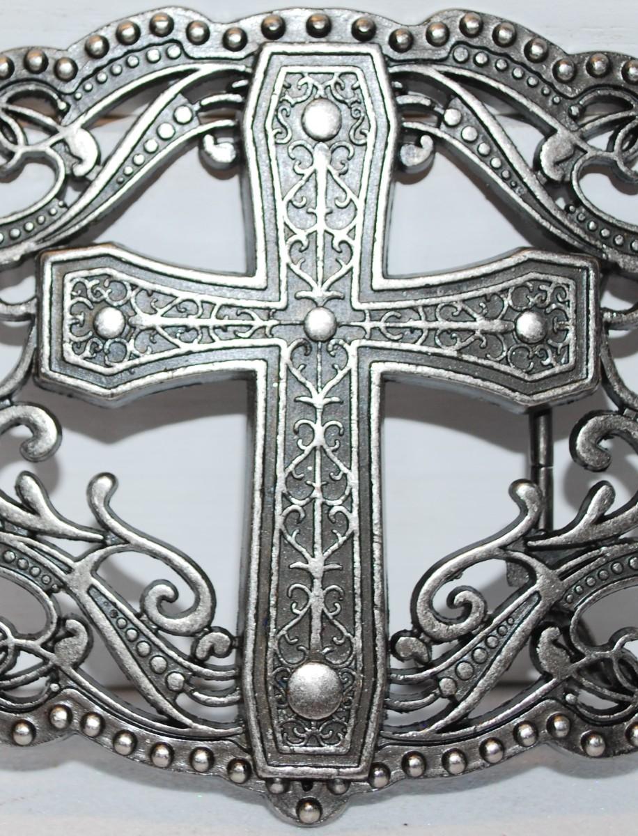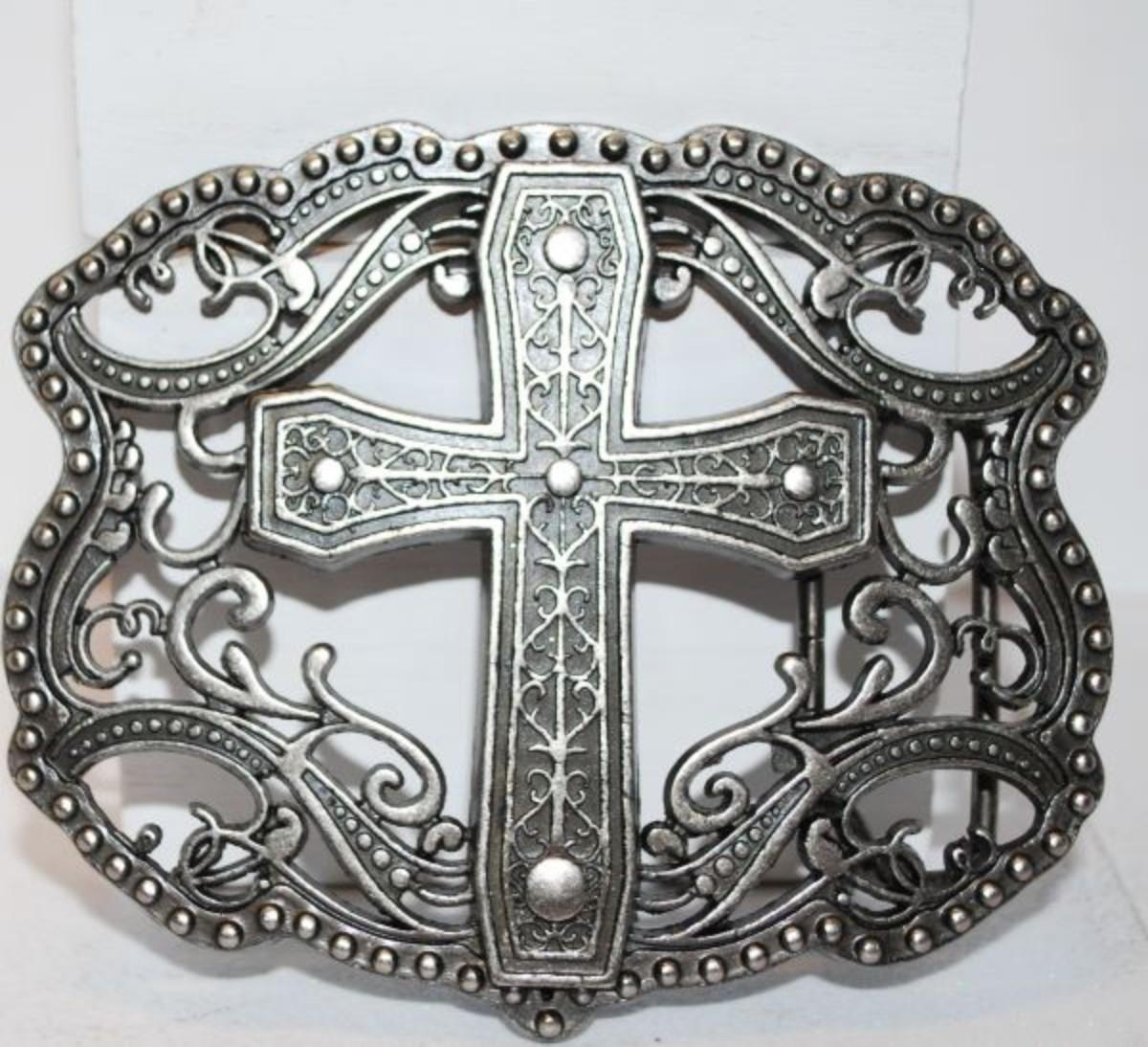 Large Cross on Open Swirl Design Belt Buckle 3 3/4" x 3"