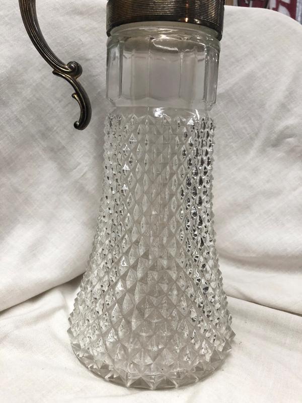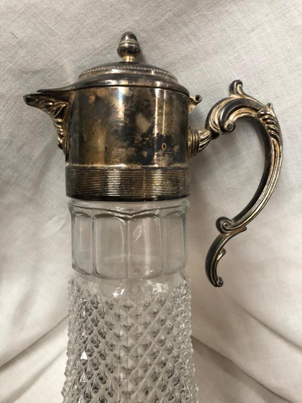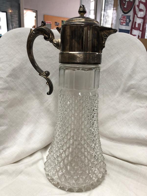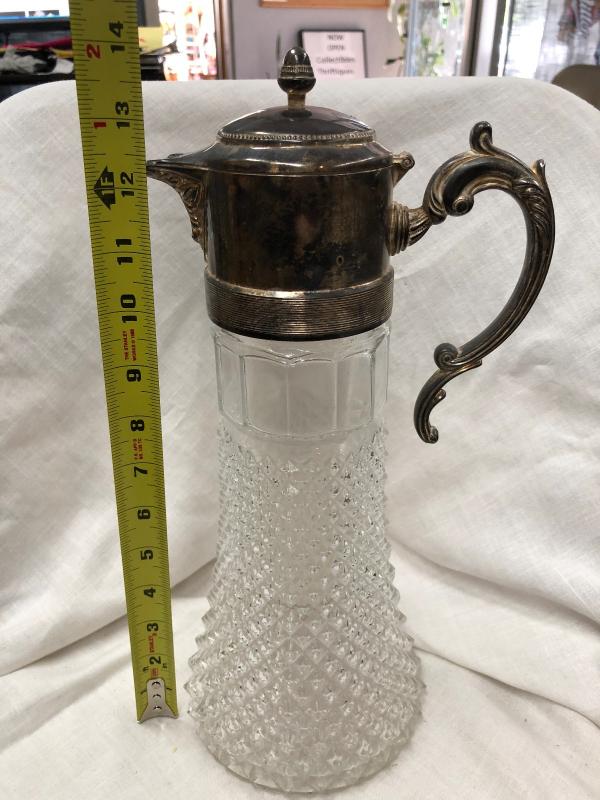 Large Crystal Based & Silver Top Plated Pitcher (Item 965)