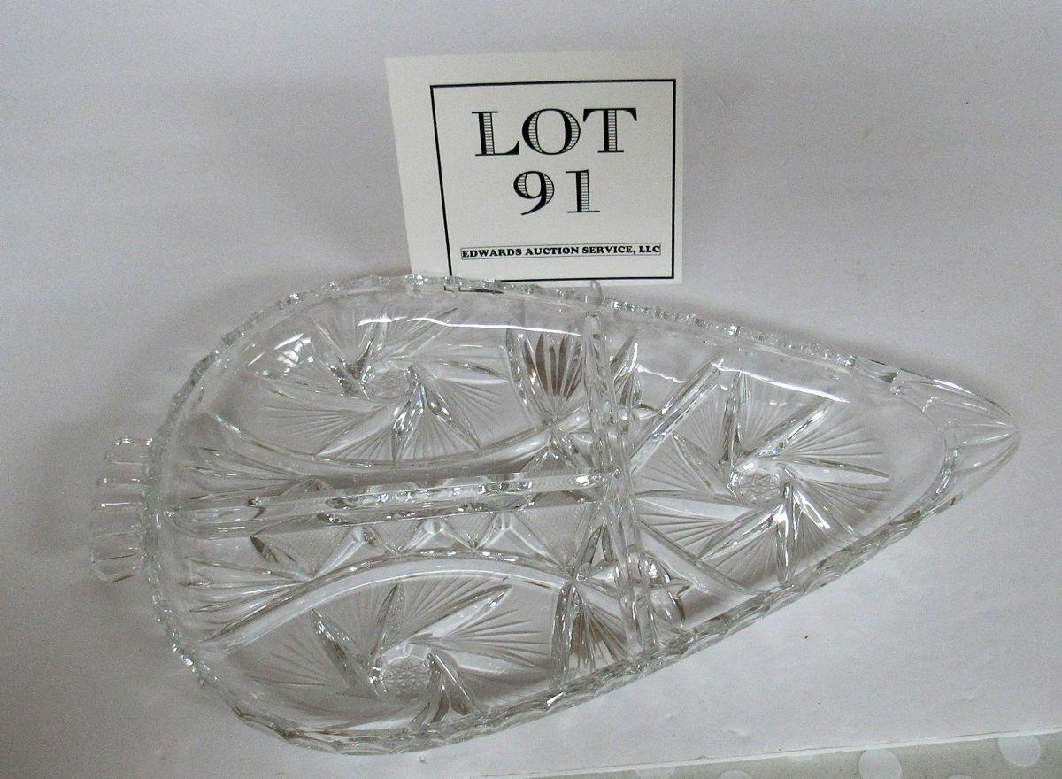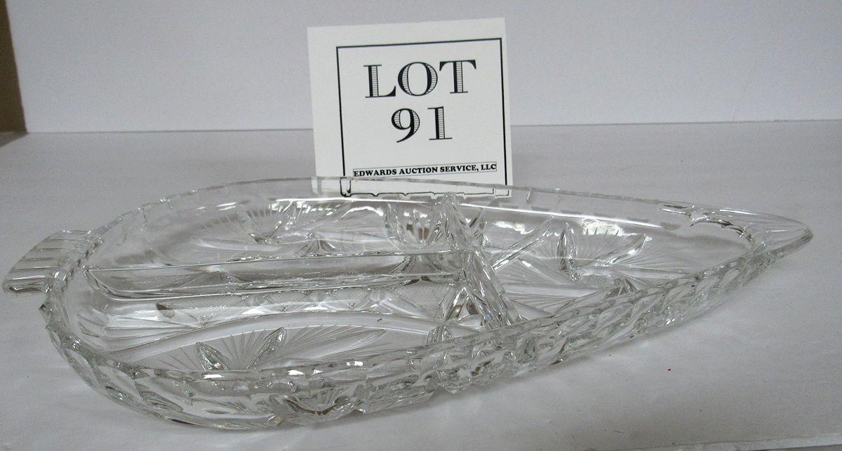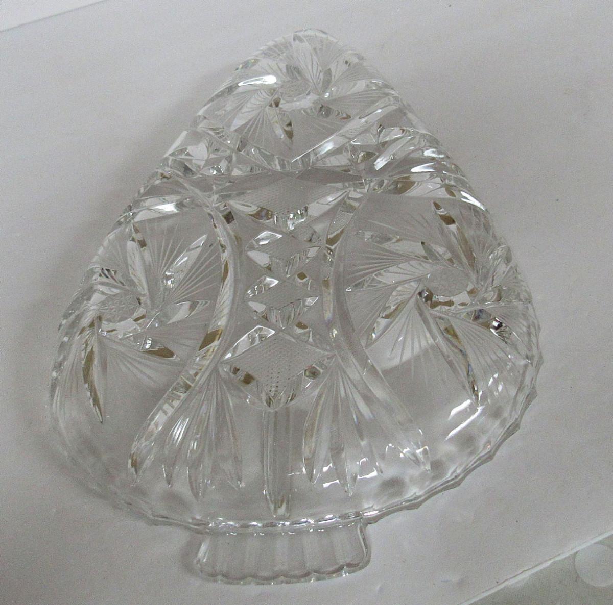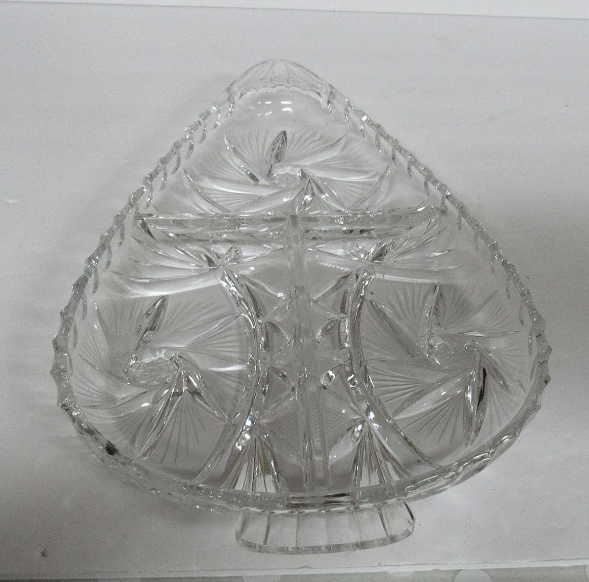 Large Crystal Divided Relish Dish Shaped Like Arrowhead