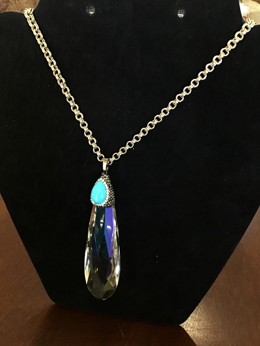 Large Crystal Pendant 3 inch Sarah Coventry chain