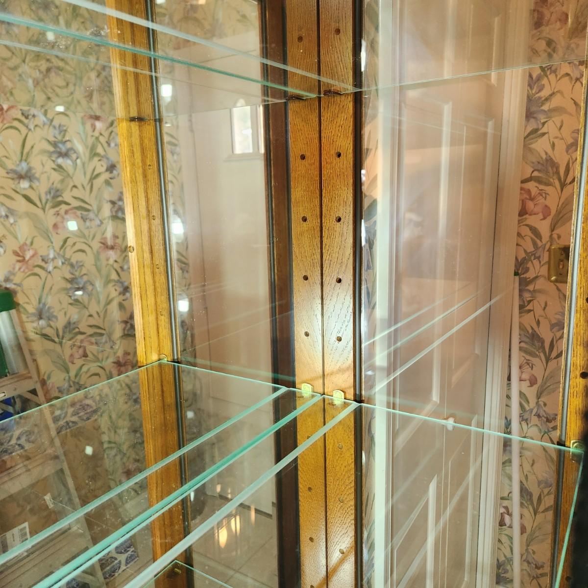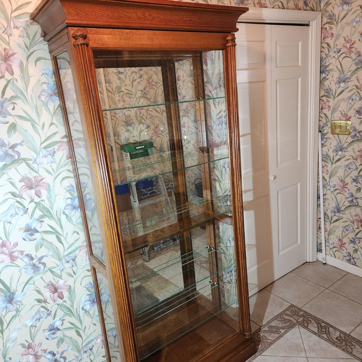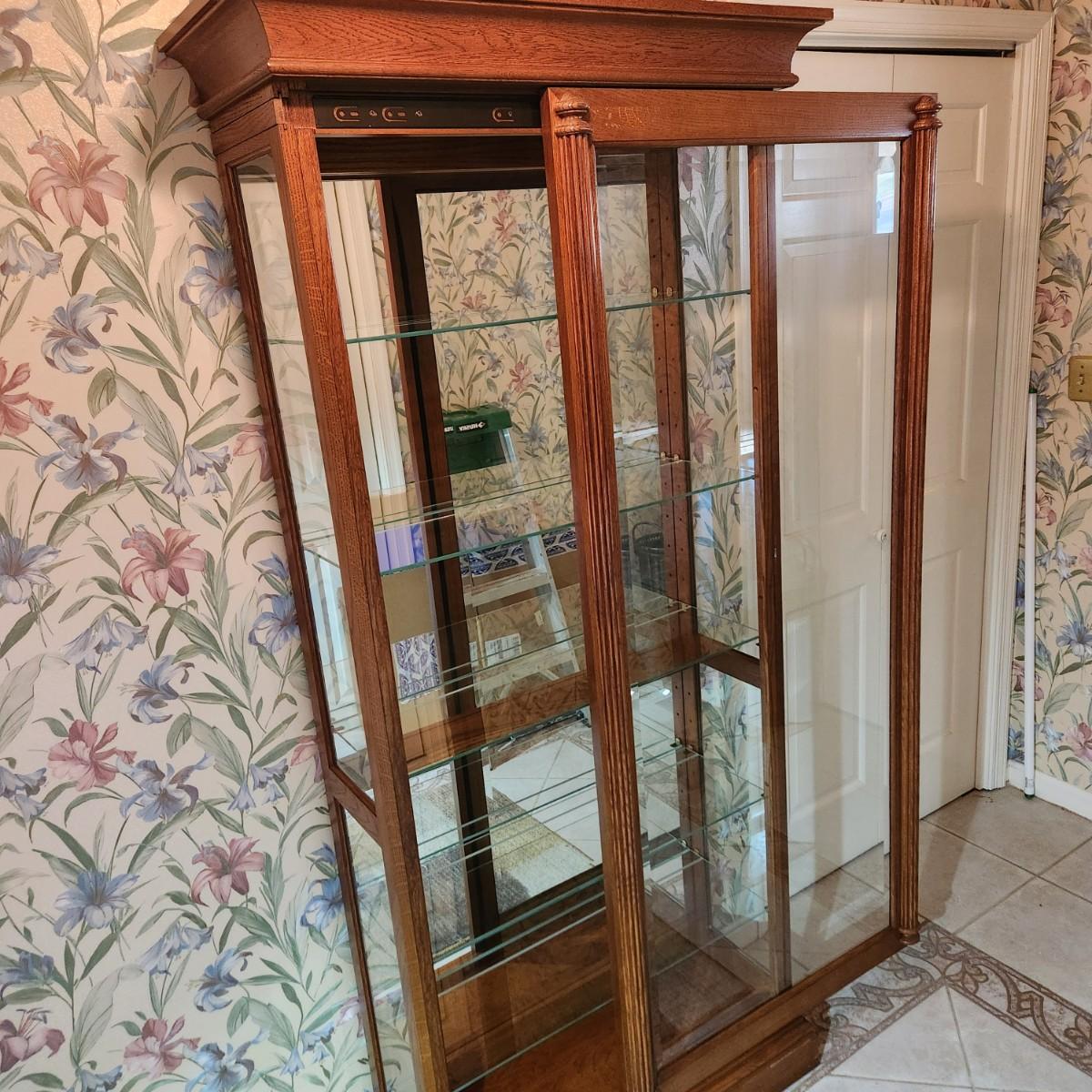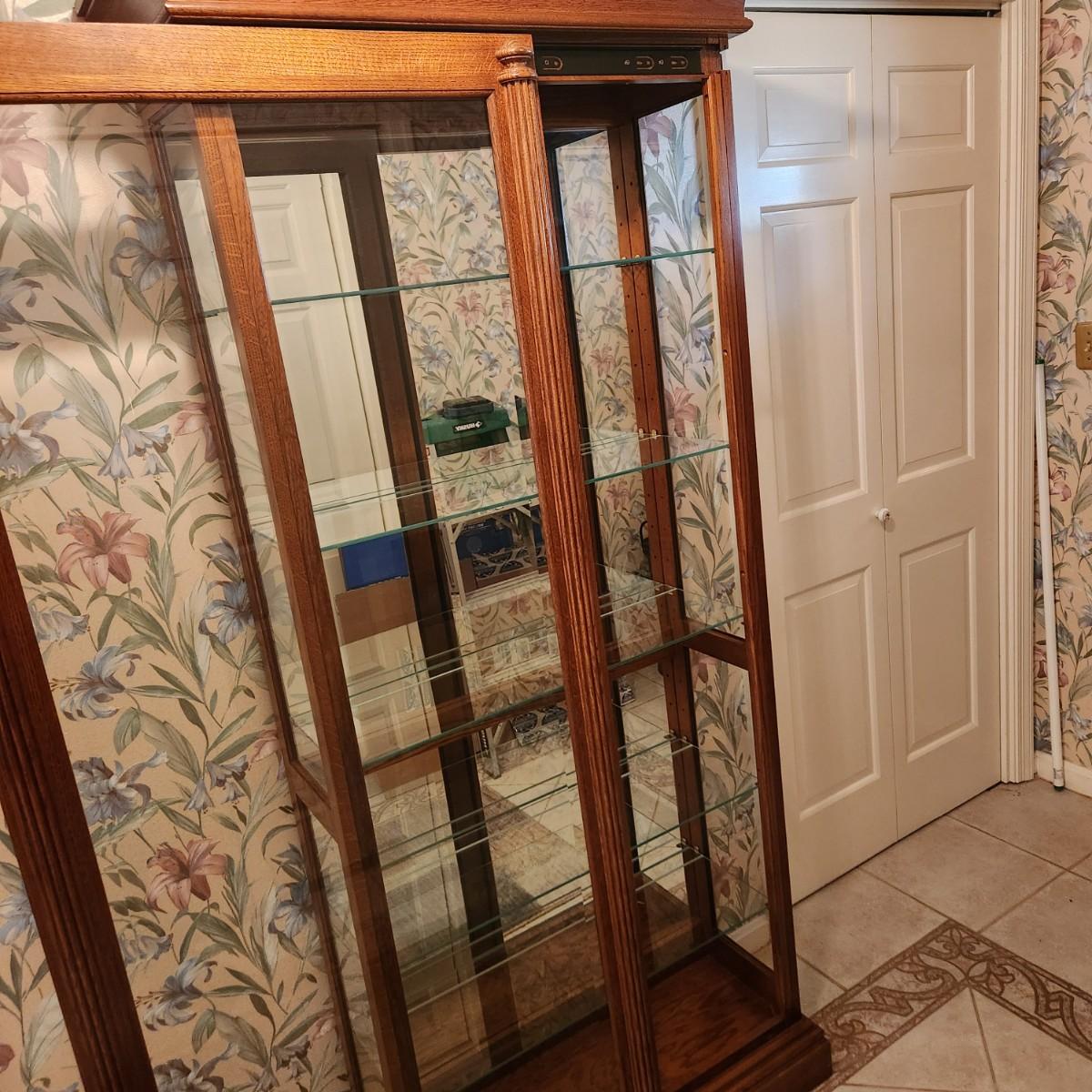 Large Curio Cabinet Display Case w Sliding Front Glass Left to Right Adjustable Shelves