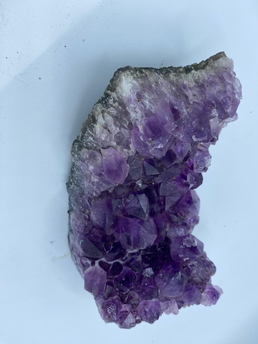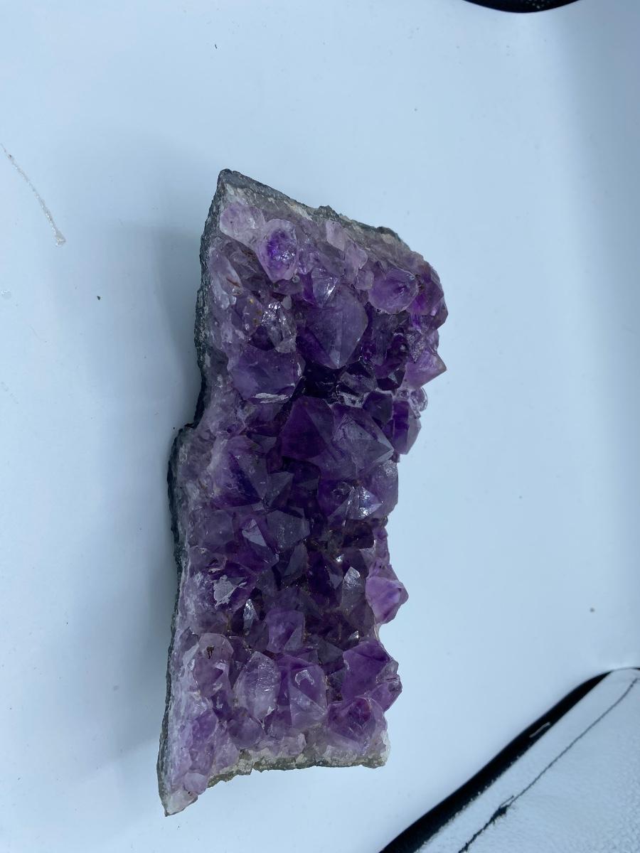 Wonderful amethyst geode from collection of Paul Francis Kerr. Measures 7” long, 4” side, and super thick 3-4” . Big glistening crystals