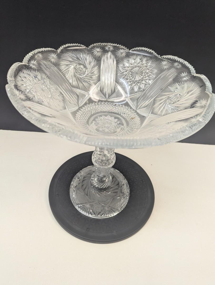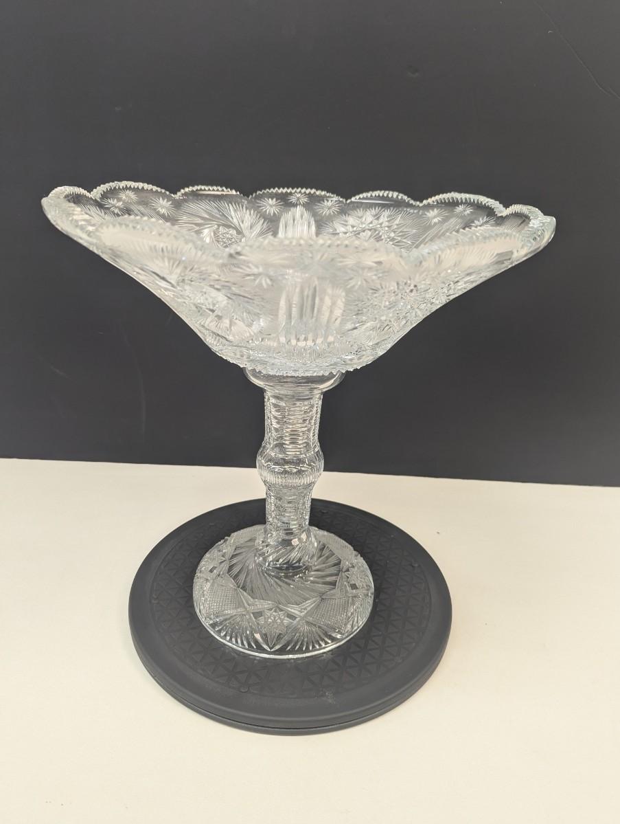 Large Antique Hand Cut Glass Centerpiece 14 1/2" Tall