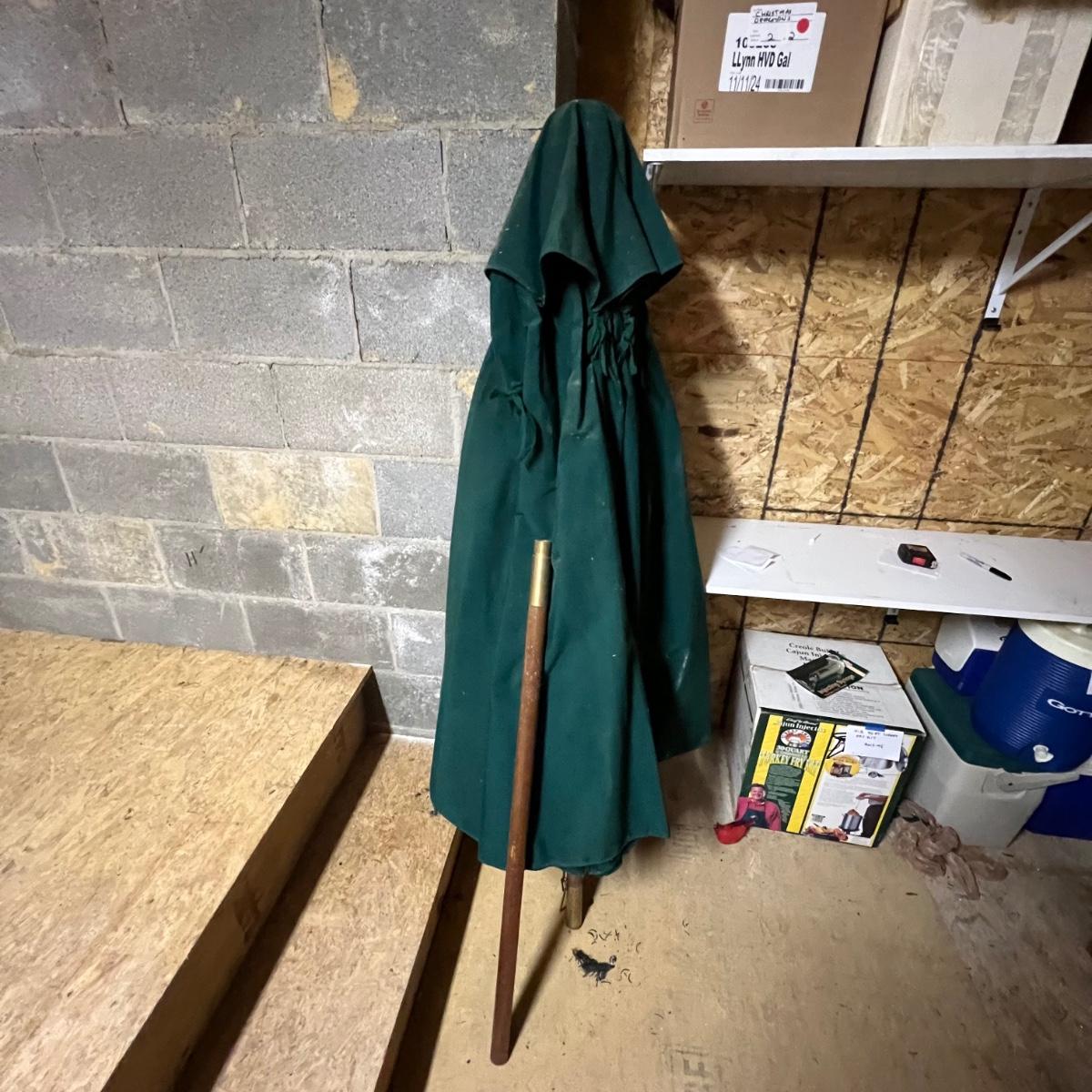 It is a little dirty from storage but should come clean. A similar style item is shown in a stock photo to give you an idea of what it would look like up, this is not this umbrella.