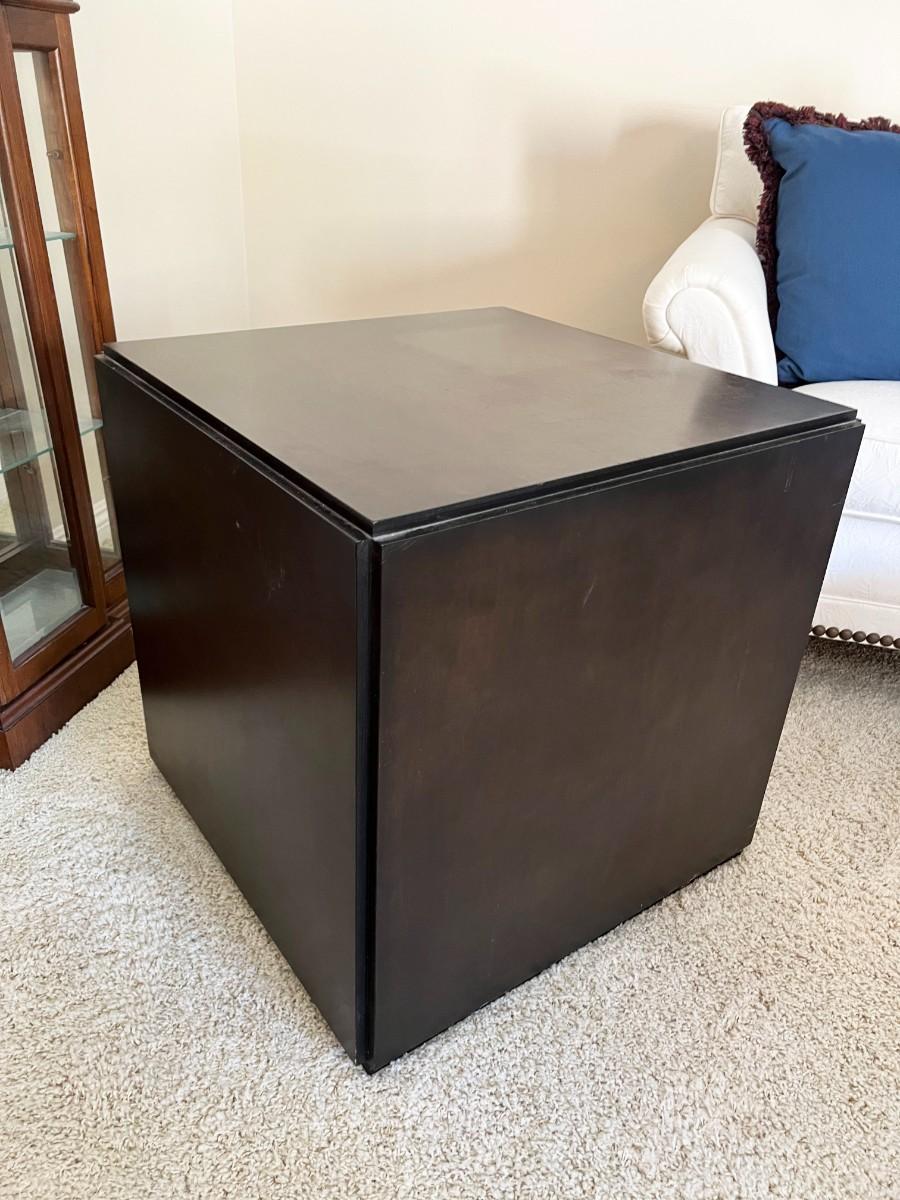 Large Dark Wood Cube Decorative End Table