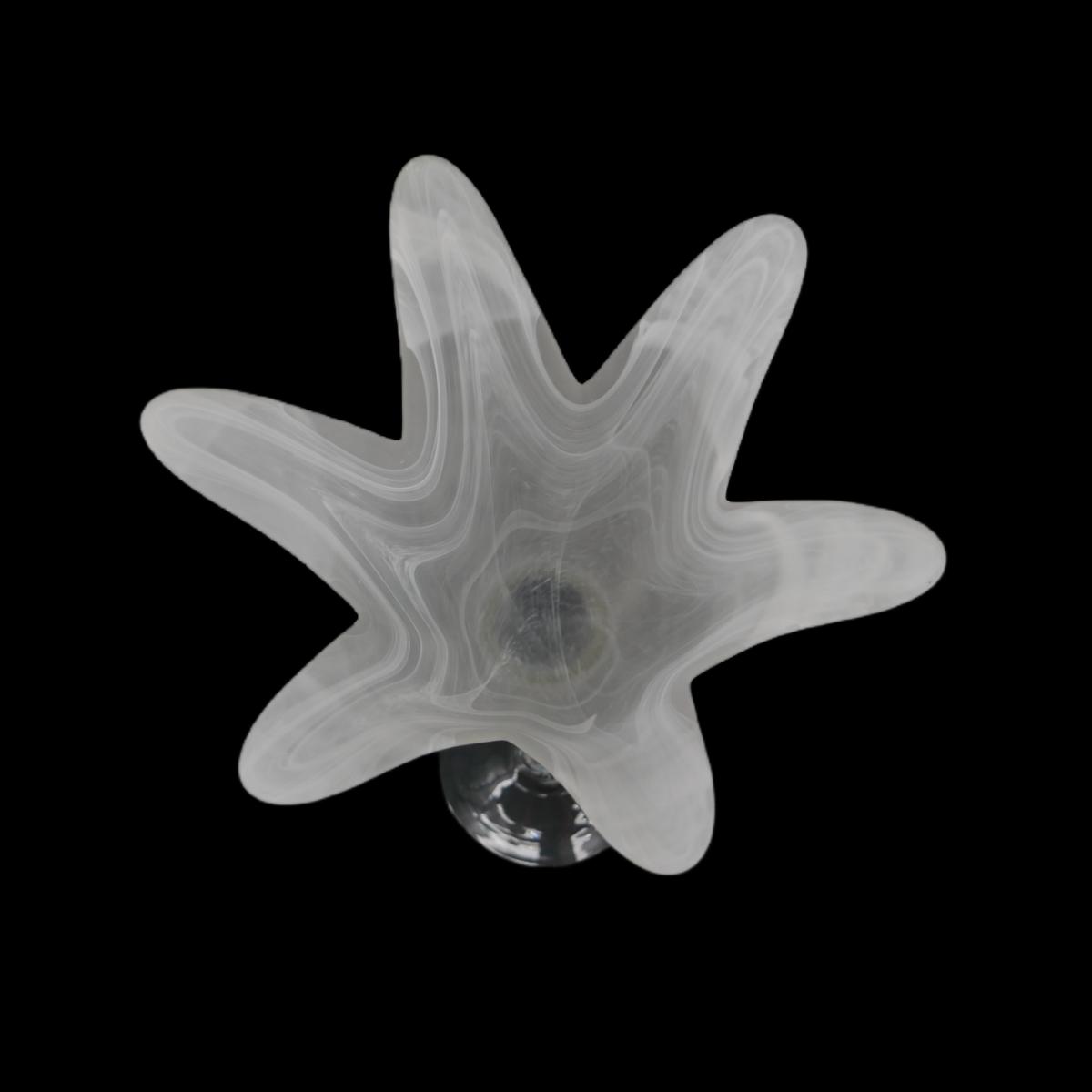 Vintage large white frosted milky colored art deco style piece. The lily petals ring like crystal and flower is approximately 8.25" in diameter and 5.25" in height. Piece stands 11.25" in total height. Weighs 1 lb 2 oz. Made in Poland, no visible issues found. Superb piece of art! (D38)