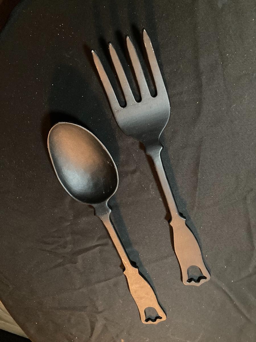 Large Decorative Metal Fork and Spoon Wall Hangings 20"