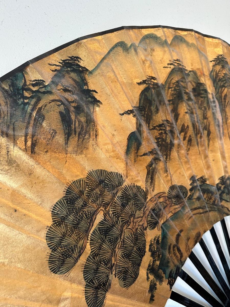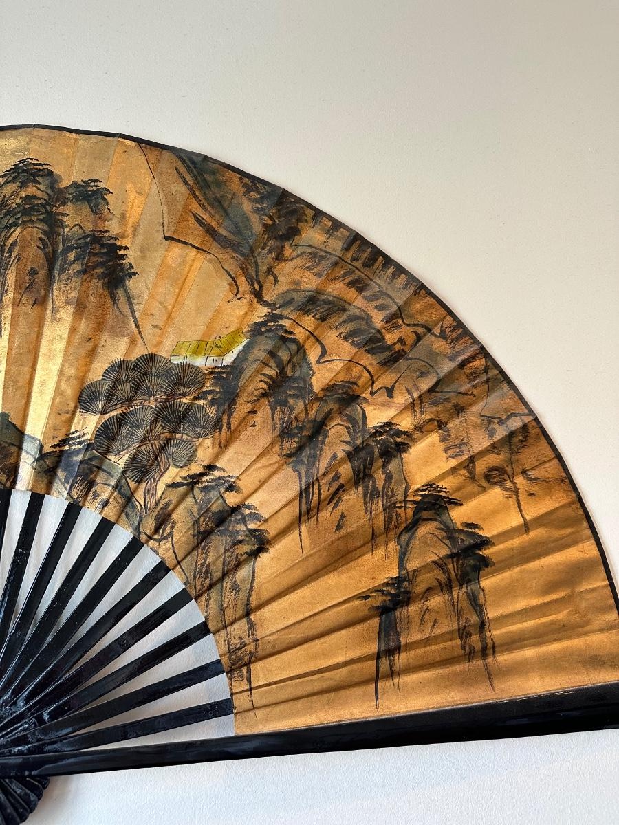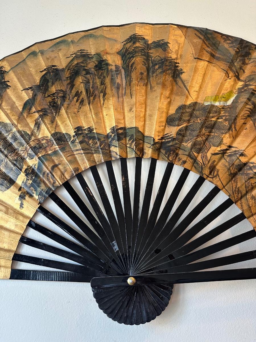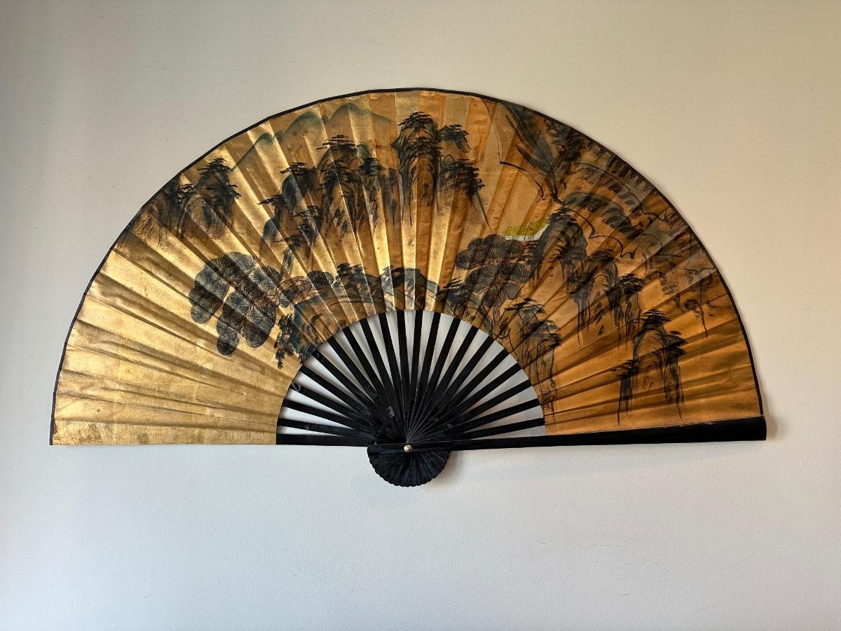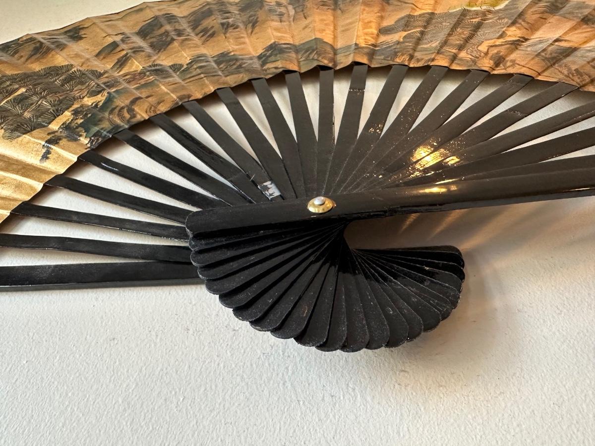 Large Decorative Wall Fan with Gold Landscape Design