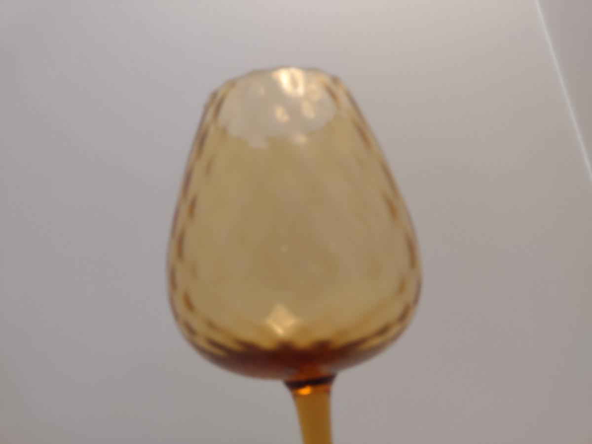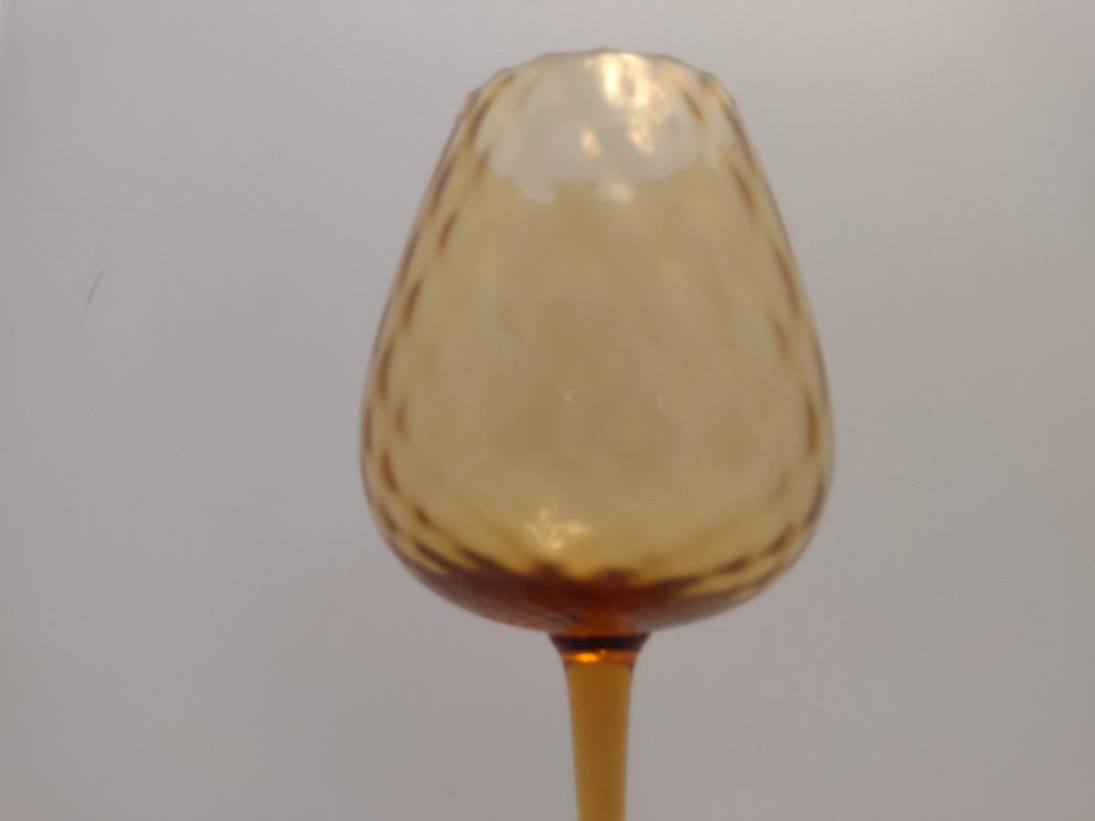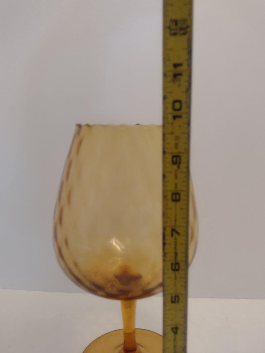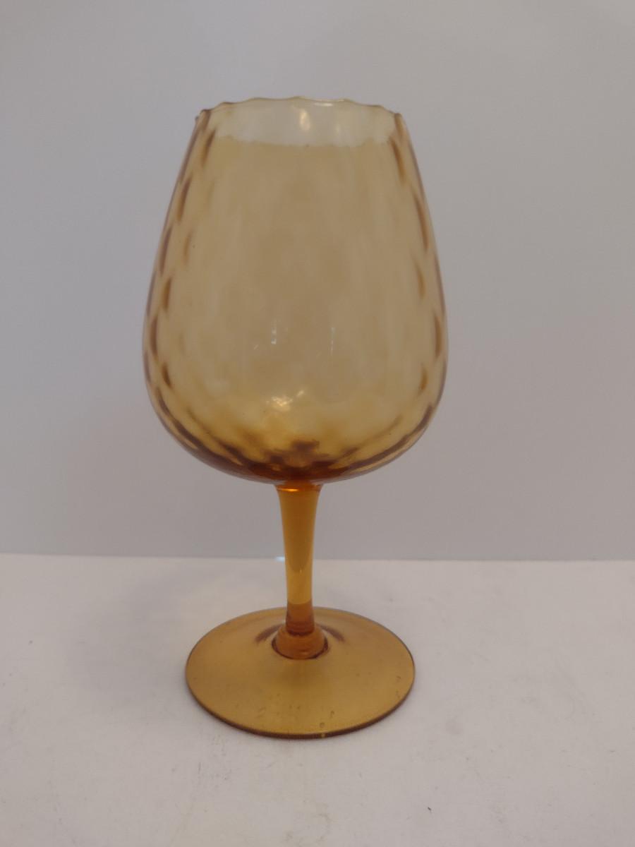 Large Diamond Optic Amber Glass Art Vase- Possibly Empoli- Approx 9 3/4" Tall