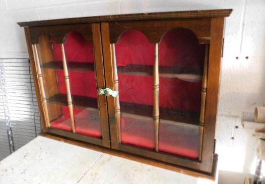 Large Dish or Trinket Cabinet with Glass Doors Wall Hanger 30"x20" expect some wear or scratches.