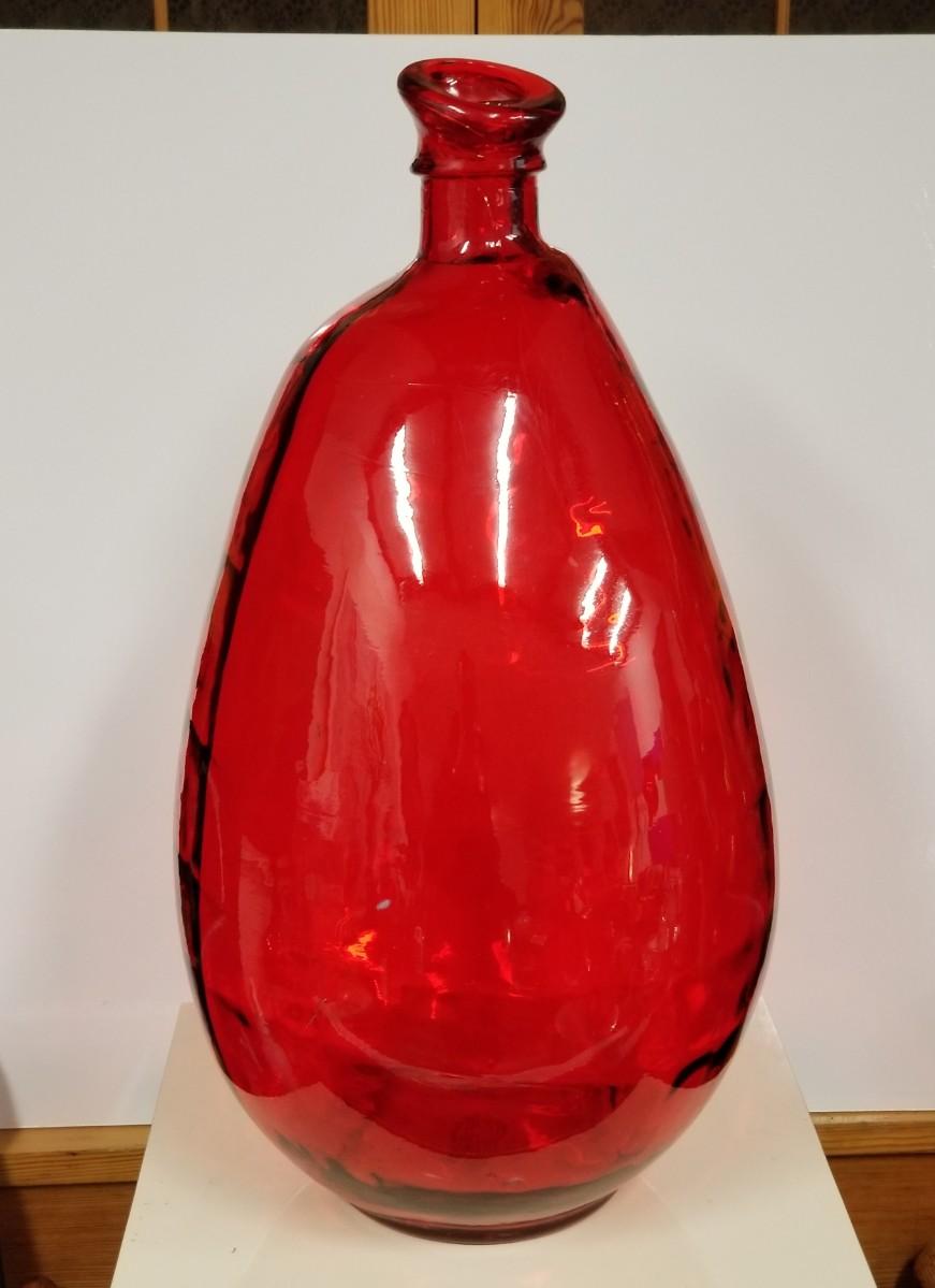 Large distinctive contemporary translucent red vase