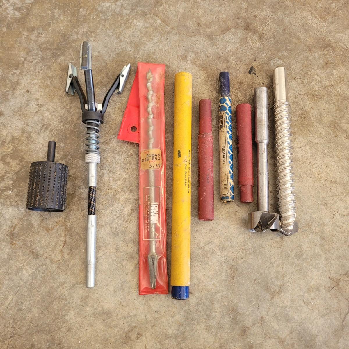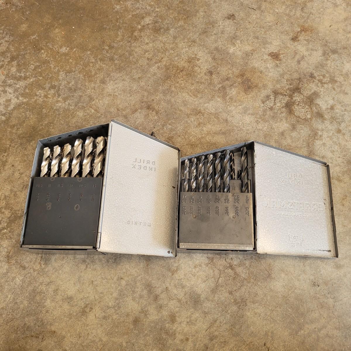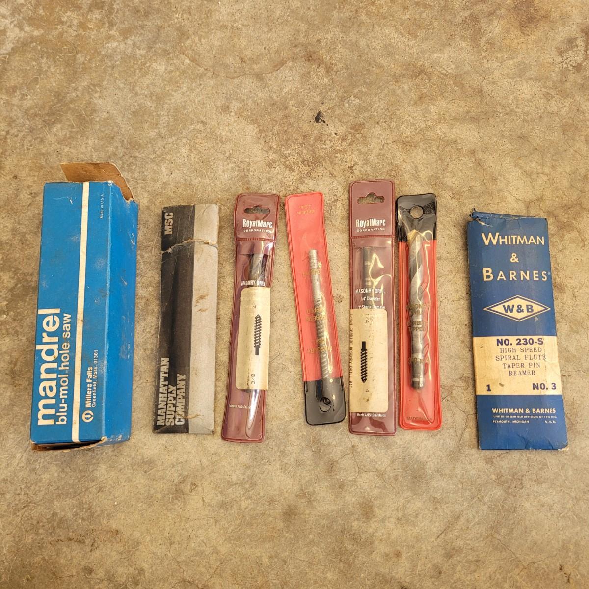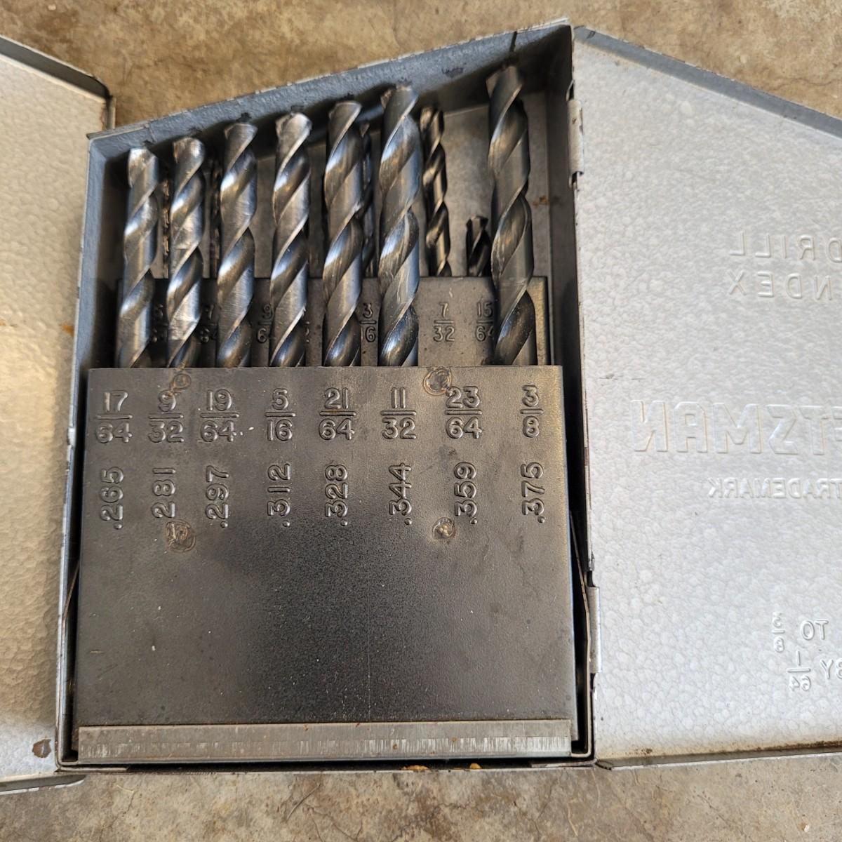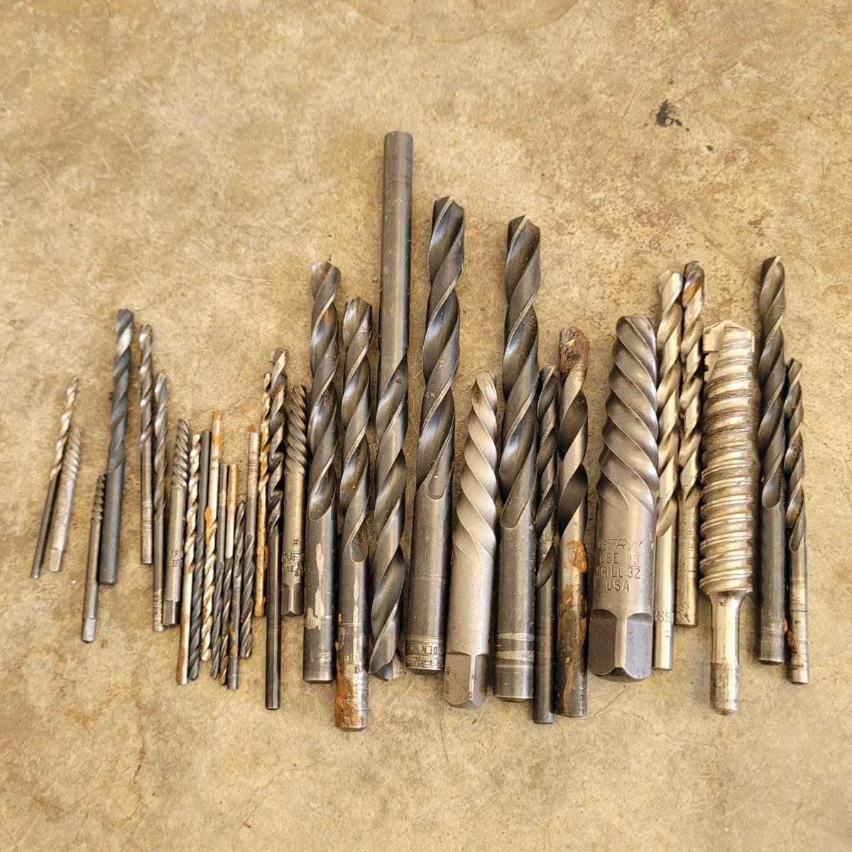 This lot includes a large mix of drill bits and attachments. Five kits featuring drill bits and attachments for a power drill and various loose drill bits. Many different sized bits. Brands include Craftsman, Vermont American, Hitachi, and RoyalMarc.