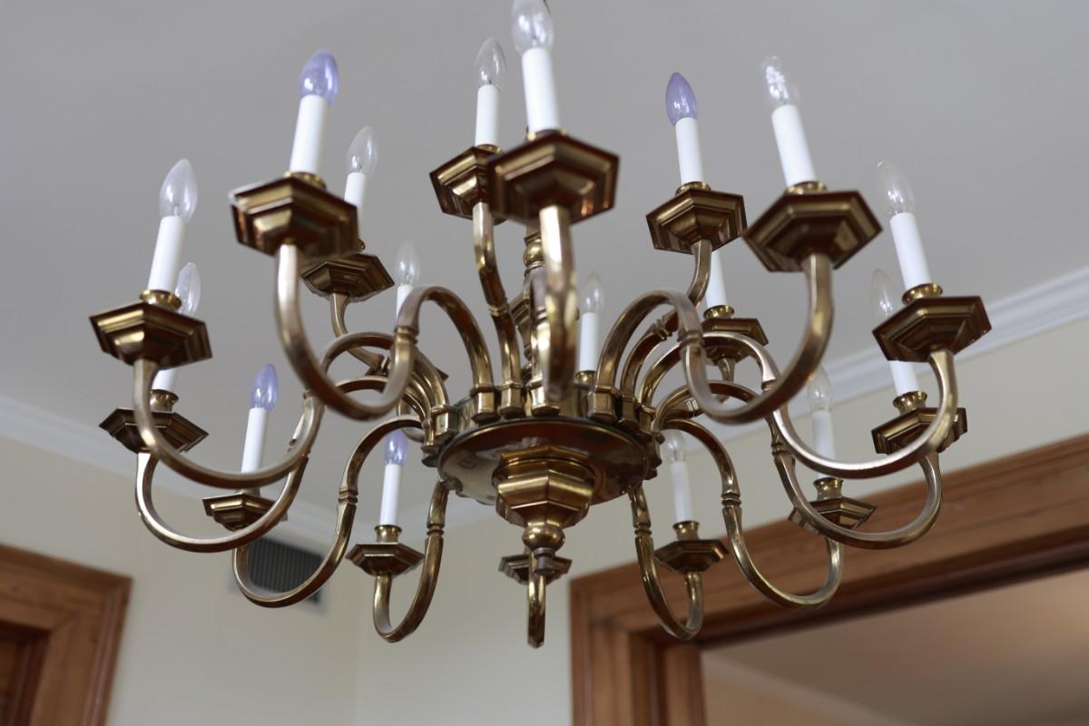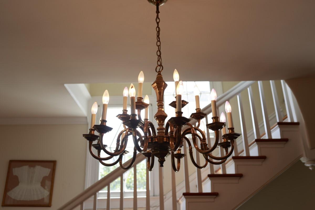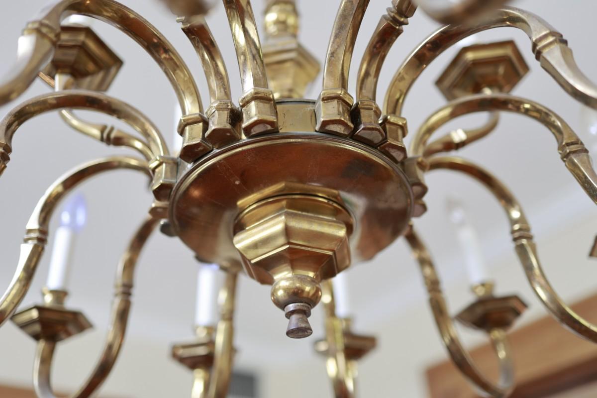 Large Two-Tier Brass Chandelier with 18 Candle-Style Lights