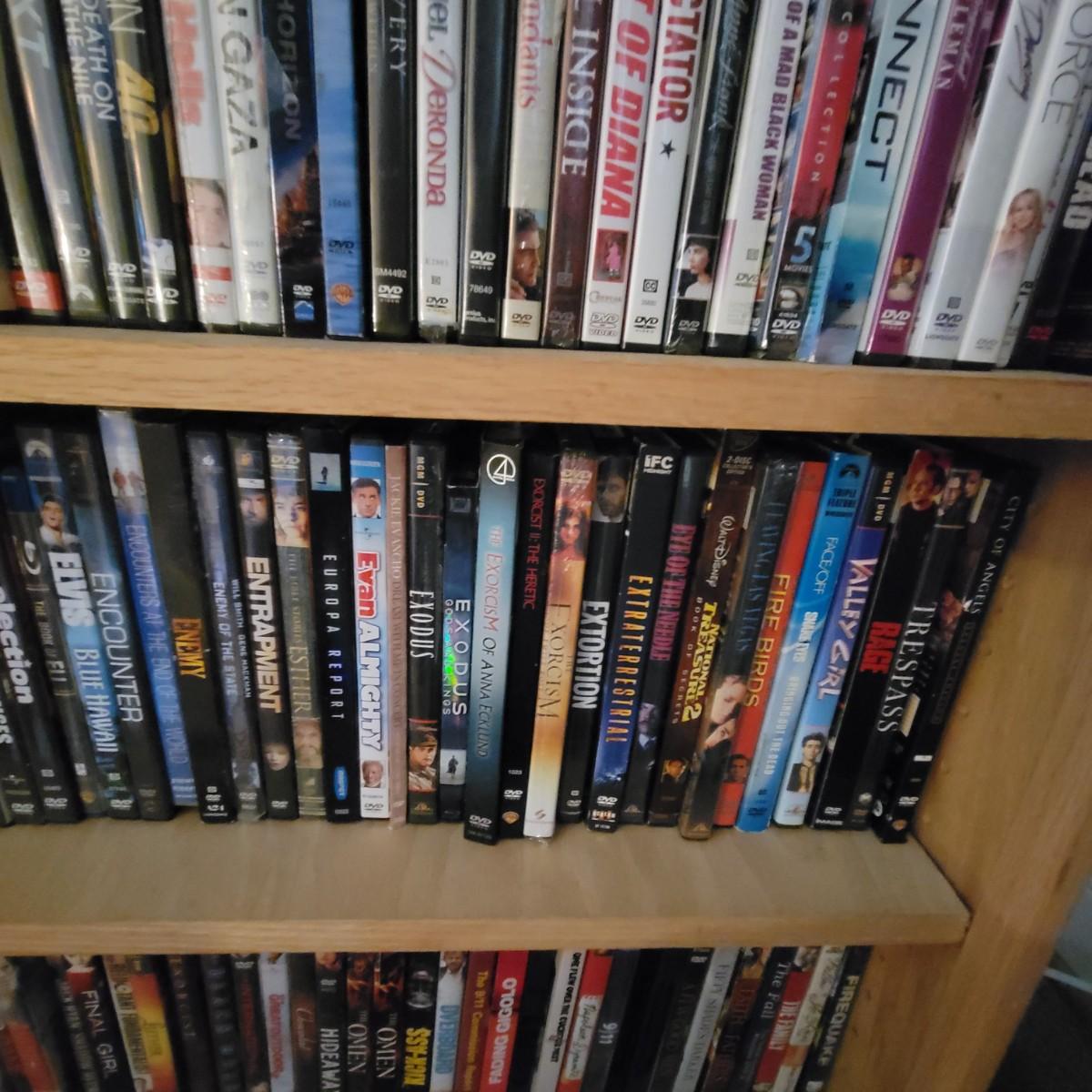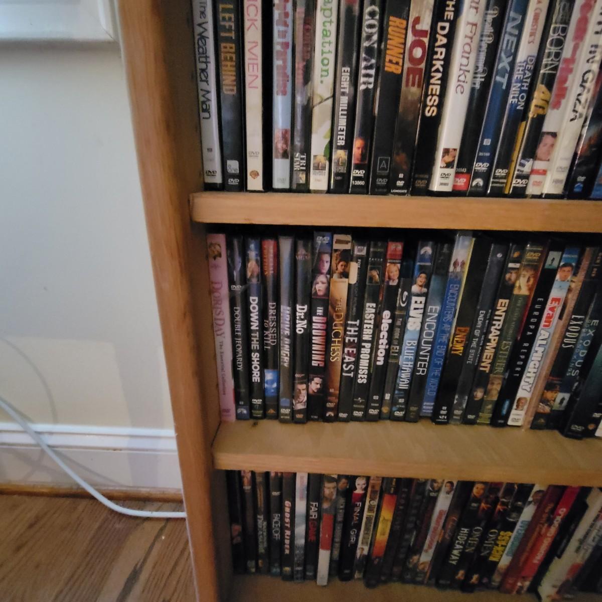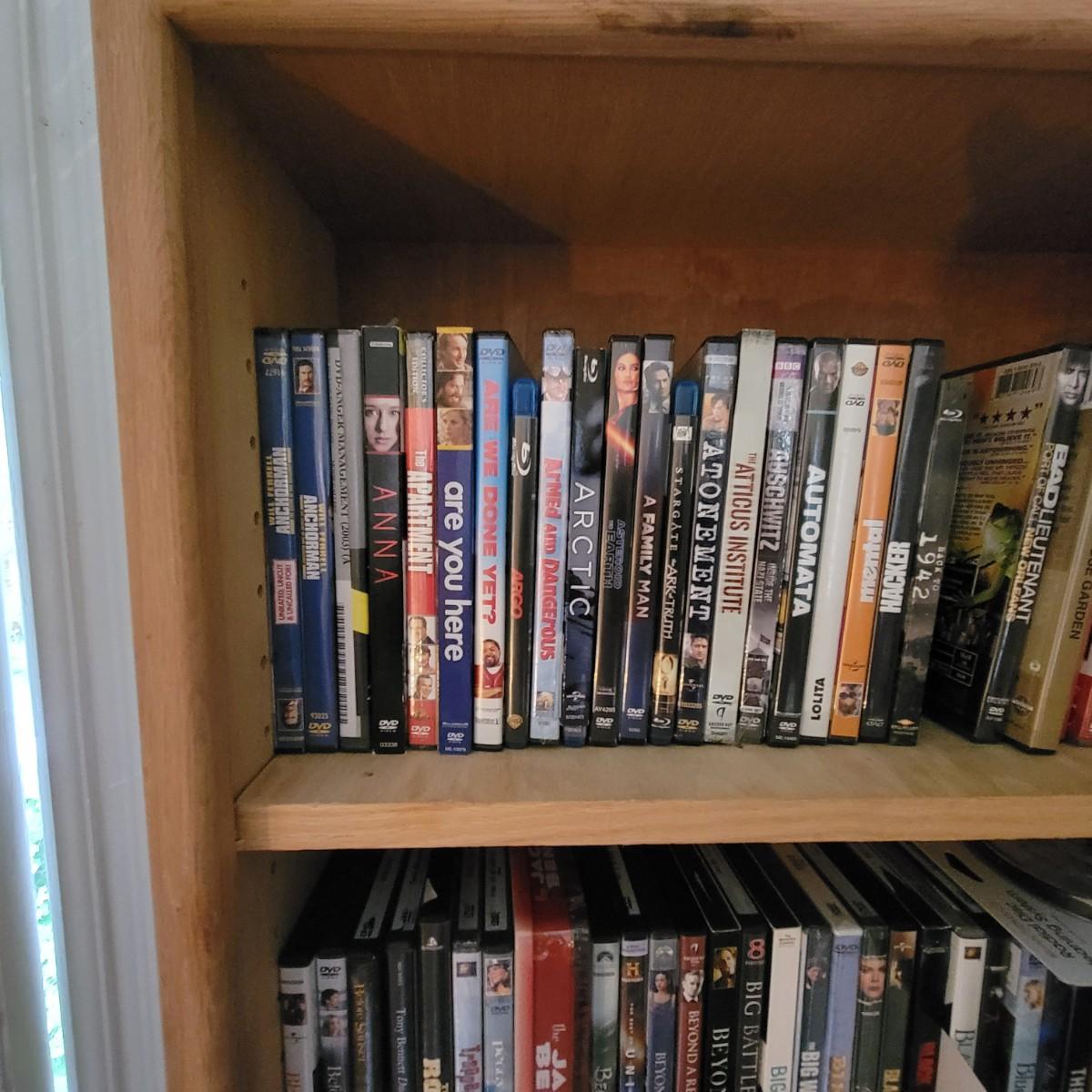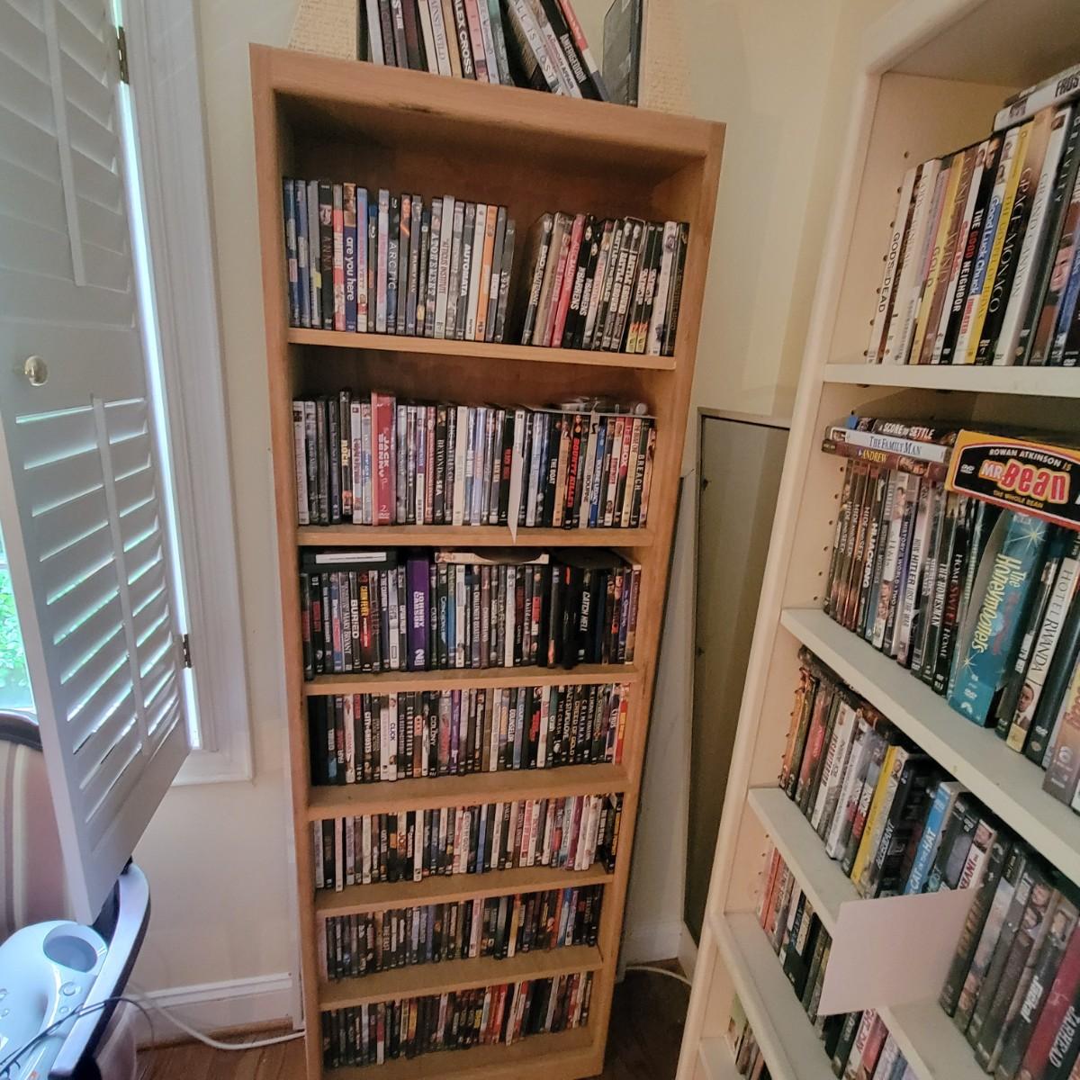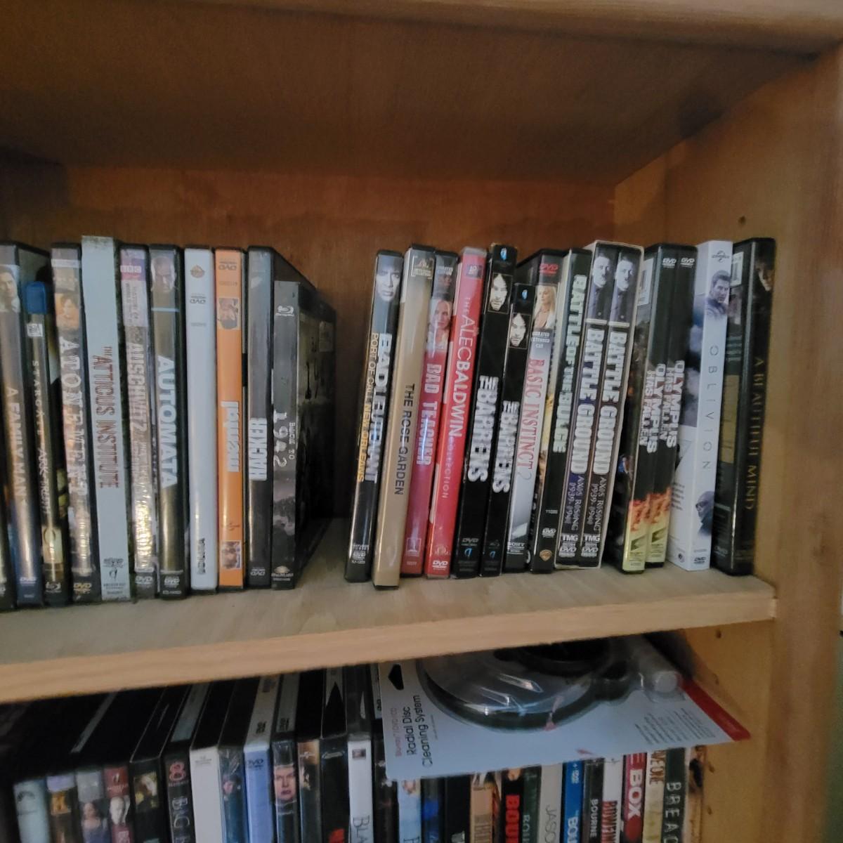 Large lot of DVDs including box sets of Jack Benny and Johnny Carson. Also includes a whole lot of Nicholas Cage movies. All are in good to new condition. Each shelf holds about 35 DVDs. Shelves are not included, but are for sale in this auction. This auction is for the DVDs on the left shelf. Local pickup only