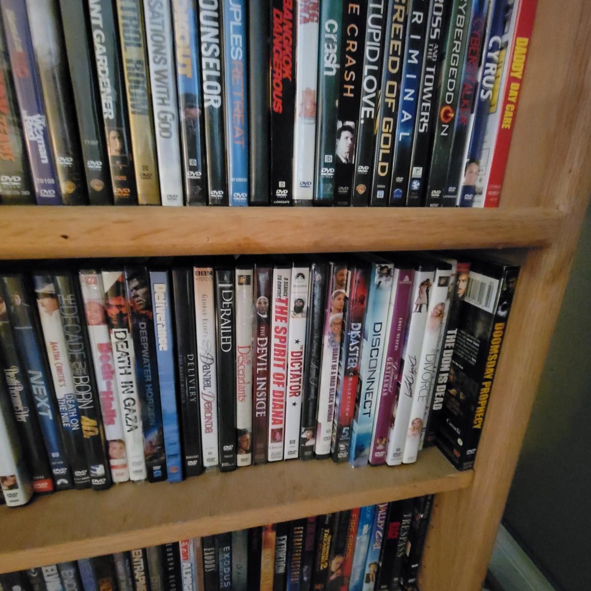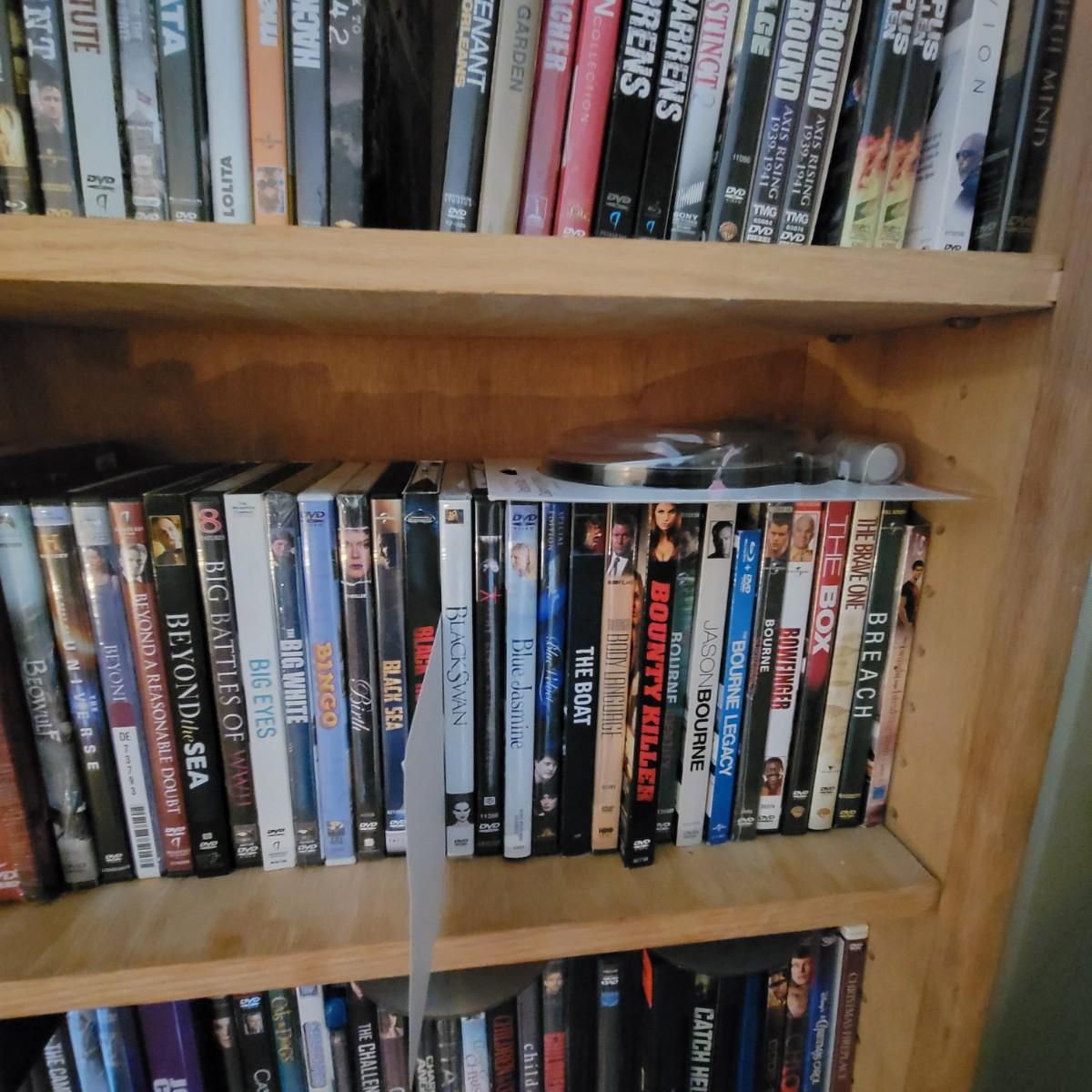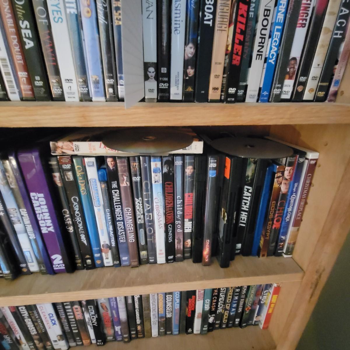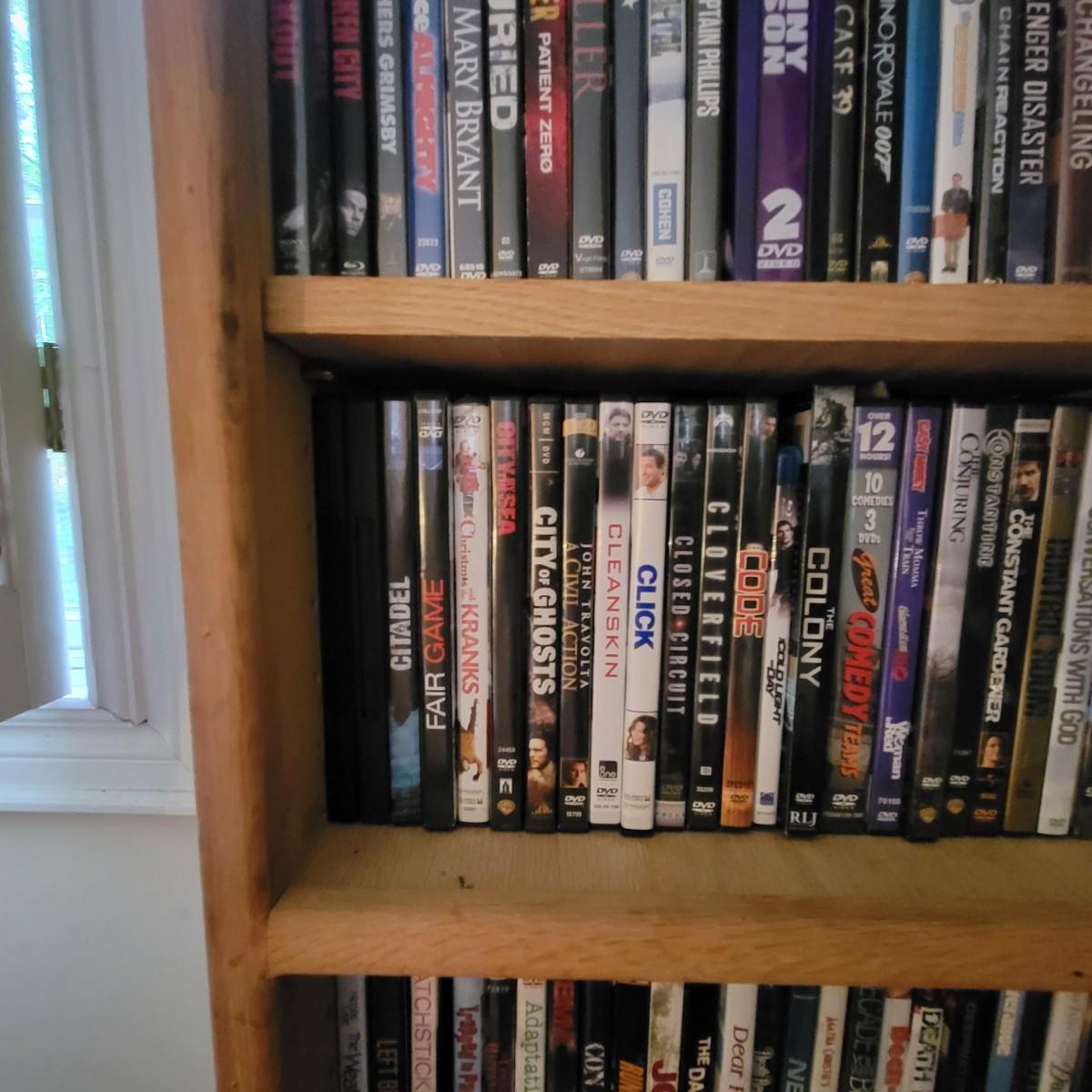 Large lot of DVDs including box sets of Jack Benny and Johnny Carson. Also includes a whole lot of Nicholas Cage movies. All are in good to new condition. Each shelf holds about 35 DVDs. Shelves are not included, but are for sale in this auction. This auction is for the DVDs on the left shelf. Local pickup only