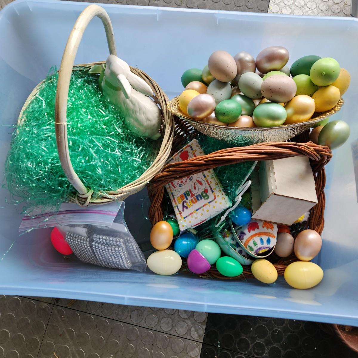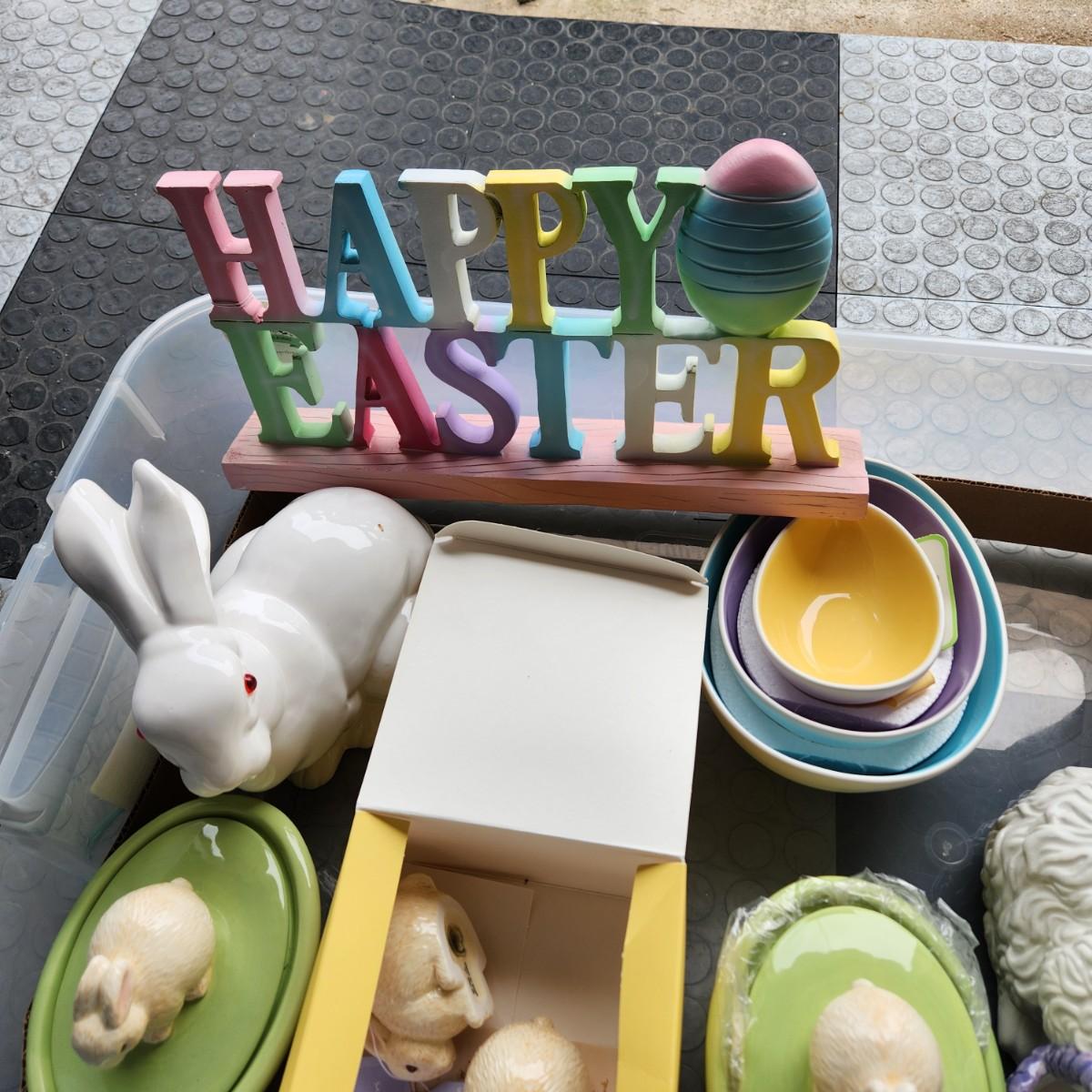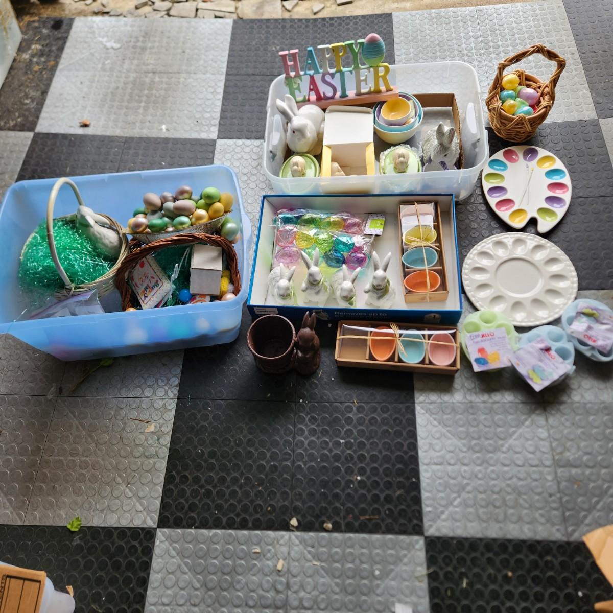 Large Easter Holiday Decor Lot Baskets, Eggs, Rabbits , Egg trays, Hallmark95