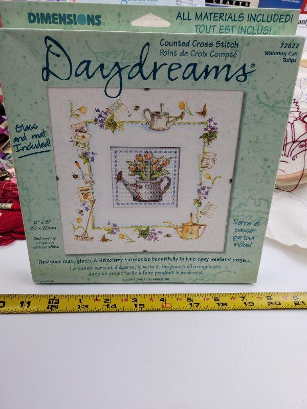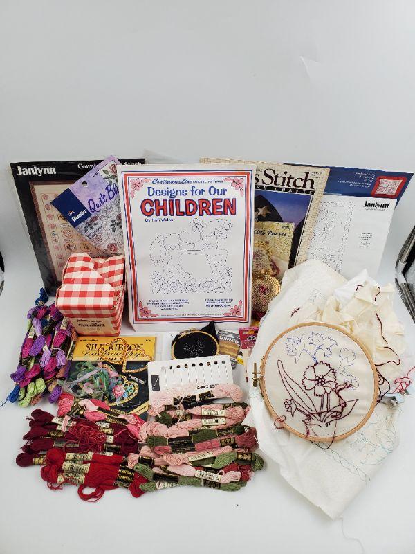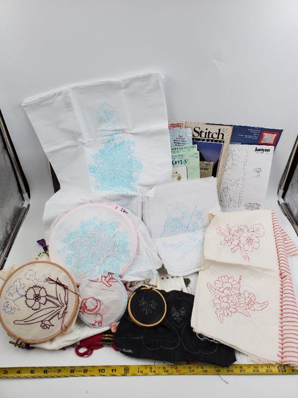 Some new projects, some started, several patterns, hoops, thread and needles...perfect for a beginner!!
