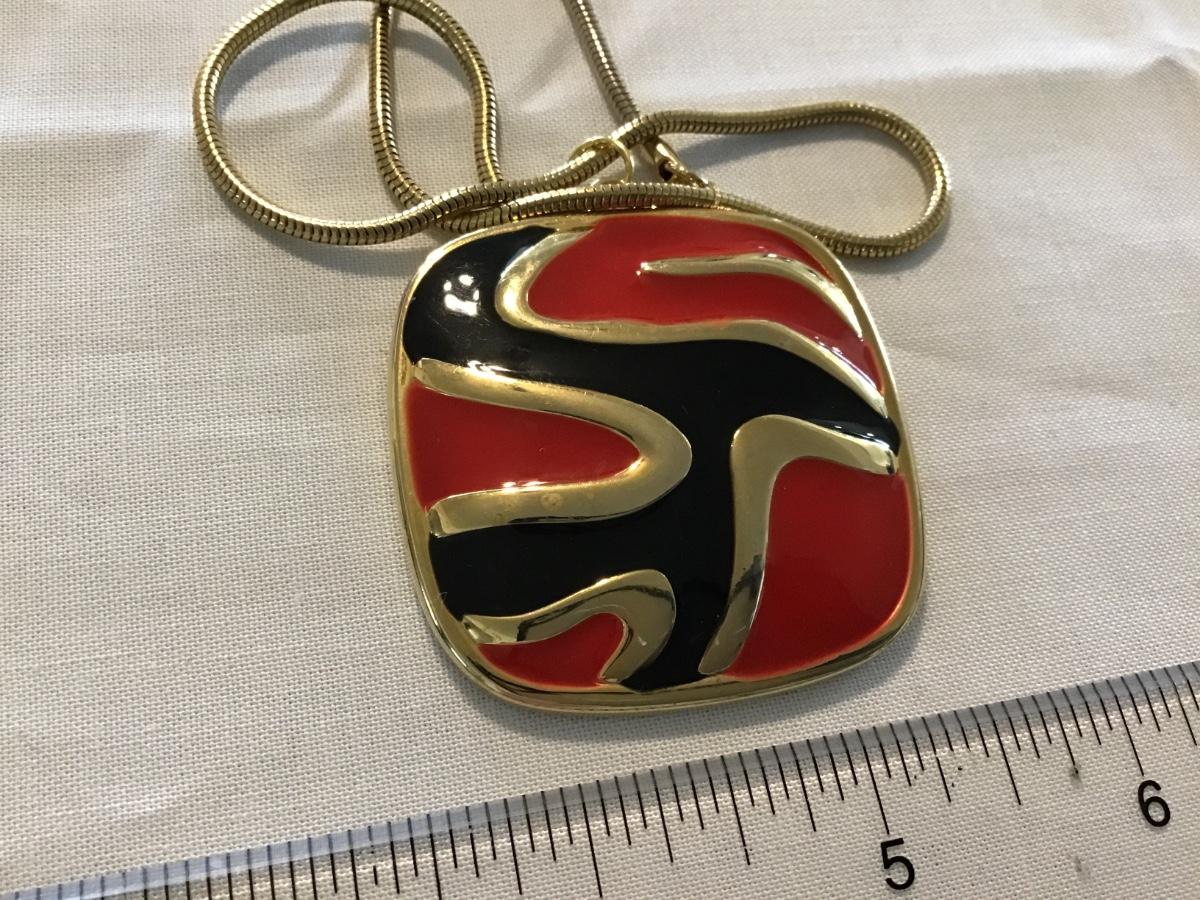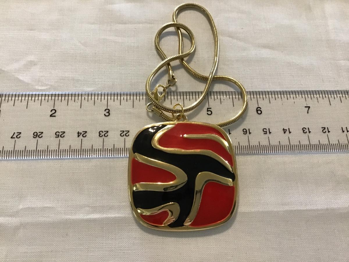 Large Enamel Red Black Pendant with Chain