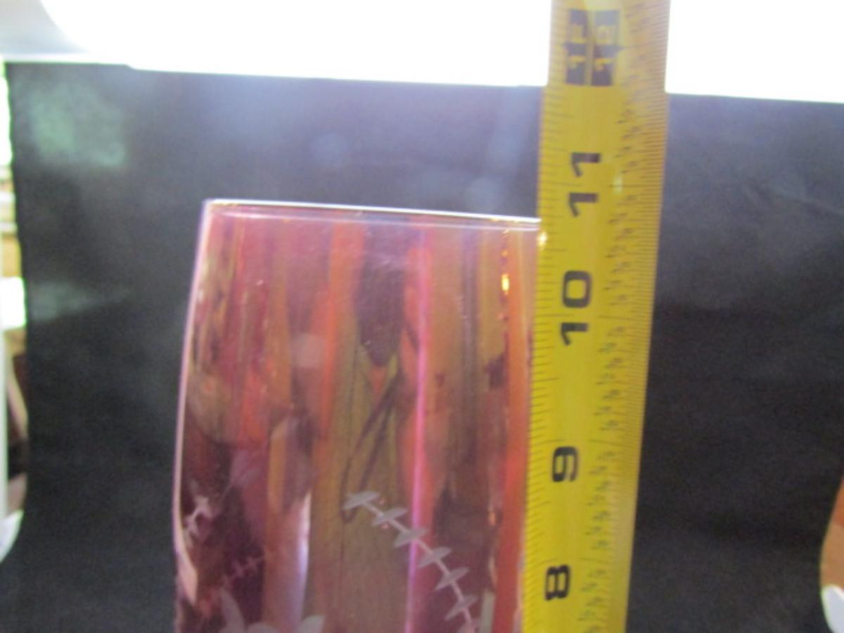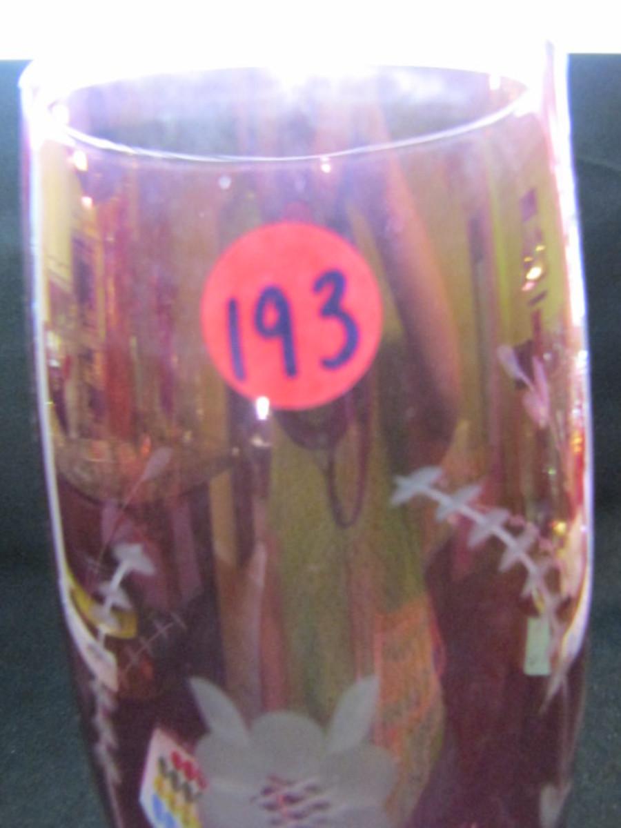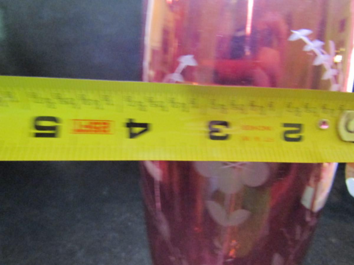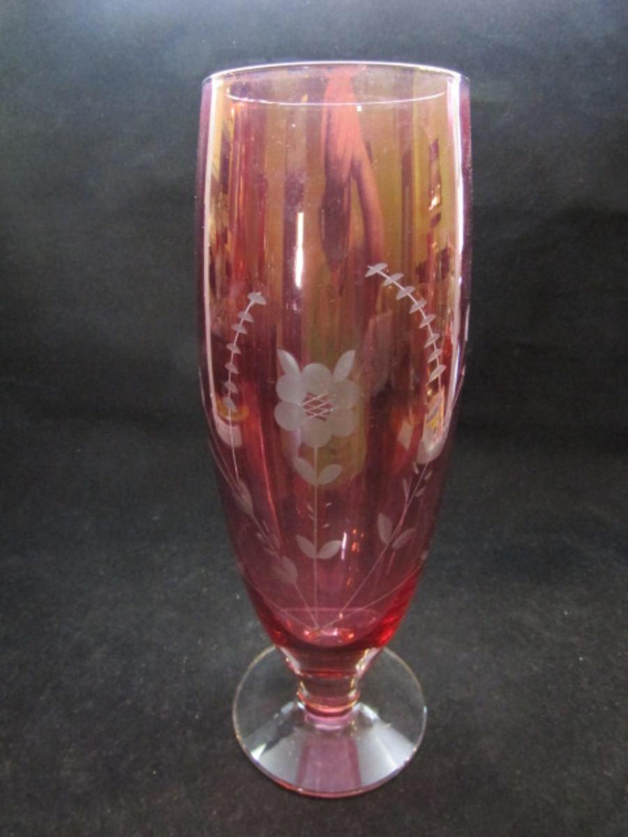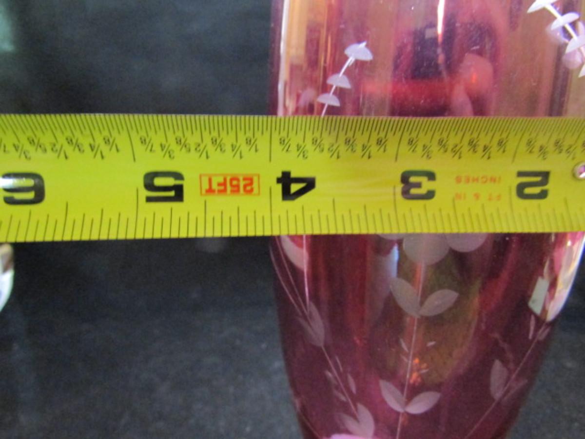 Large, Etched Cranberry Glass Footed Vase (#193)