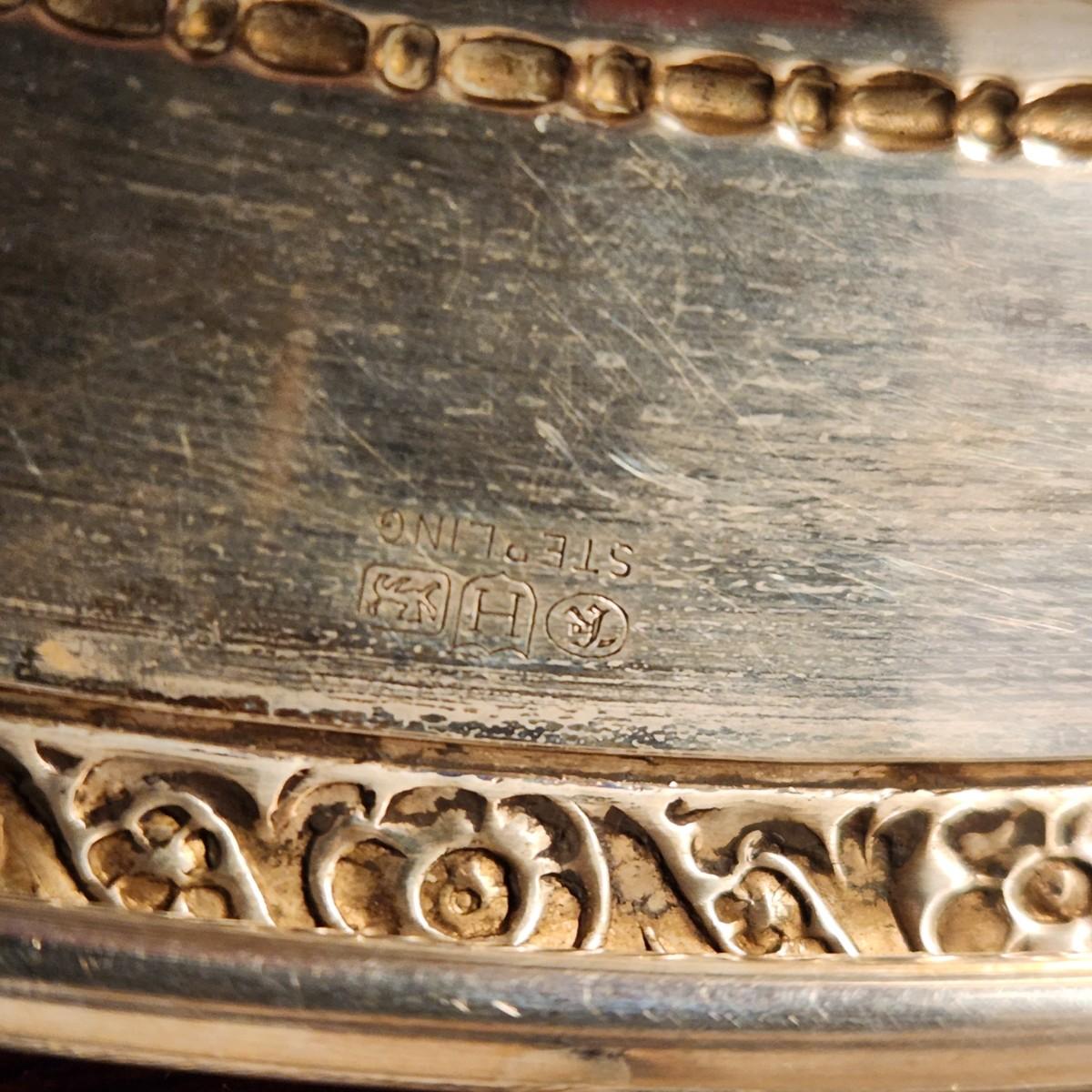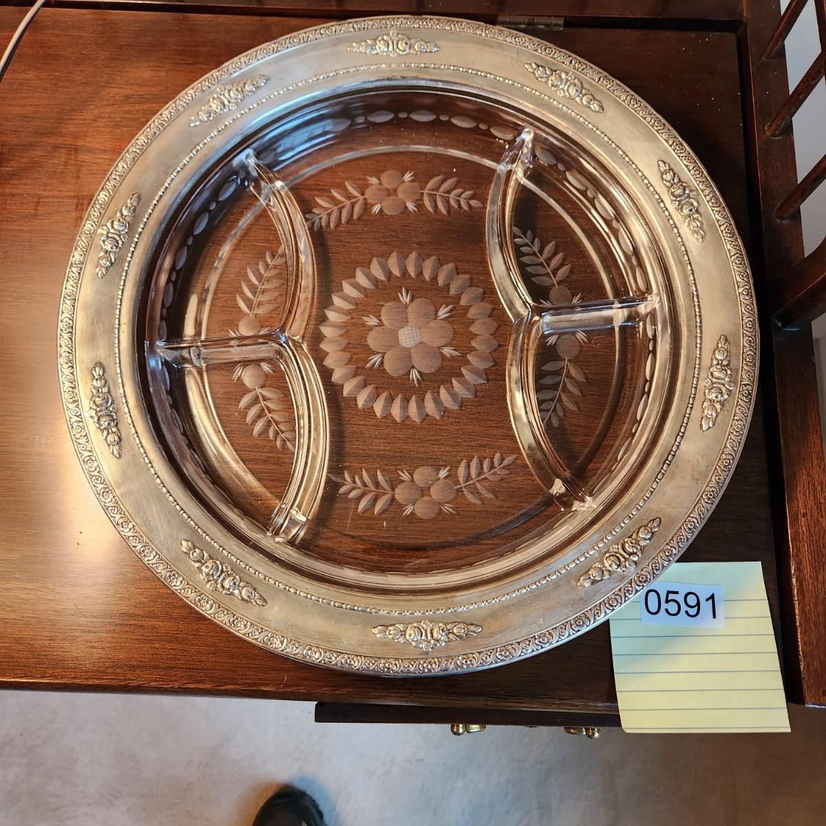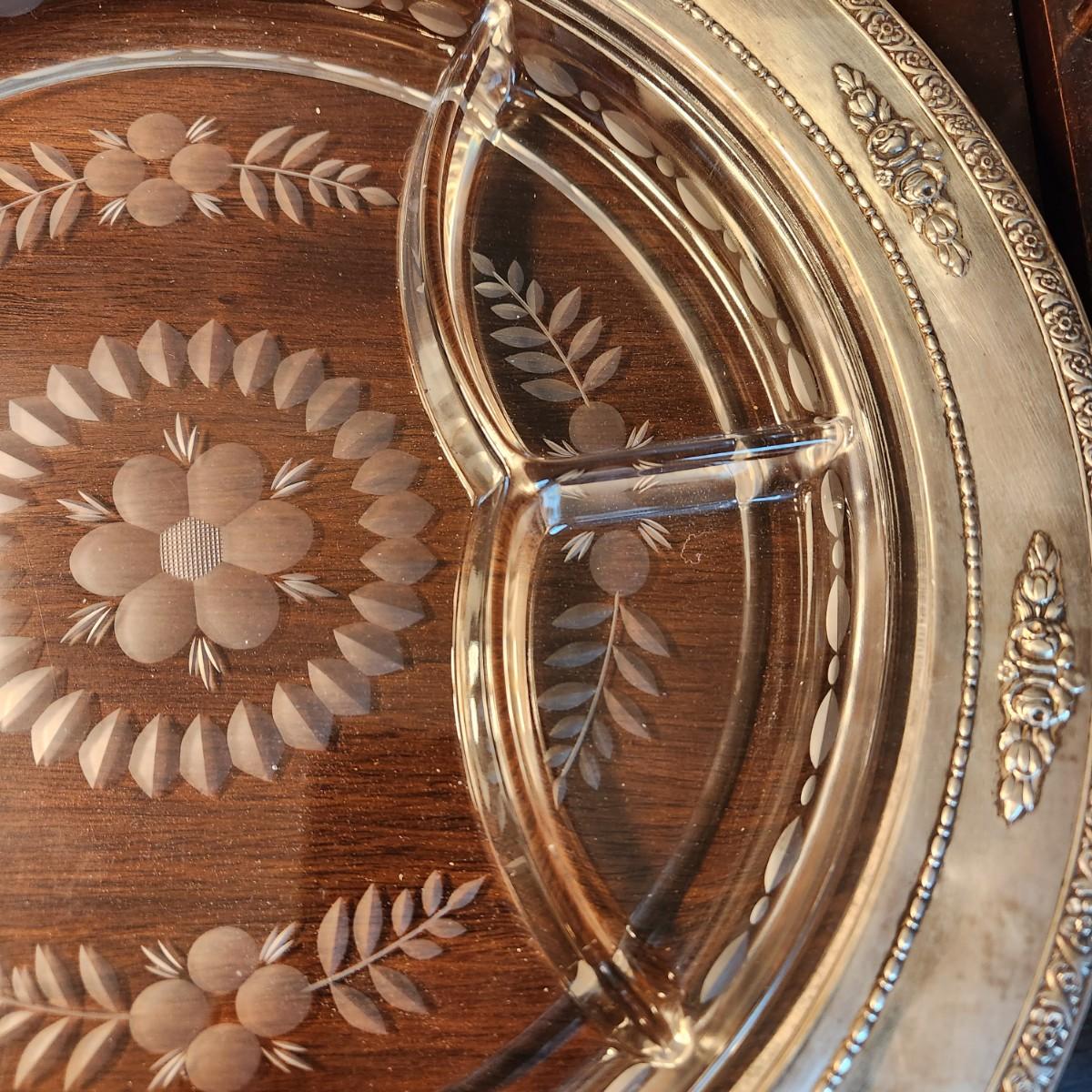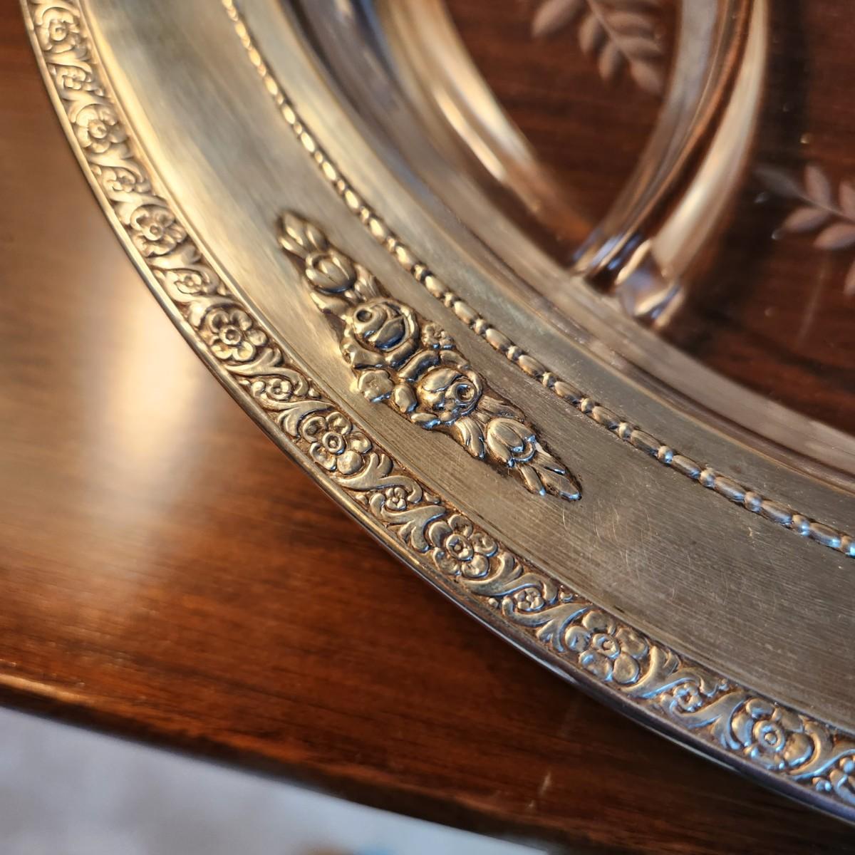 Large Etched 5 part Glass Relish Serving Tray with Sterling Sliver Trim