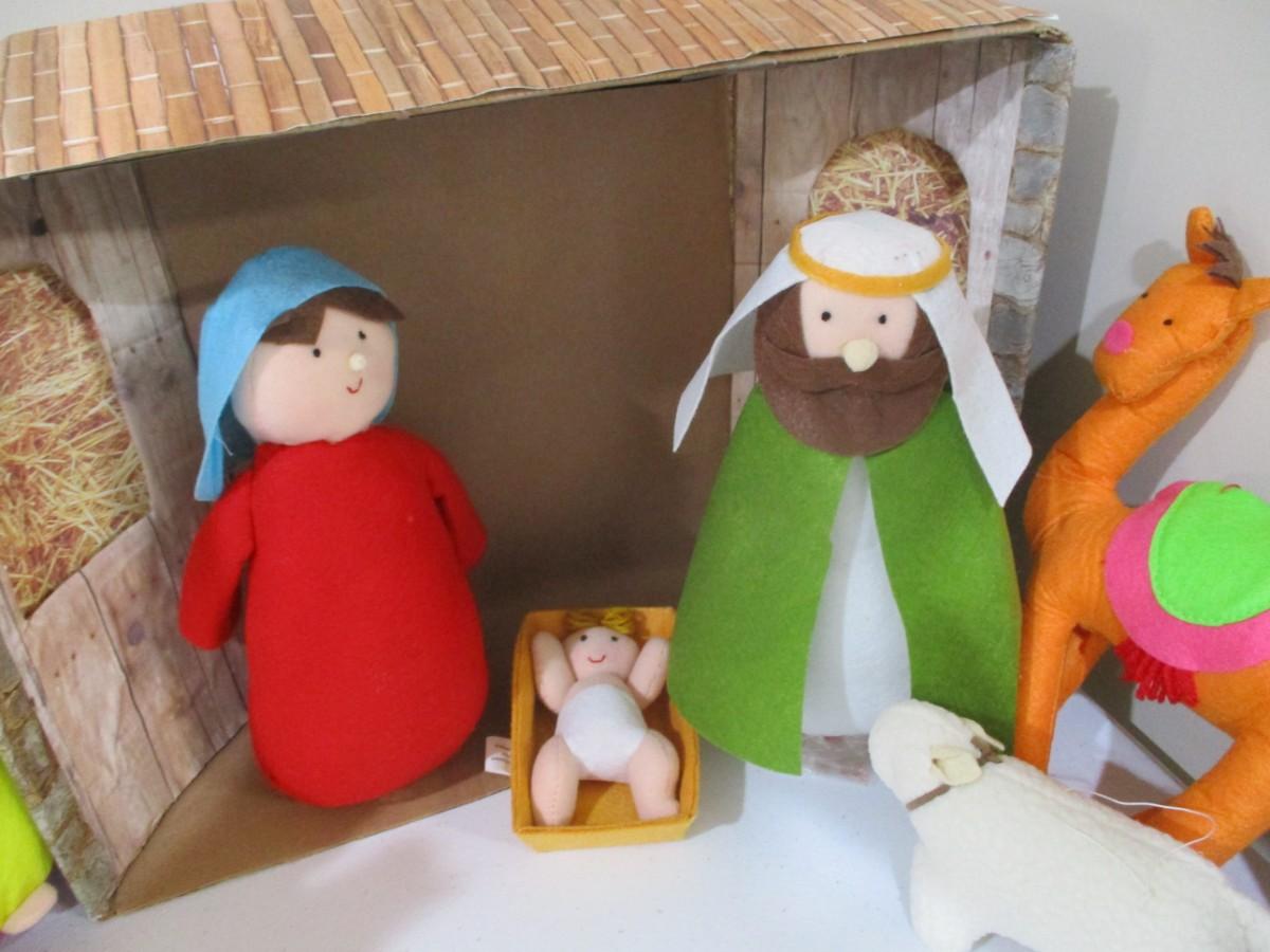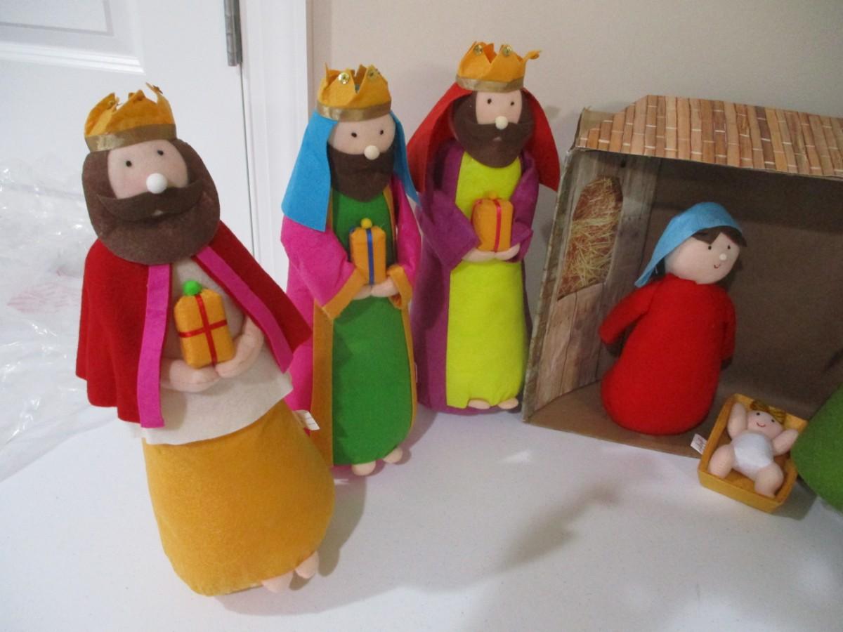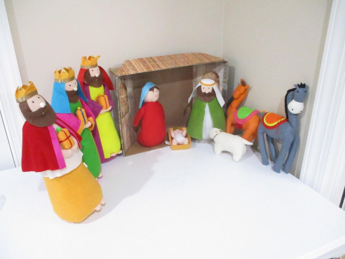 Large Fabric/Felt Christmas Nativity Set 9 Pieces 15 1/2" Tall (TR)