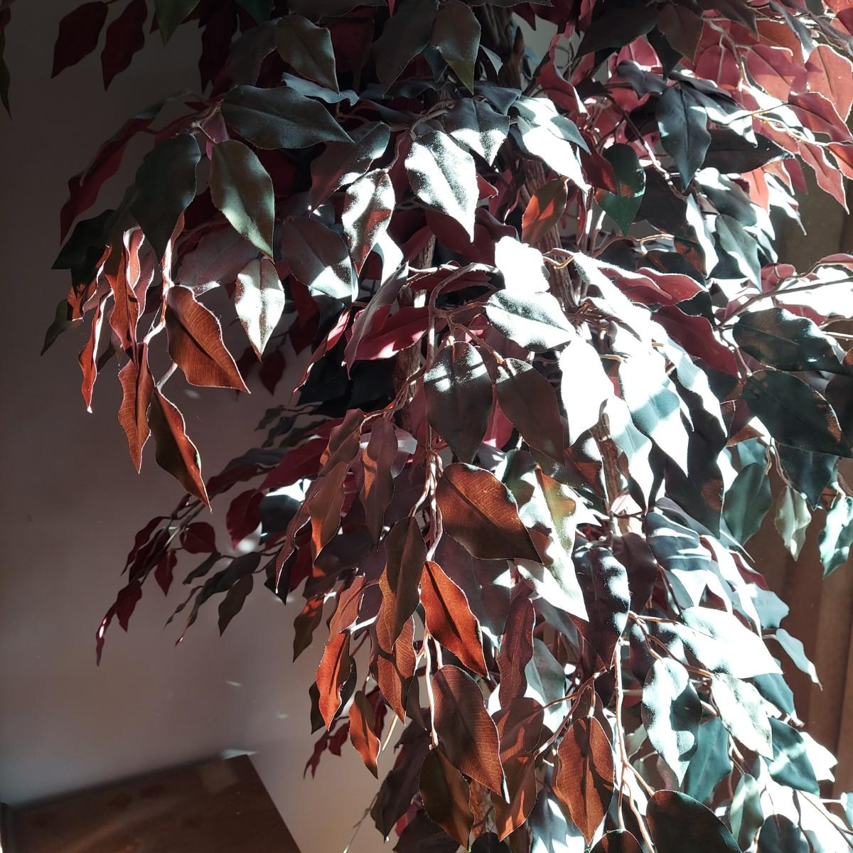 Large faux ficus tree in a wicker basket style planter. Pot has 16"D. Plant is approximately 84"H. Will need cleaned. Please see photos for details. Local Pickup Only